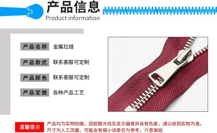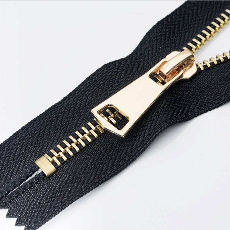 Cremallera al por mayor No. 5 Metal Cobre Blanco Cremallera de Extremo Cerrado Cabeza de Tela Negra Varias Bolsas en Stock Bolsillos Artículos de Cuero Personalizados