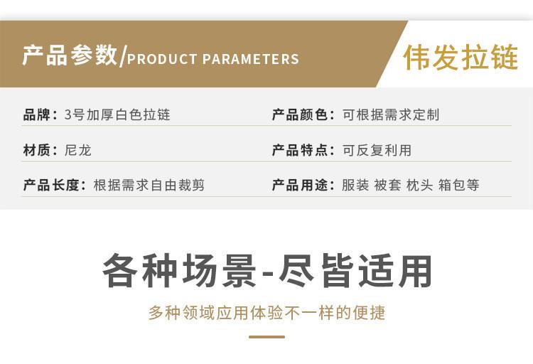 No. 3 cremalleras blancas al por mayor, cremallera de nailon codificada para funda de edredón, cremallera para equipaje, ropa, cremallera de cola cerrada, se puede pedir en color y tamaño