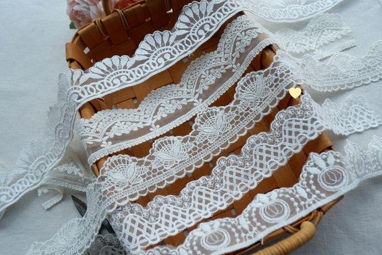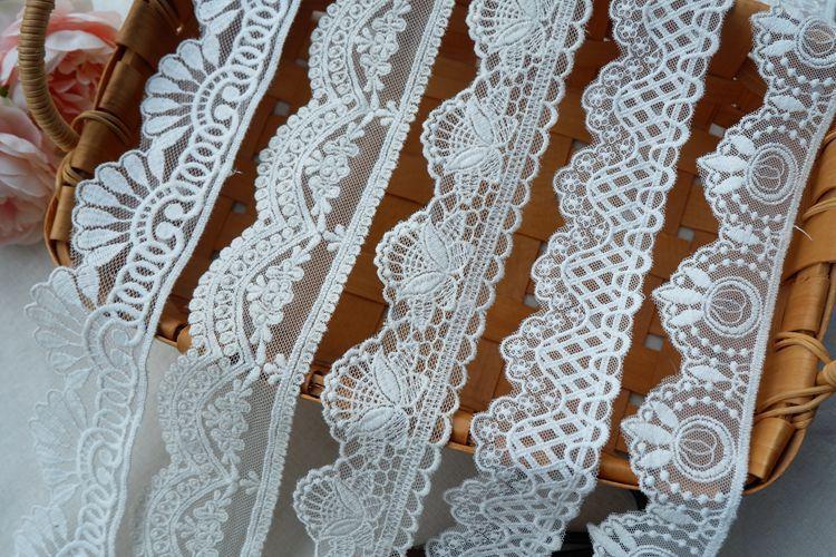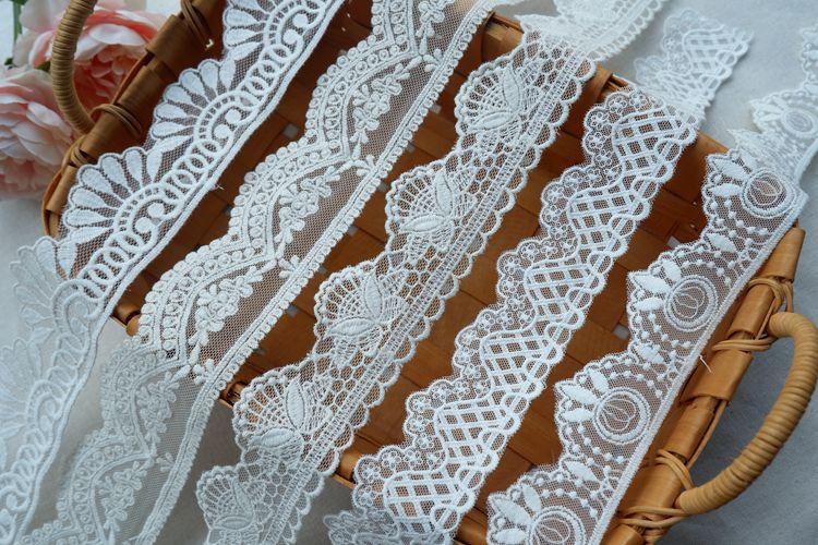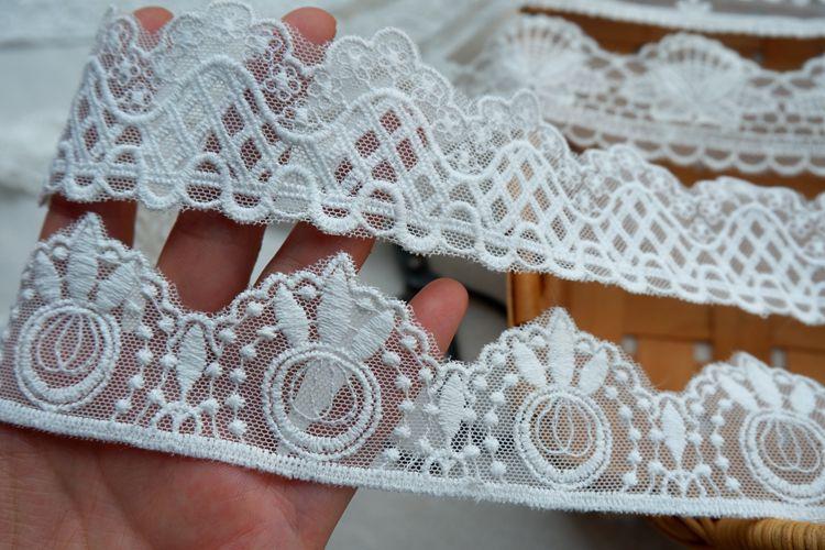 Exquisita gasa de encaje de algodón, hilo bordado, tela de encaje, bricolaje, ropa, cinturón, accesorios decorativos de hilo para boda