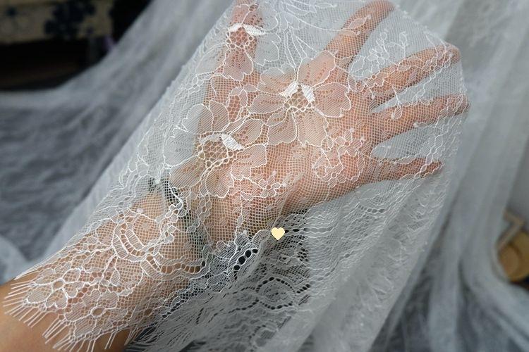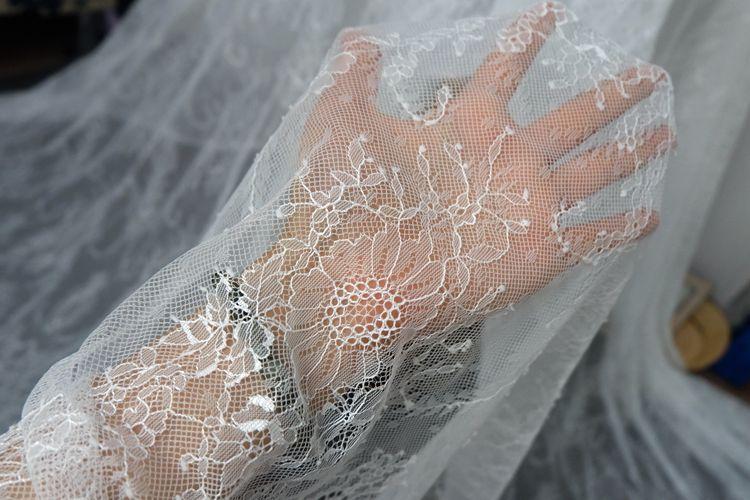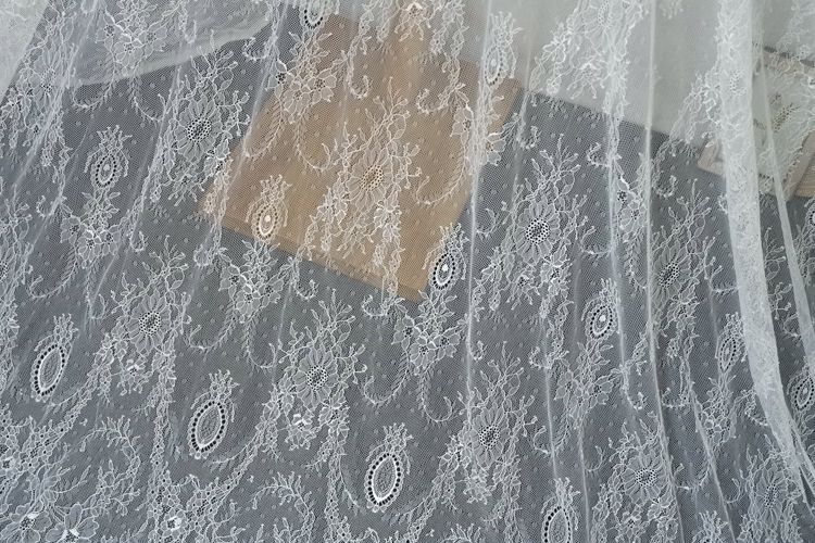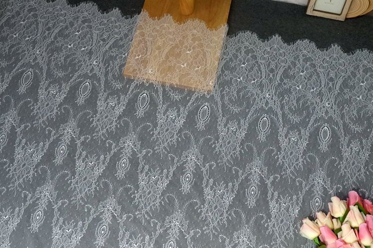 Exportación de tela de encaje de pestañas suave y agradable para la piel, ancho de 1,5 metros, velo para vestido de novia, accesorios