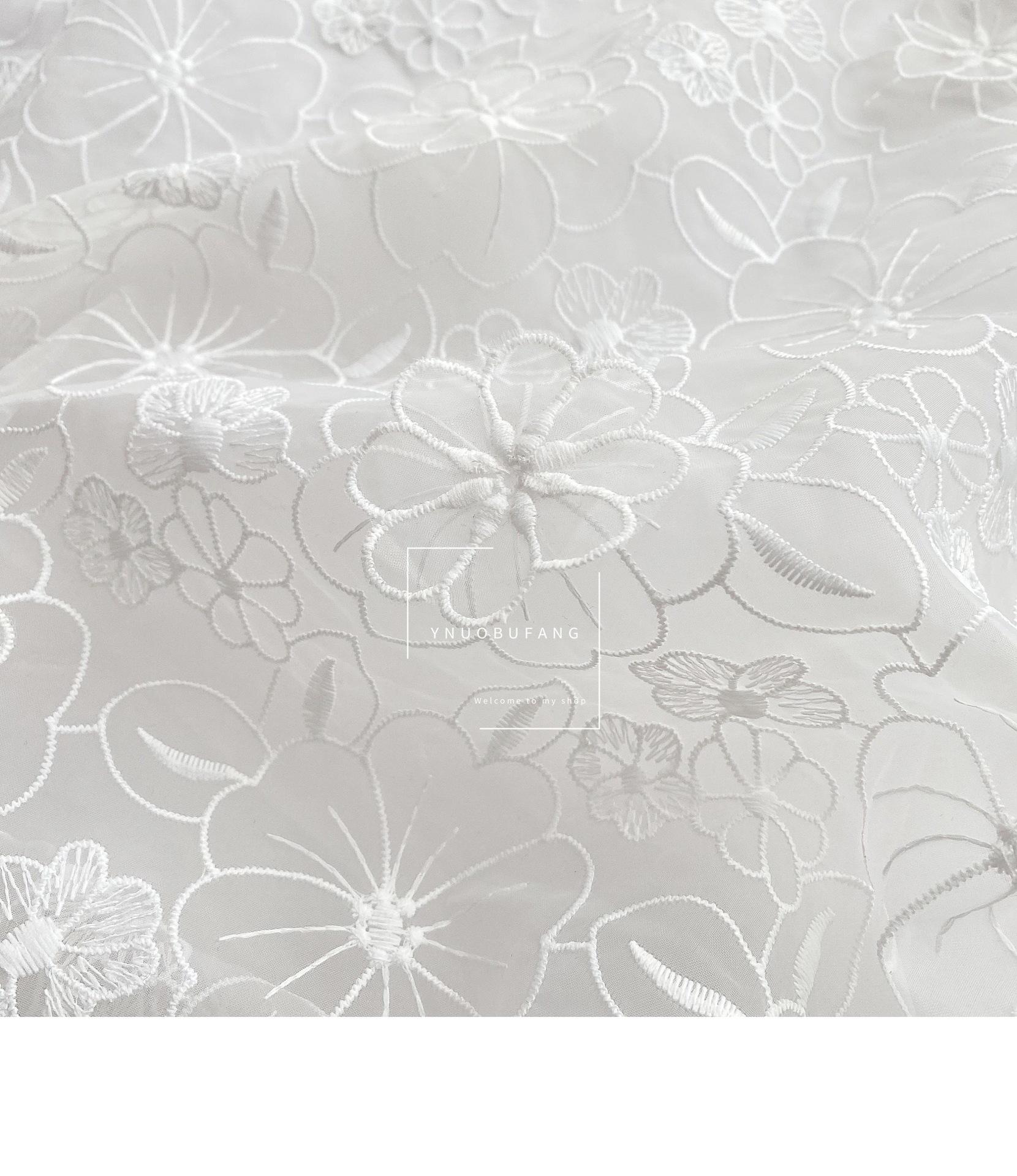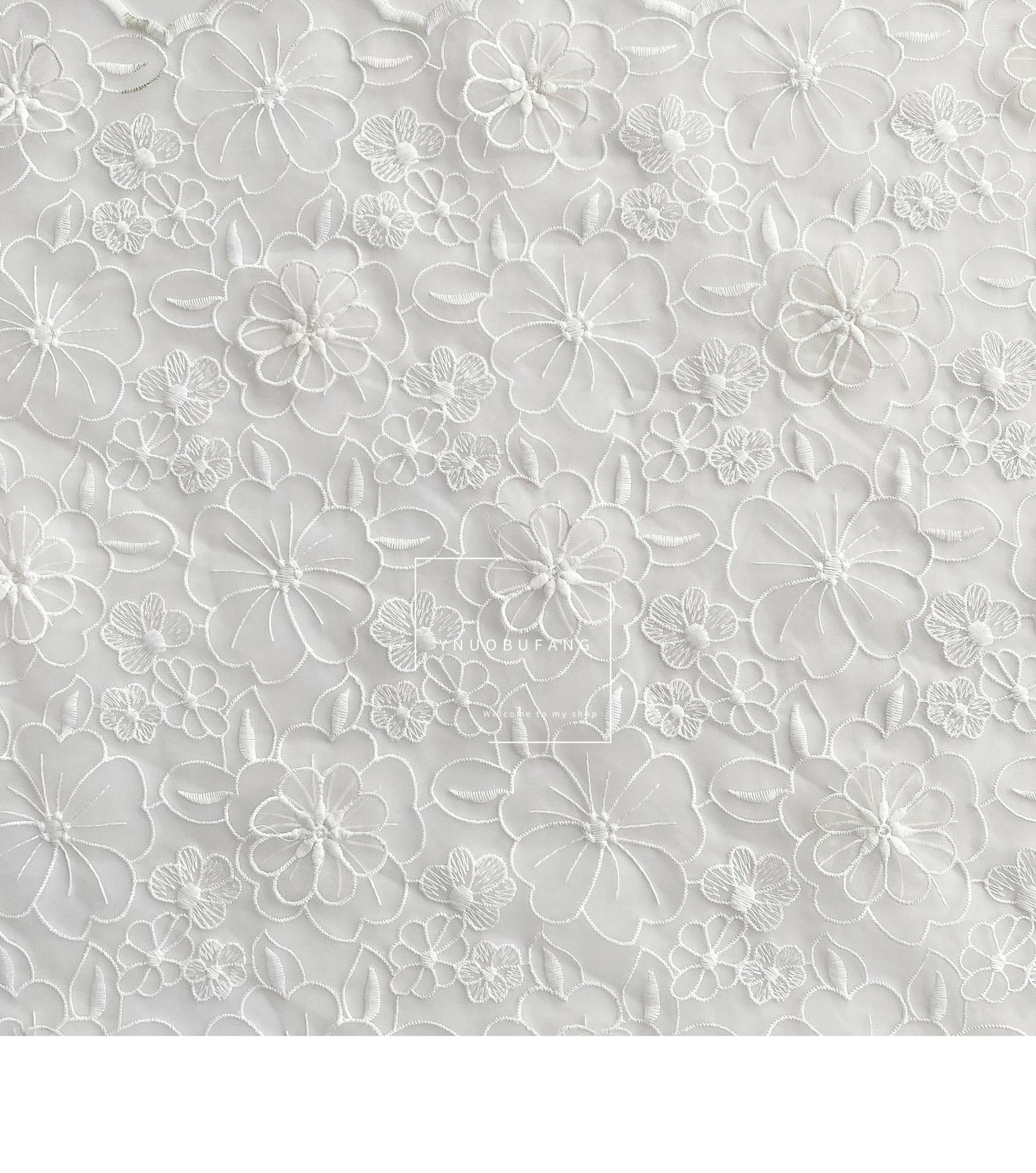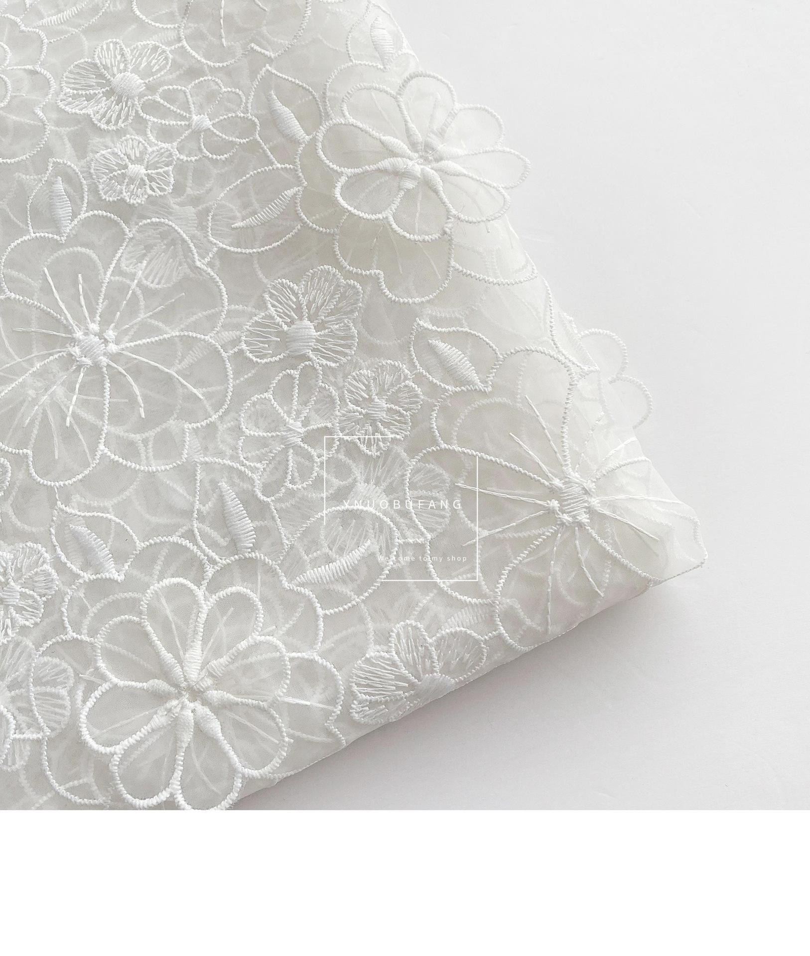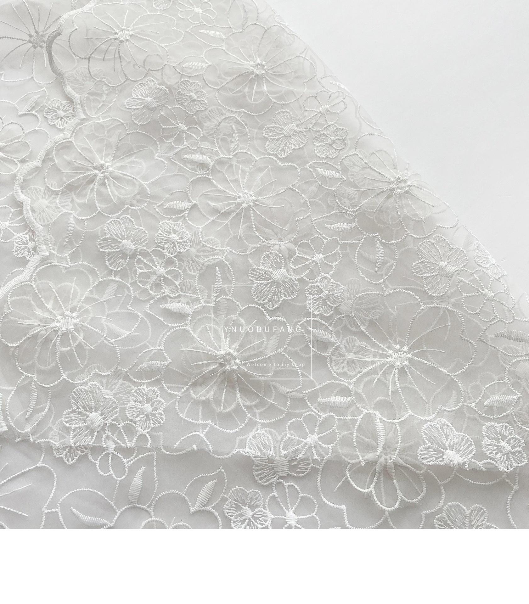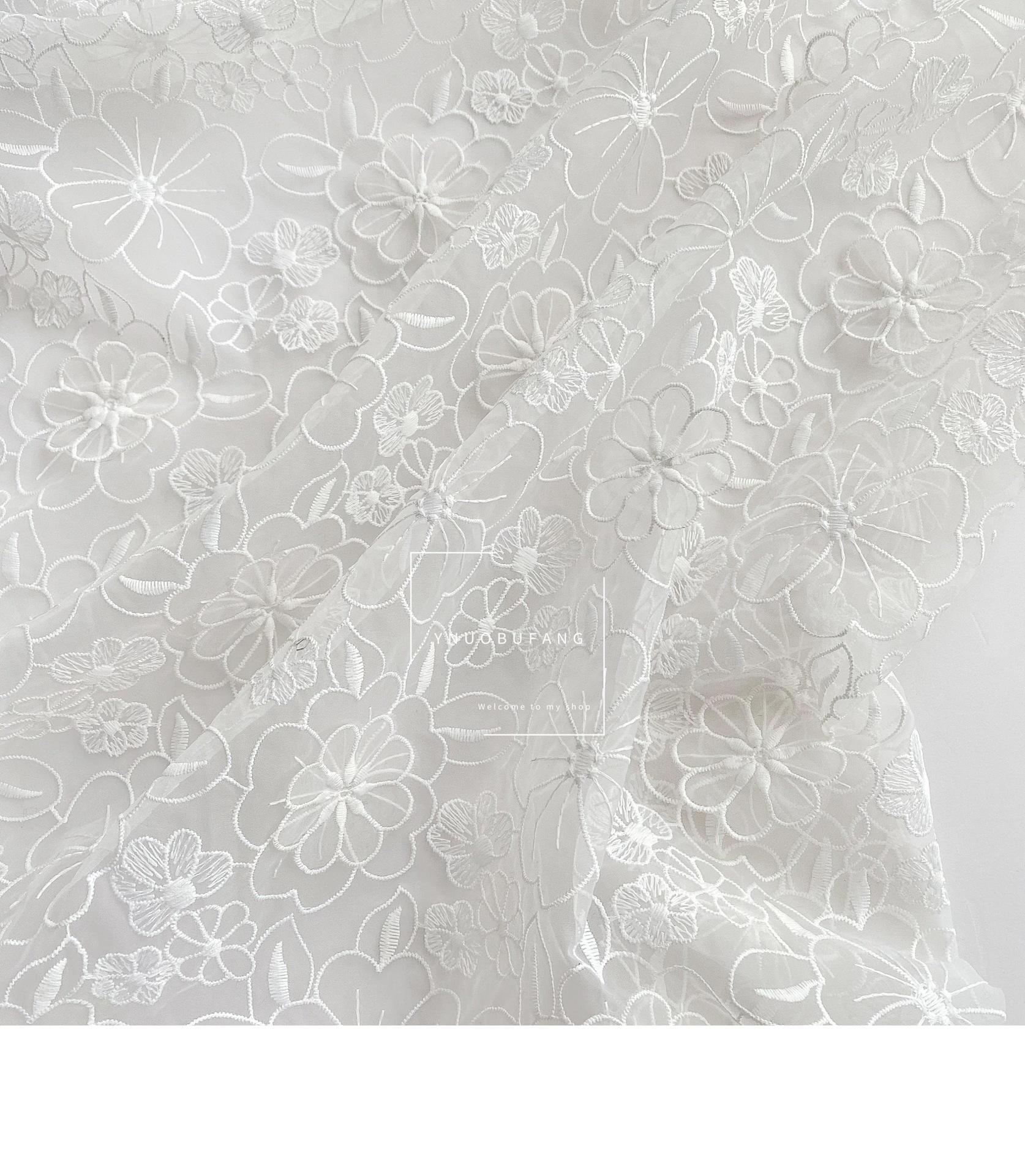 Tela de organza blanca pura con bordado tridimensional de doble capa para ropa de moda, vestido de novia, cortina, mantel, hecho a mano
