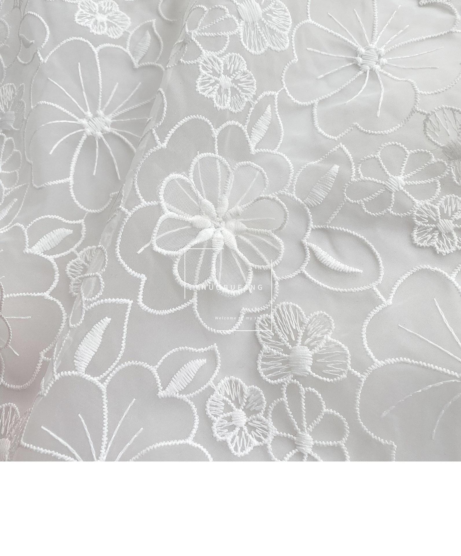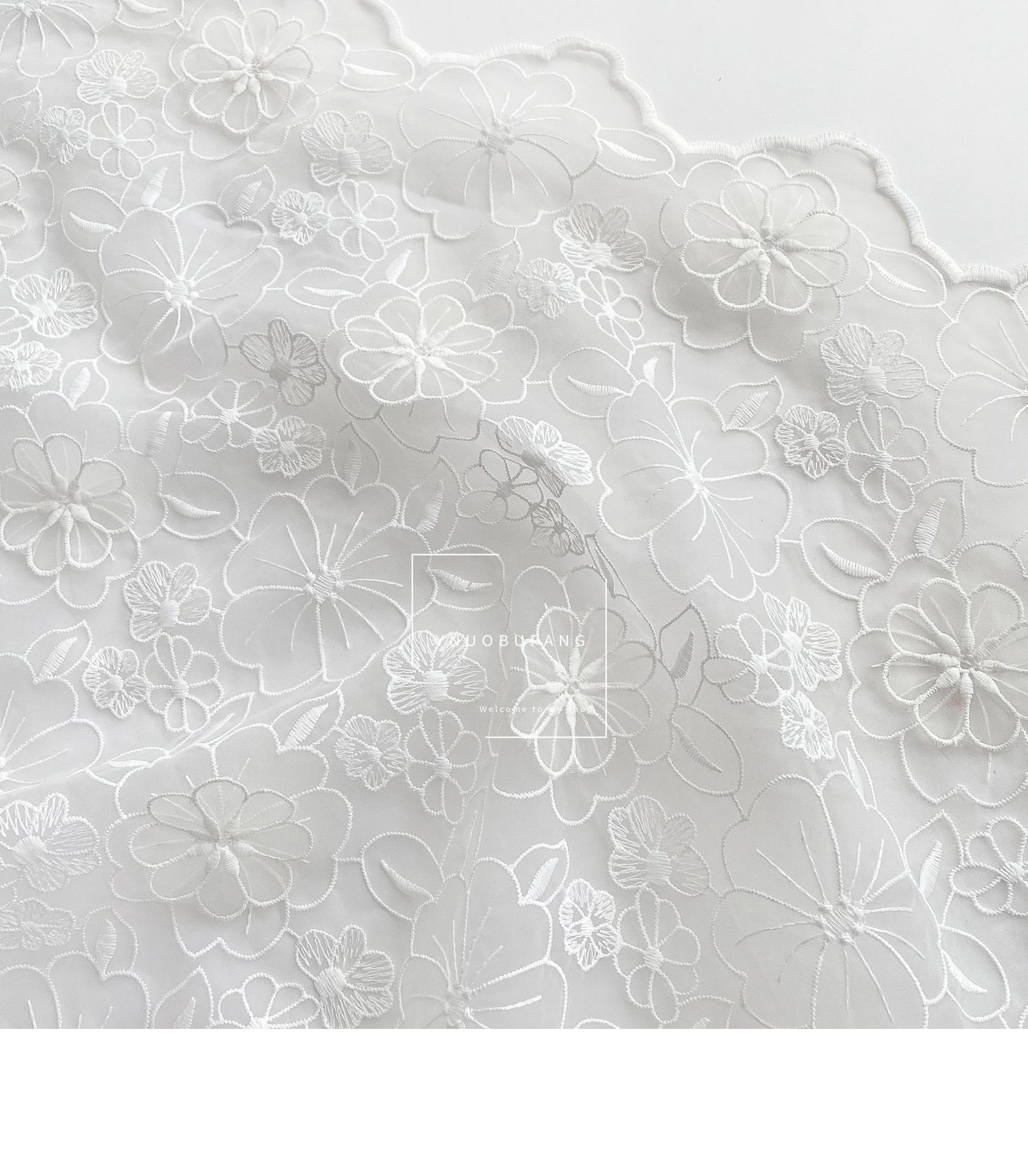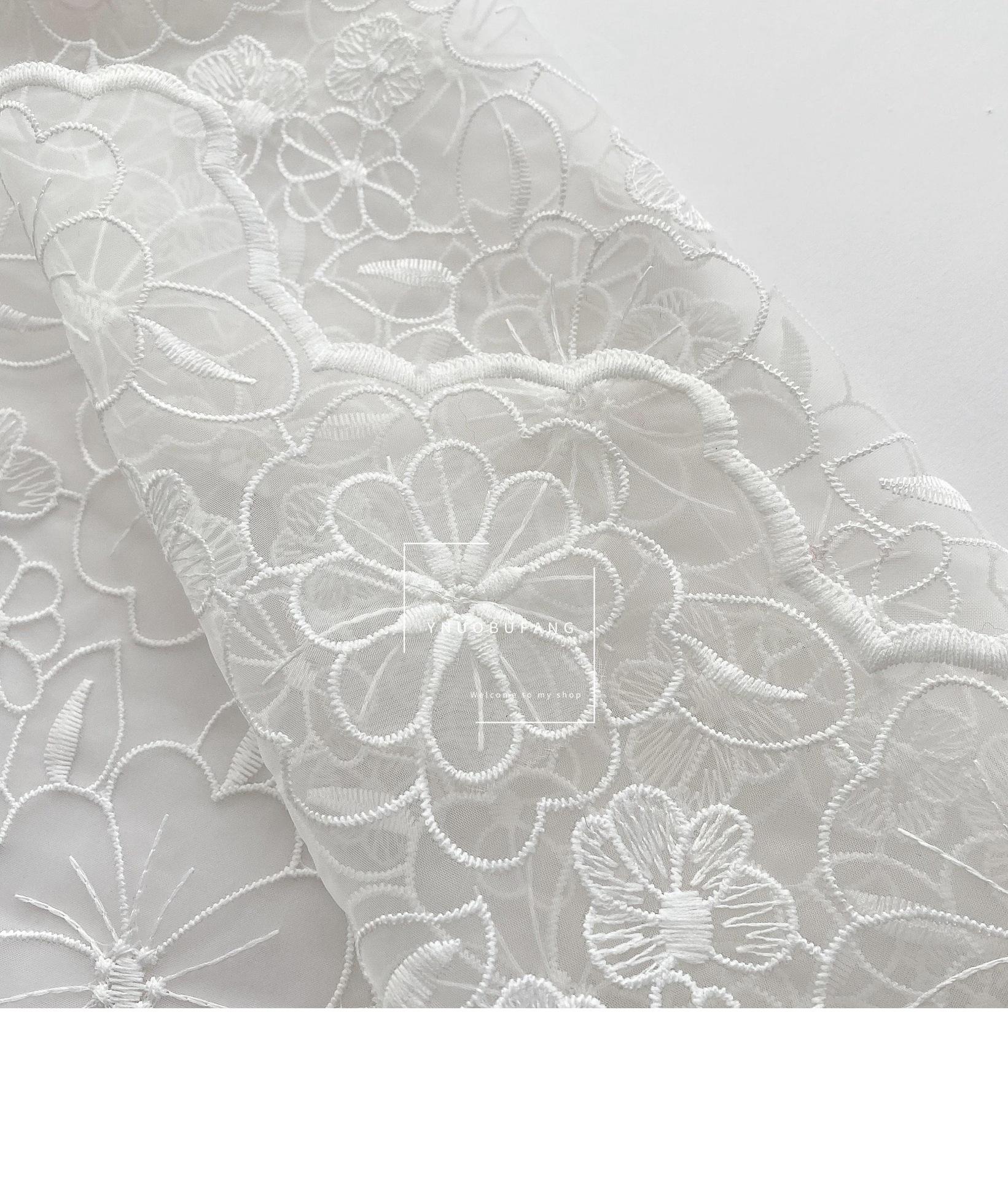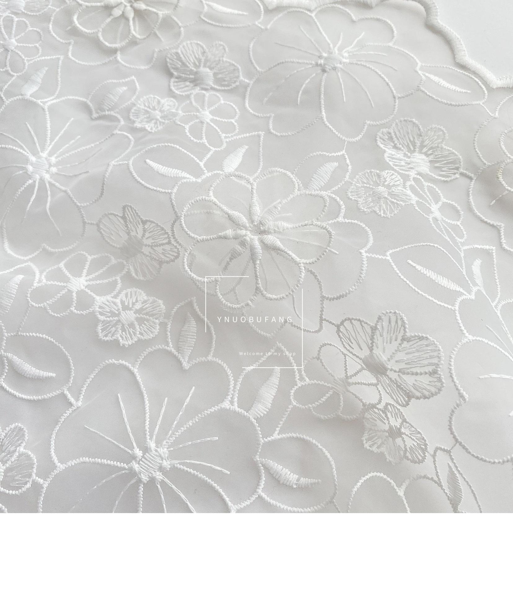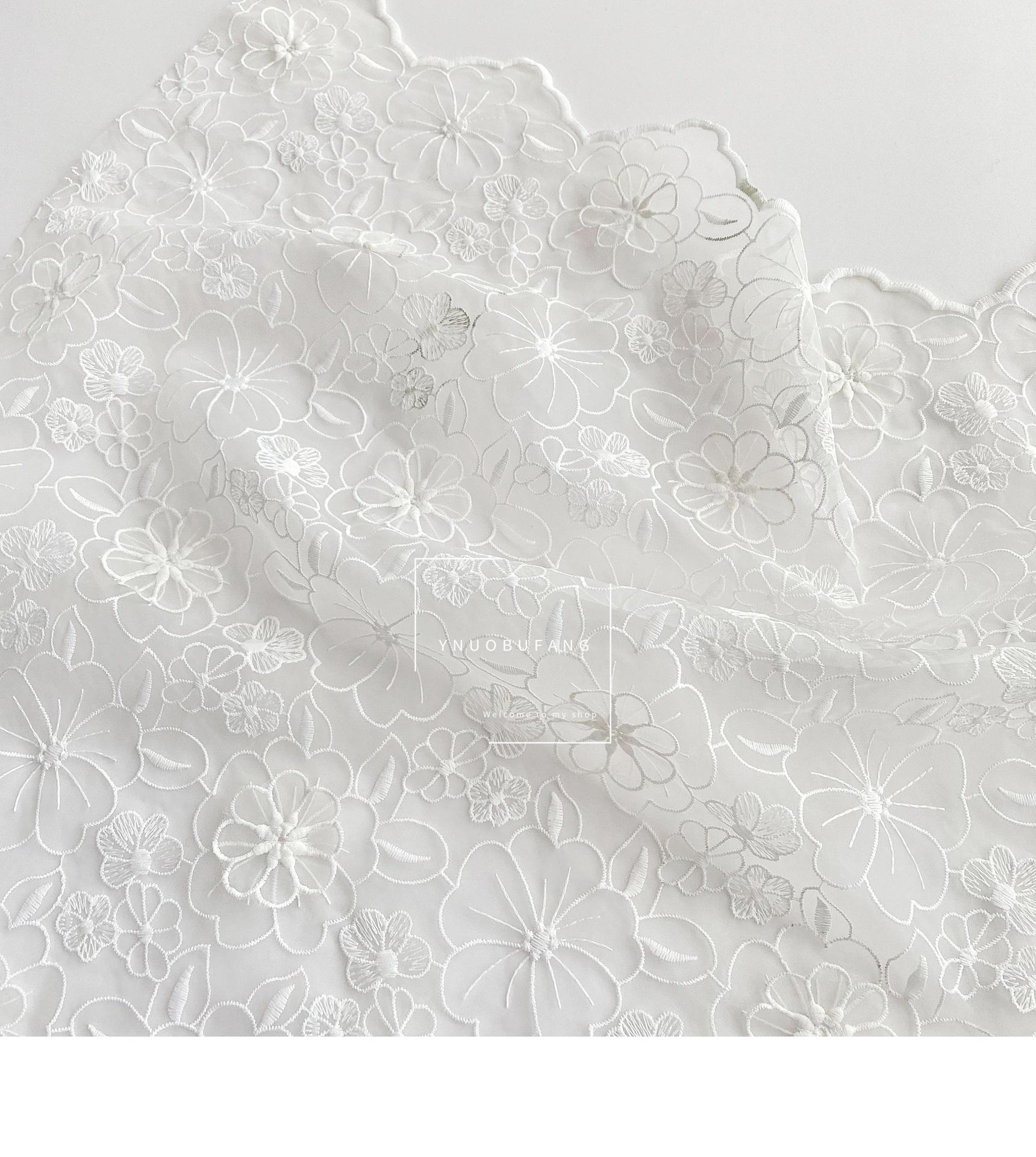 Tela de organza blanca pura con bordado tridimensional de doble capa para ropa de moda, vestido de novia, cortina, mantel, hecho a mano