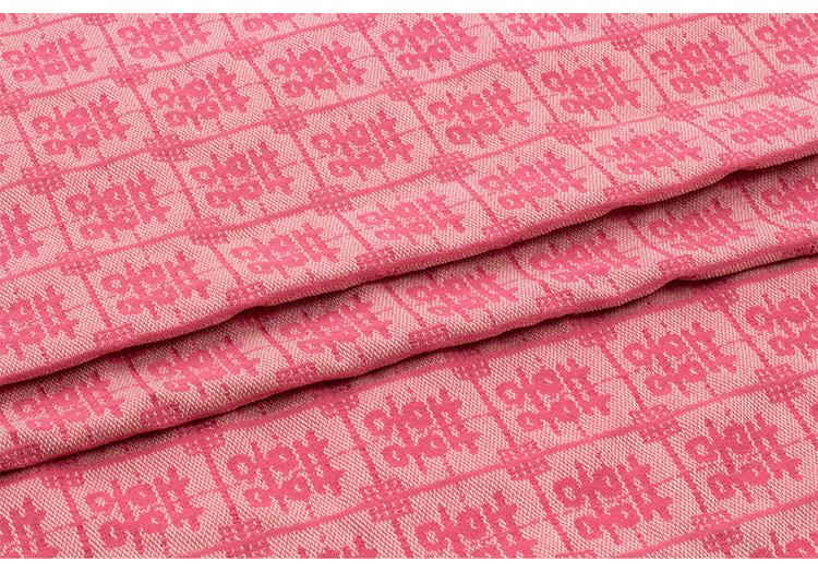 Tela jacquard rosa con palabras alegres, precio de un metro, de alta calidad, para hacer tú mismo, para bolsos, almohadas, manteles, camisas, vestidos y ropa.