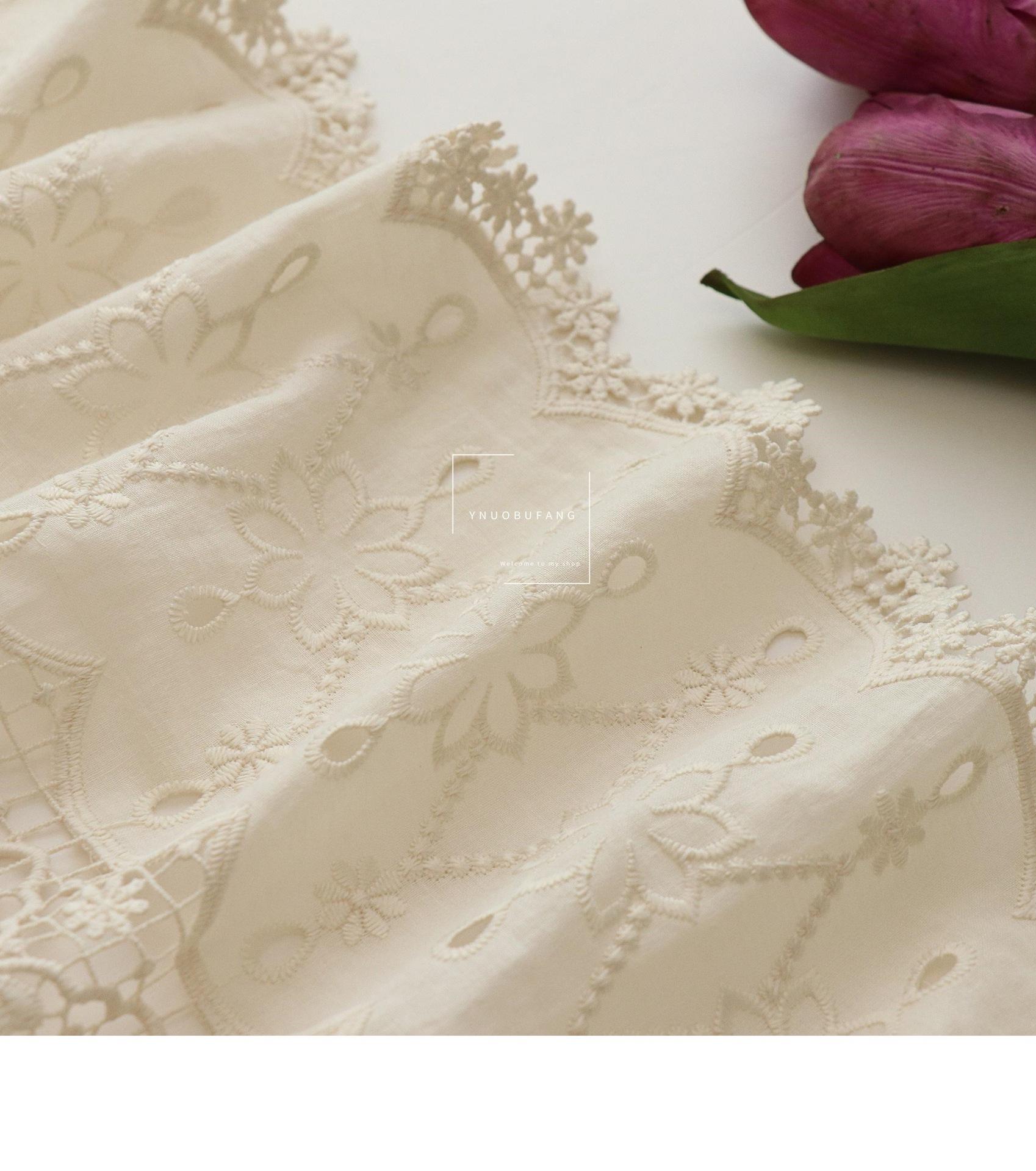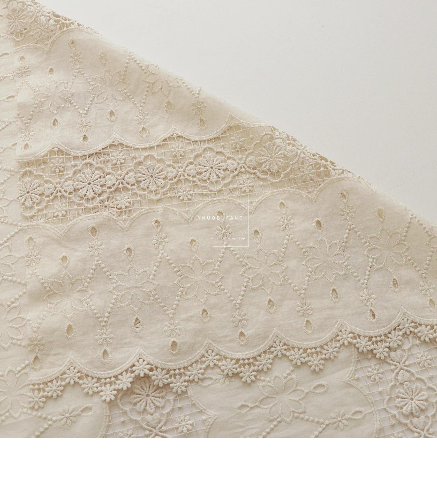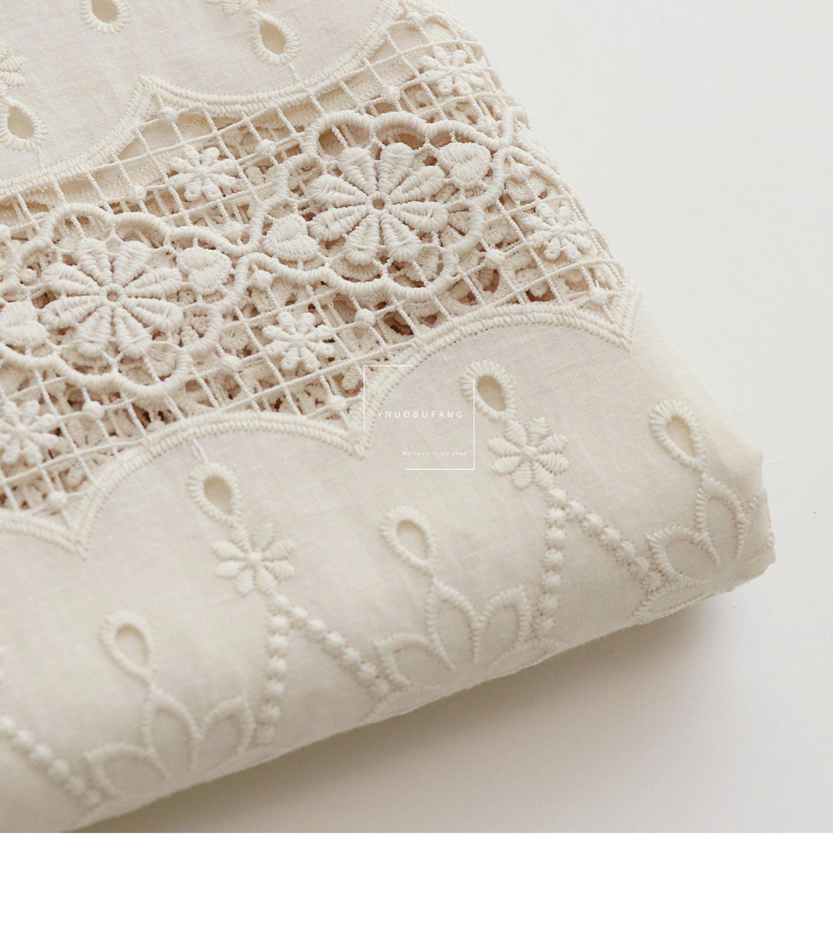 Tela bordada de algodón puro, tallada y hueca, de color liso, para camisas, faldas, ropa, manteles, tela hecha a mano.