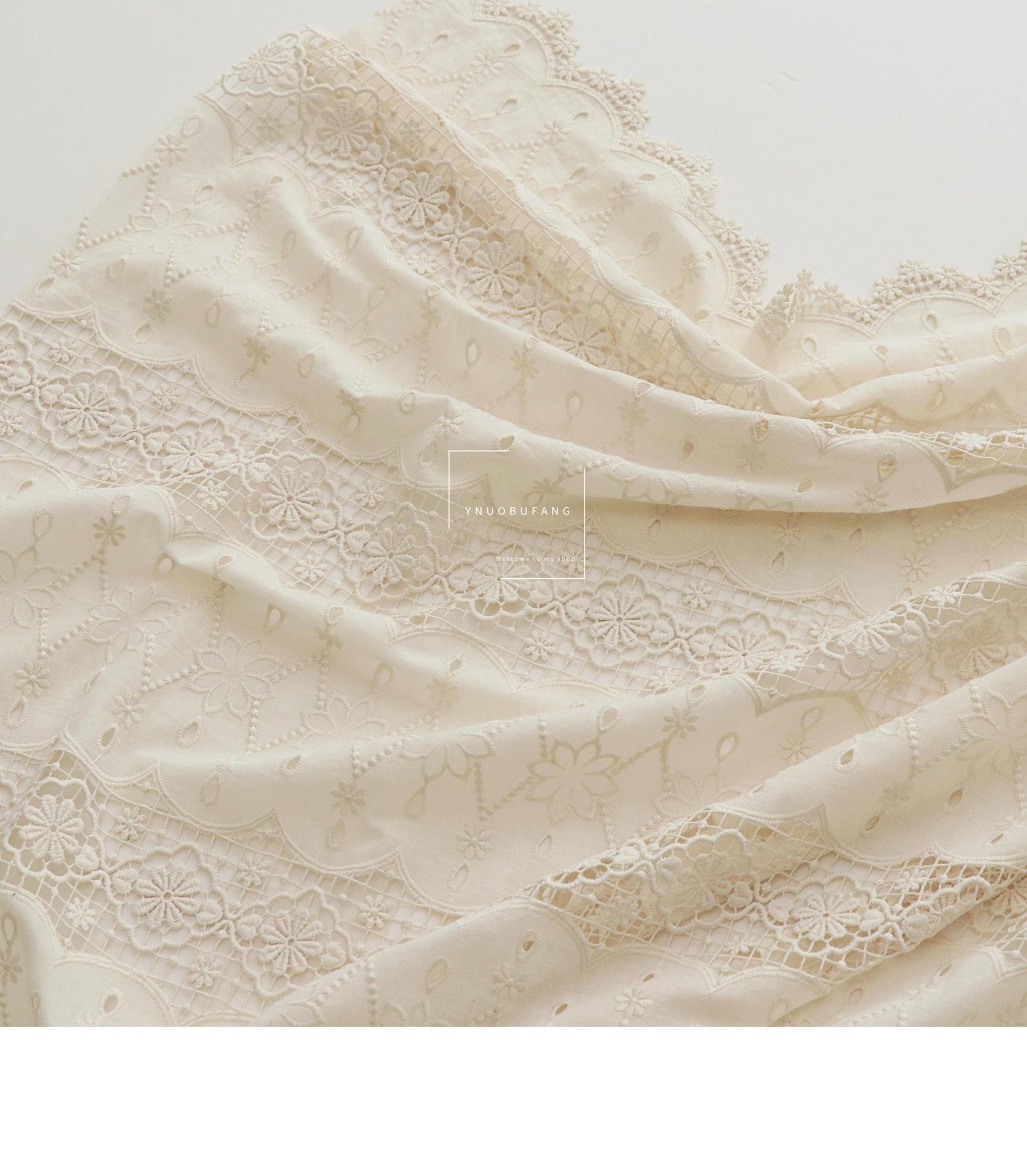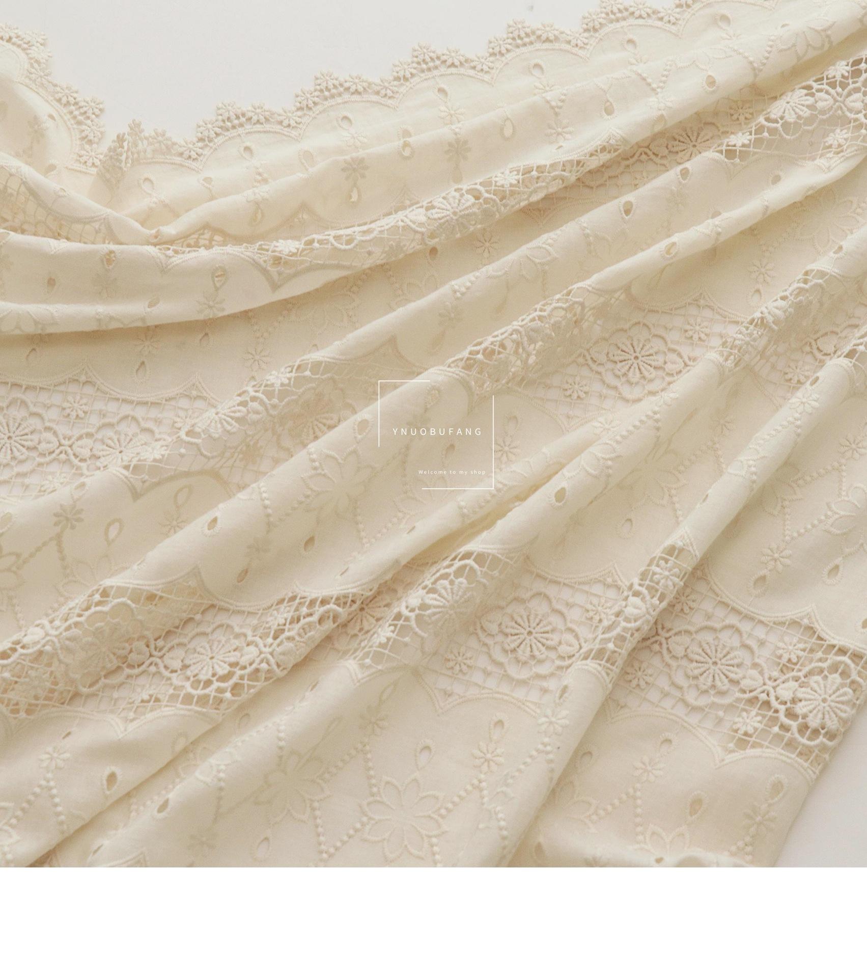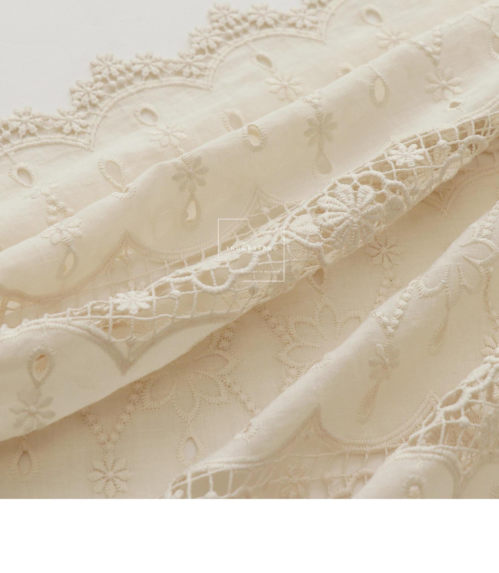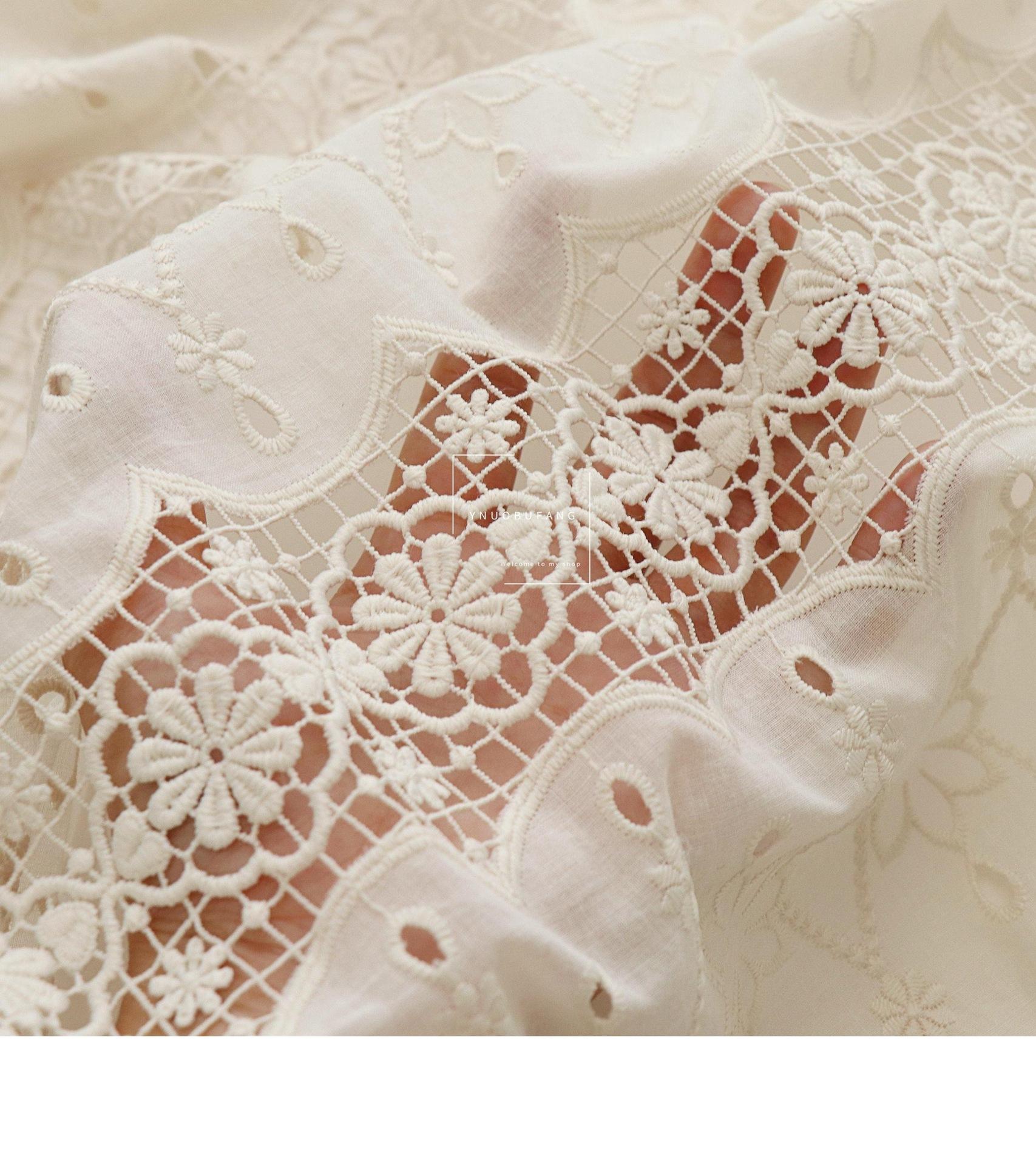 Tela bordada de algodón puro, tallada y hueca, de color liso, para camisas, faldas, ropa, manteles, tela hecha a mano.