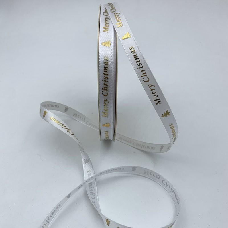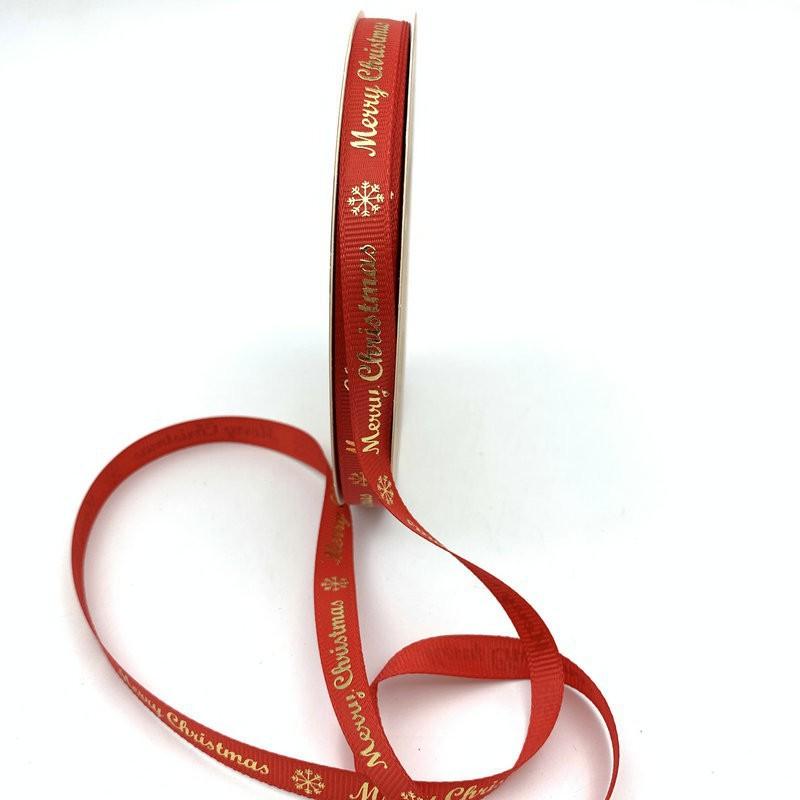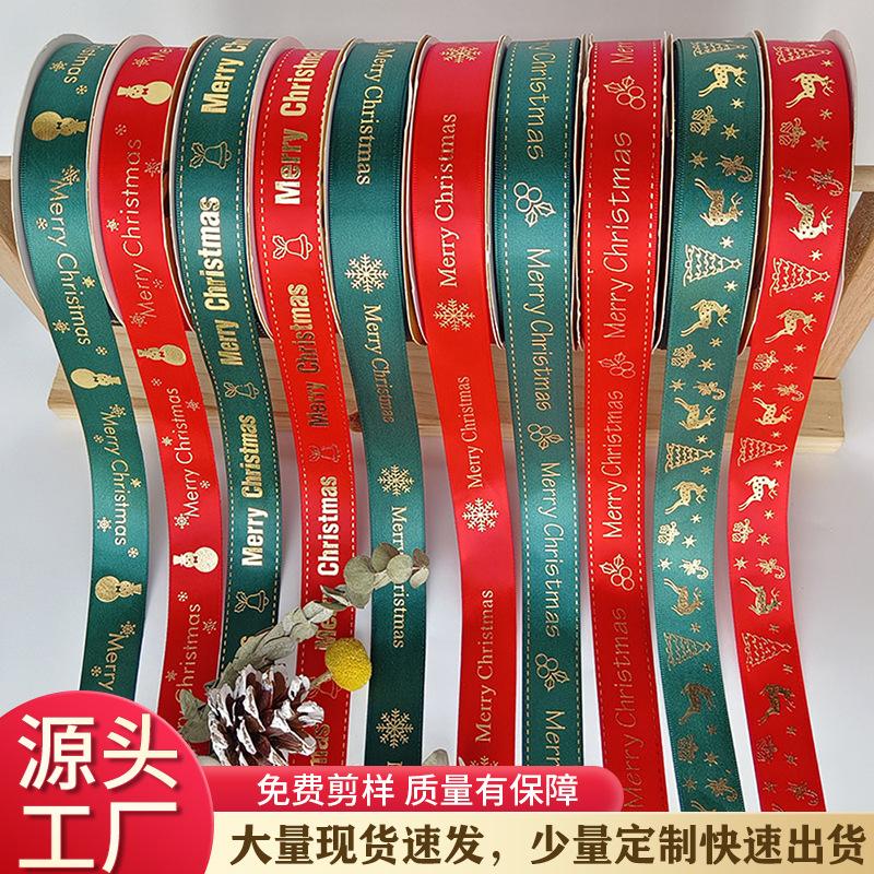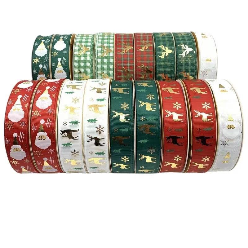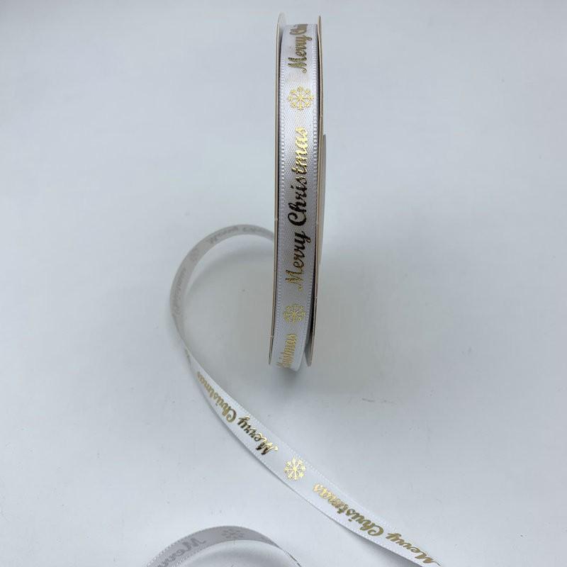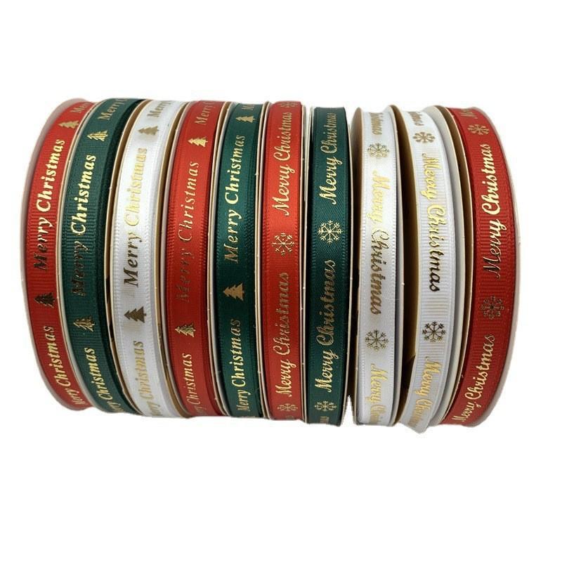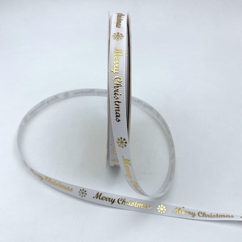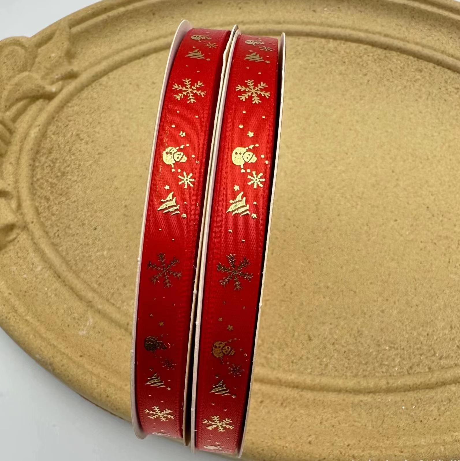 Cinta de Navidad de 1 cm con Estampado Caliente de Copo de Nieve Cinta para Empaque Decoración de Fiesta Empaque de Caja de Regalo Cinta de Navidad al Mayoreo