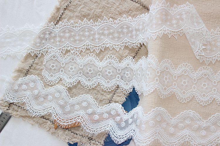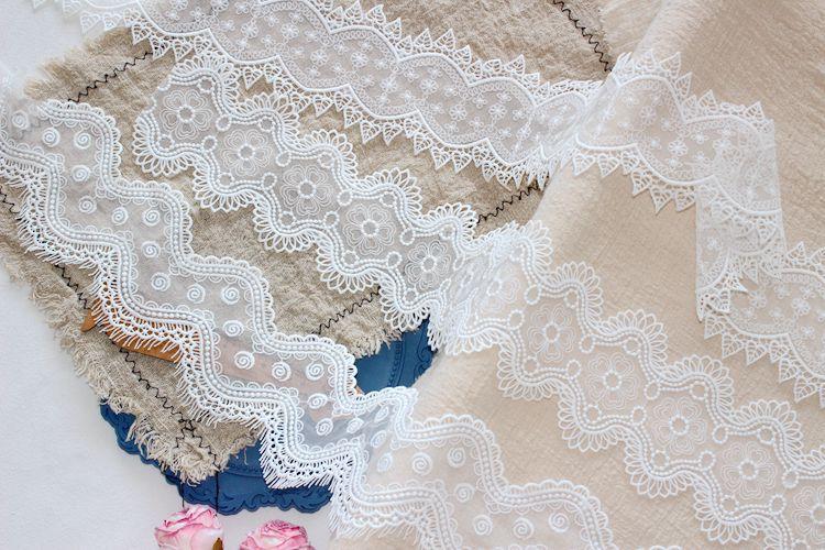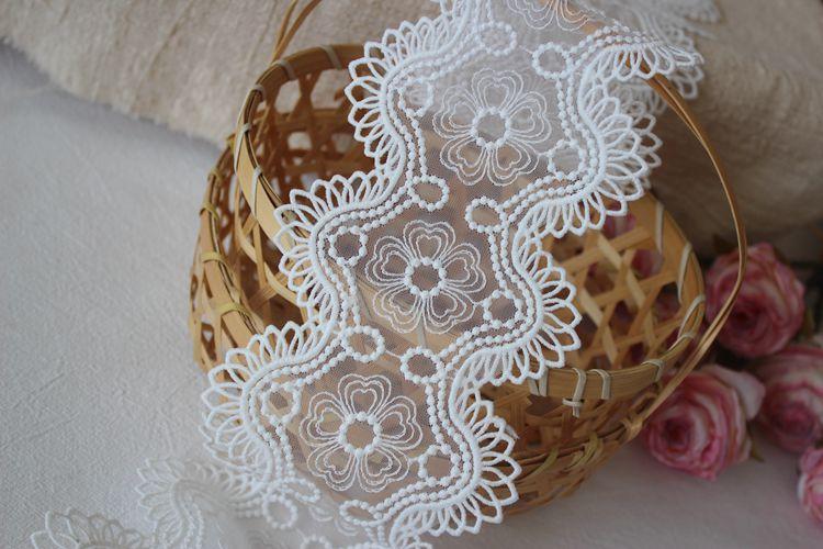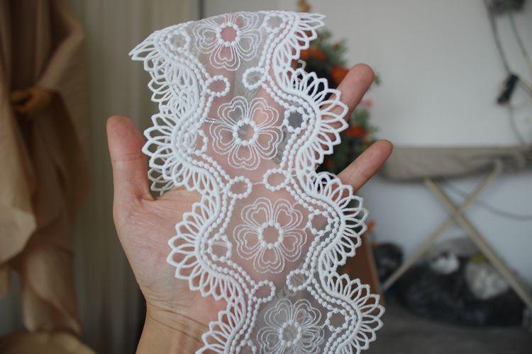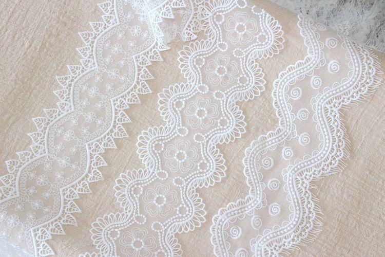 Exquisita organza rosa leche seda agua soluble encaje bordado tela de encaje DIY vestido de novia ropa costura accesorios