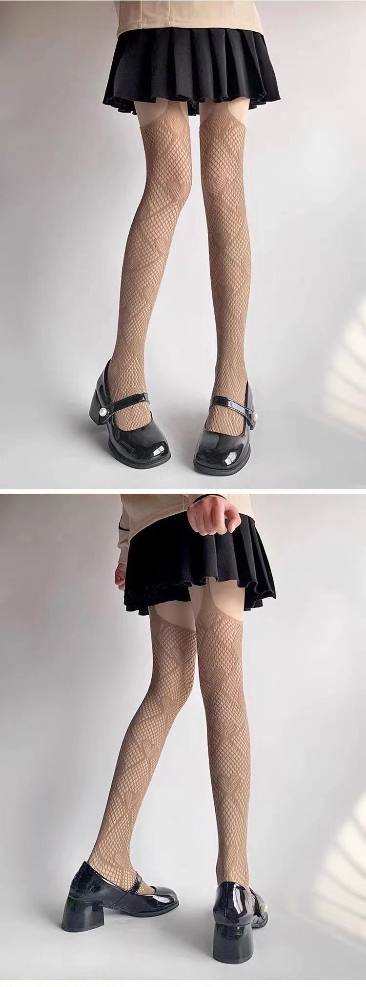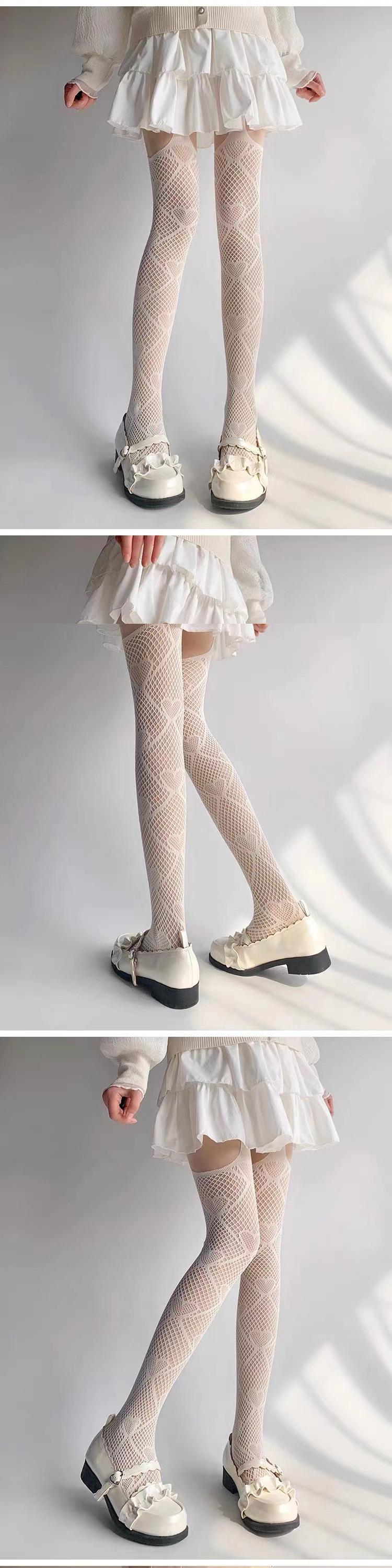Medias de rejilla con tiras integradas en el muslo por encima de la rodilla, medias finas, pantimedias de malla Love