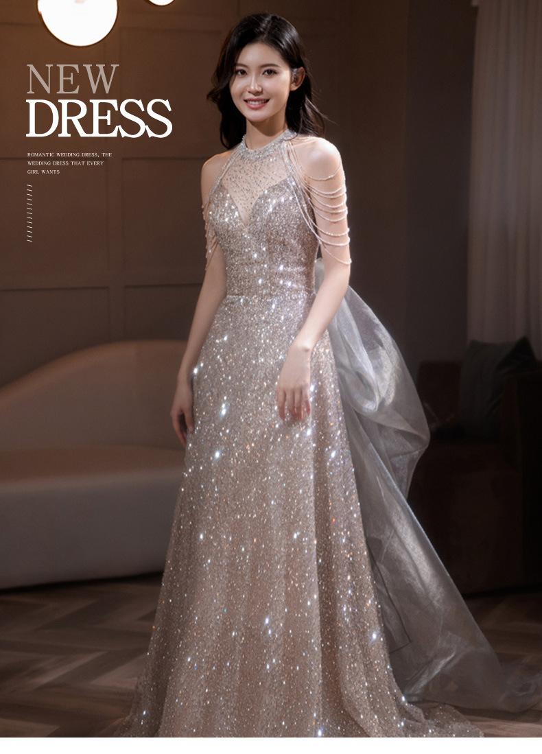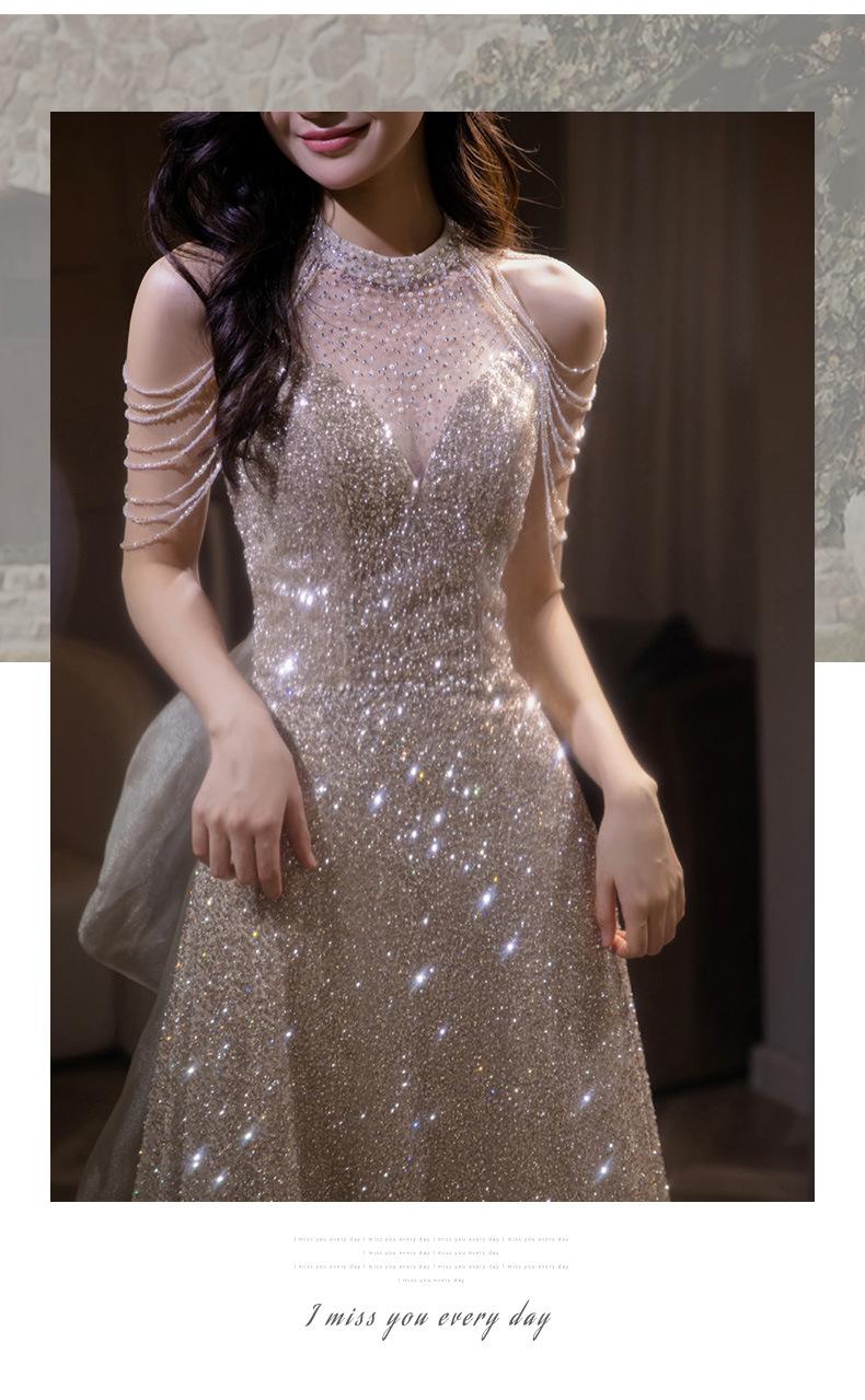 Compra Vestido de Noche de Alta Gama 2025 Nuevo Invierno Elegante Vestido de Brindis de Lentejuelas Plateadas Vestido de Socialité para Novia al por mayor en Joom.pro