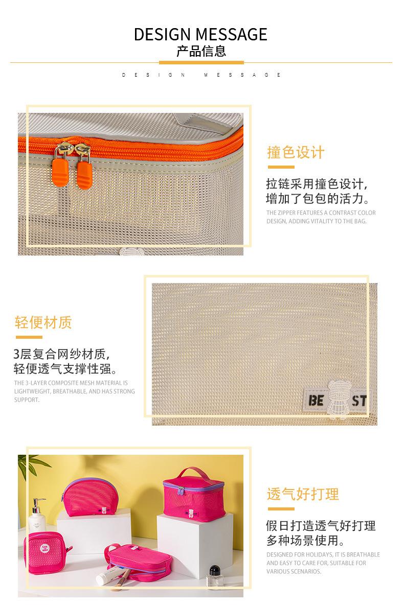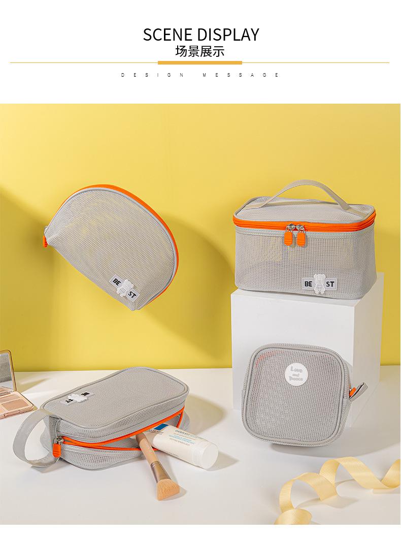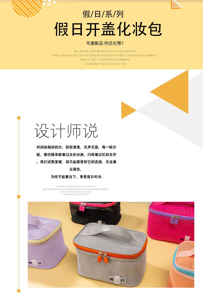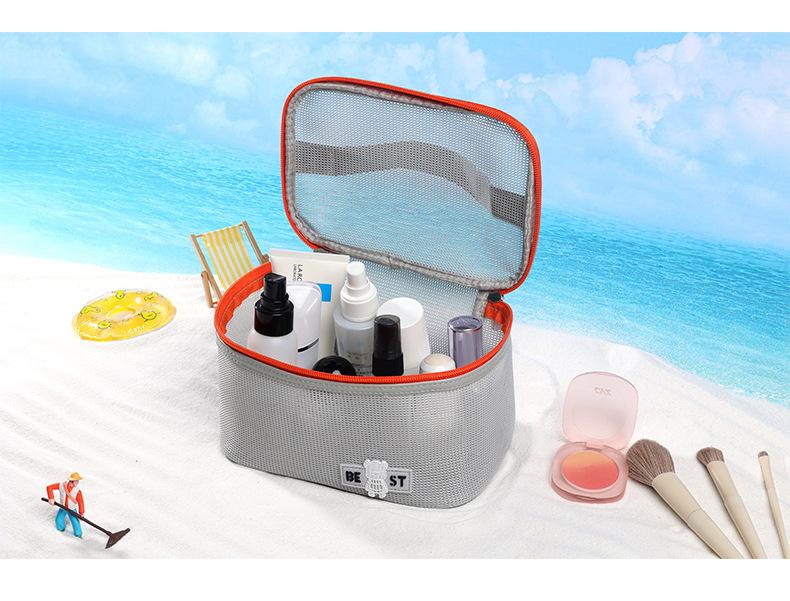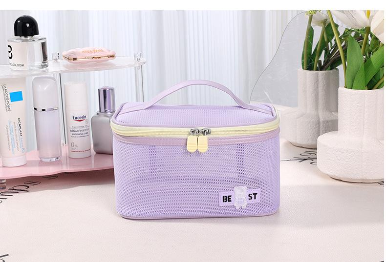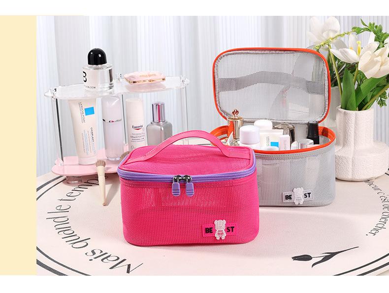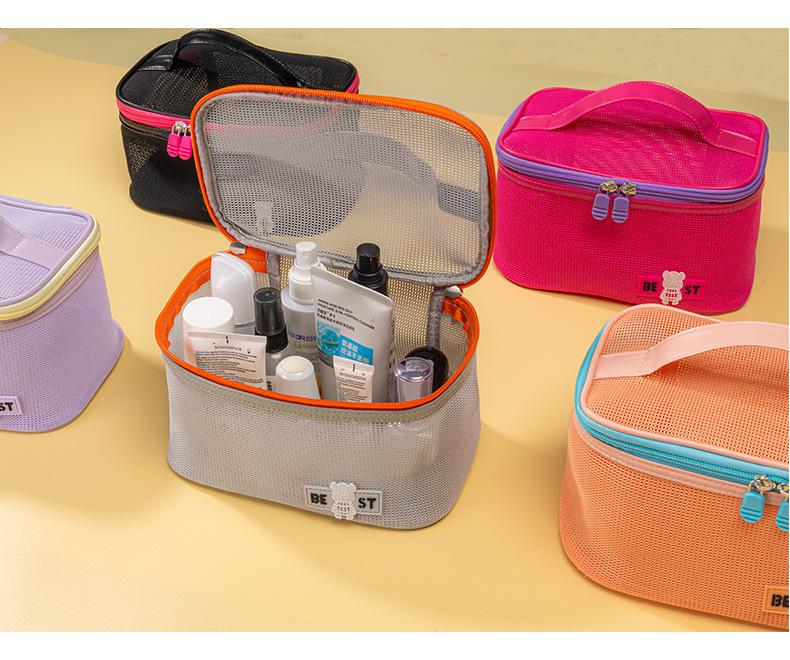 Bolsa de almacenamiento de cosméticos hueca de malla para viajes y vacaciones, portátil, con tapa abierta, bolsa de almacenamiento para lavado de color macarrón, venta al por mayor