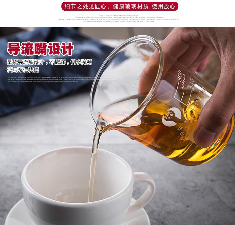 Vaso de precipitados de vidrio Vaso medidor con escala Tienda de té con leche Cilindro medidor pequeño Horneado doméstico Resistente a altas temperaturas Vaso medidor de grado alimenticio