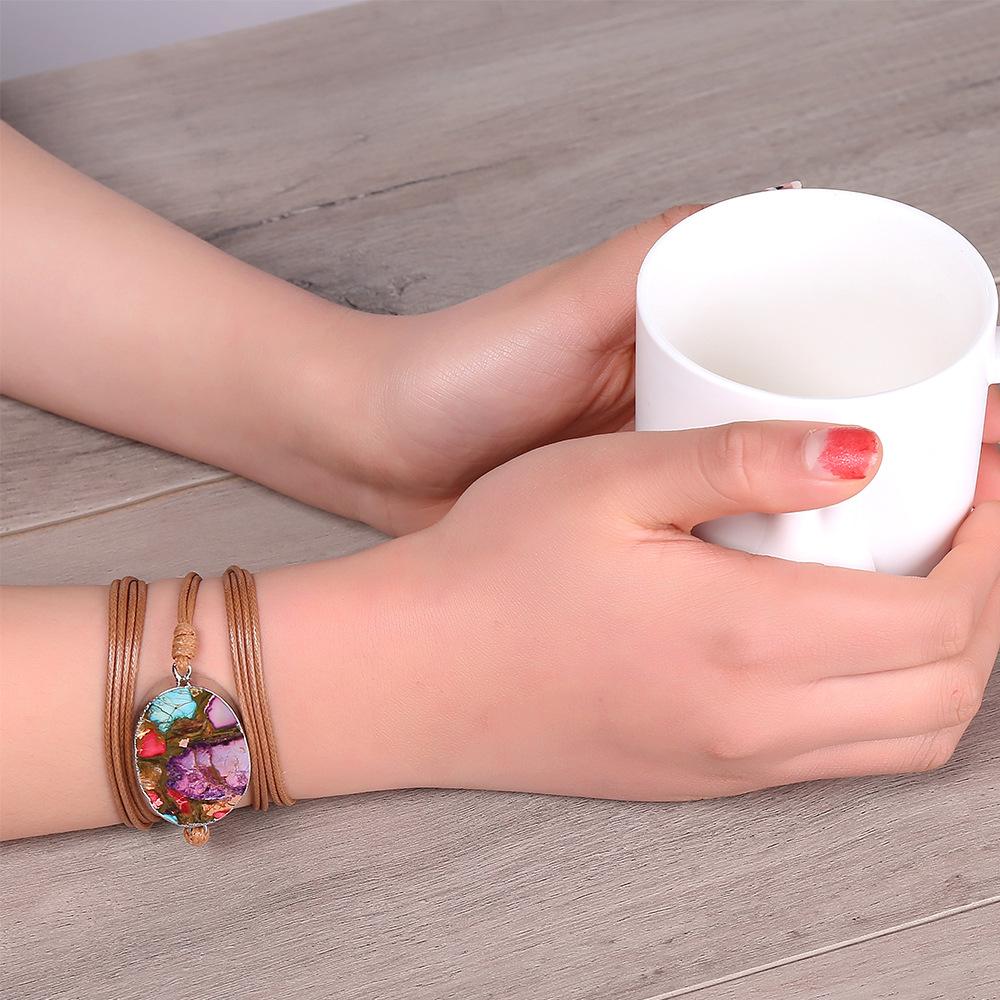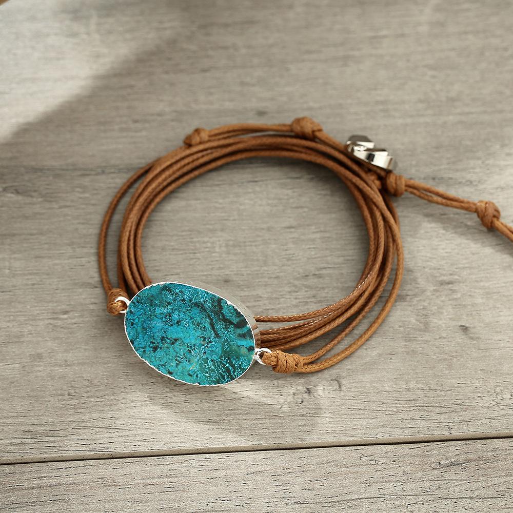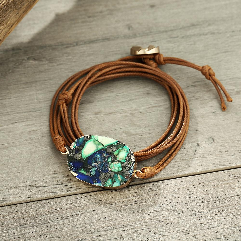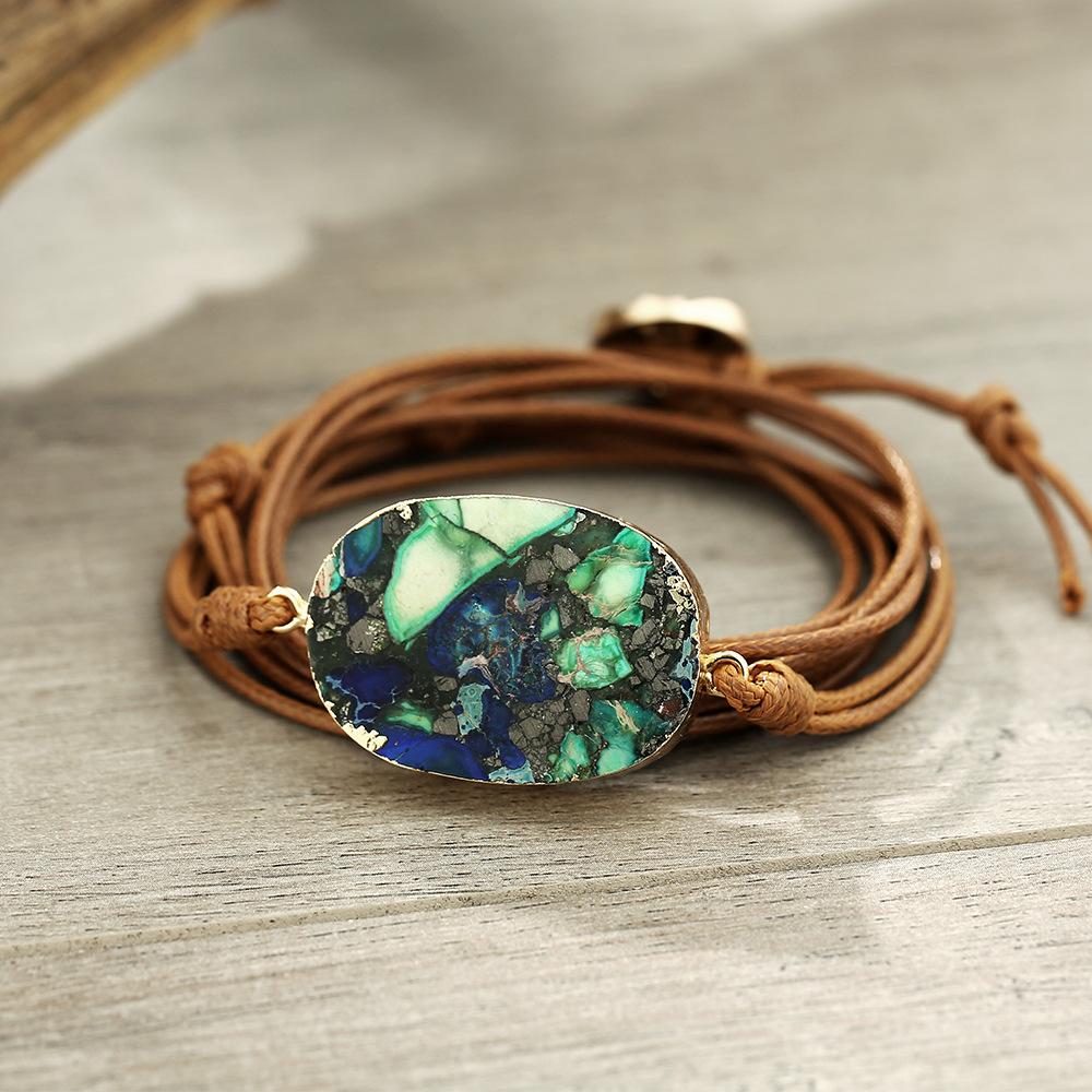 Pulsera Europea y Americana Vintage de Piedra Natural, con Cuentas de Piedra Natural Tejida Hecha a Mano, Pulsera Bohemia