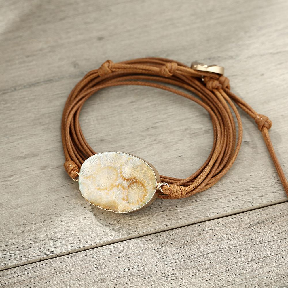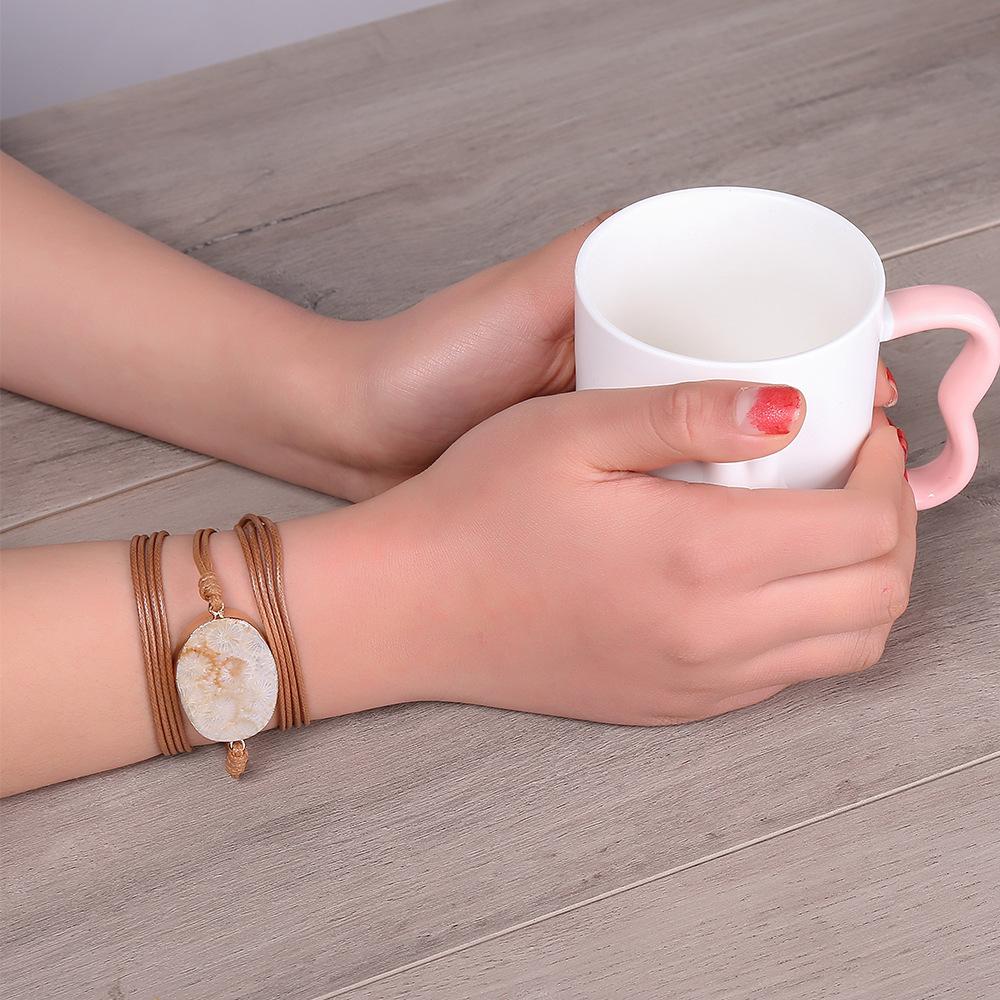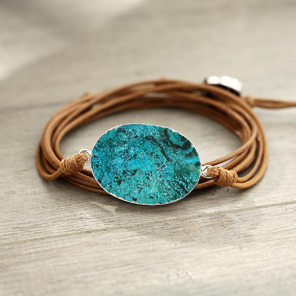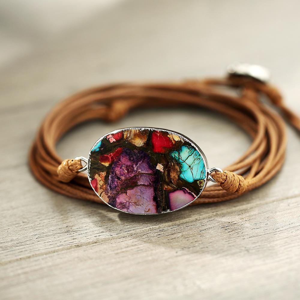 Pulsera Europea y Americana Vintage de Piedra Natural, con Cuentas de Piedra Natural Tejida Hecha a Mano, Pulsera Bohemia