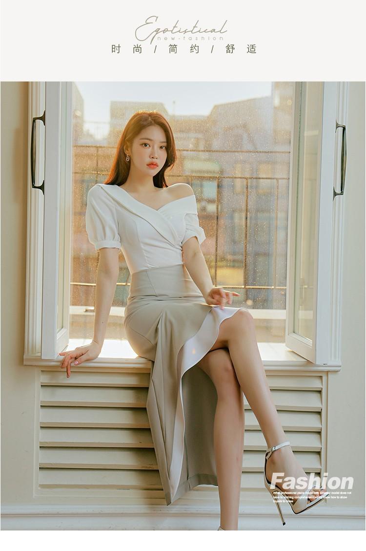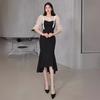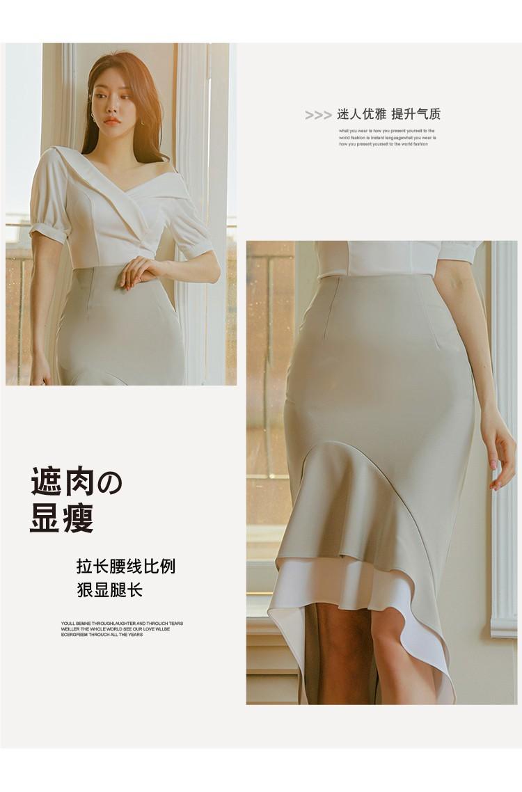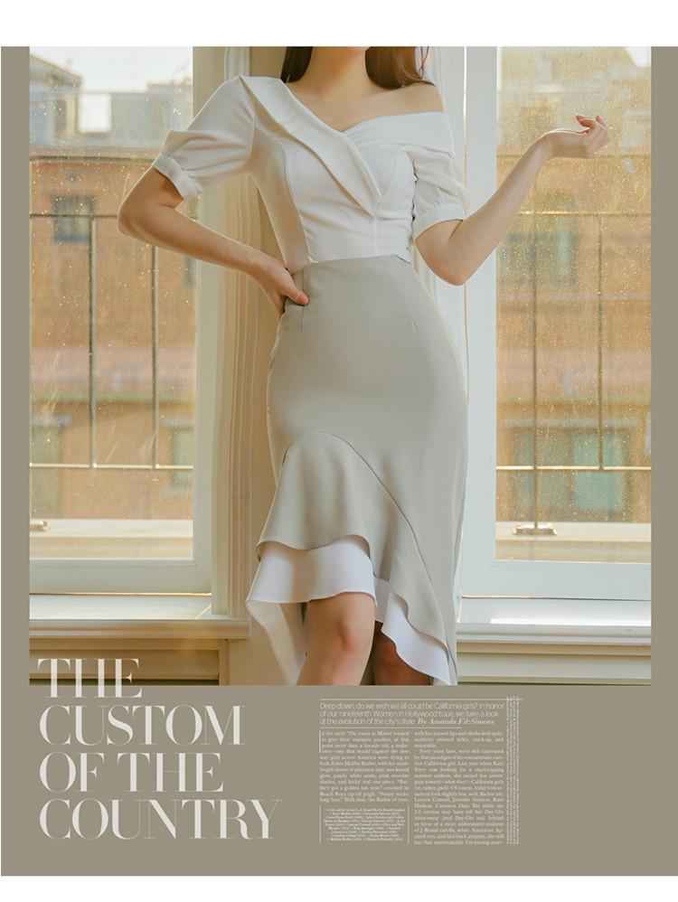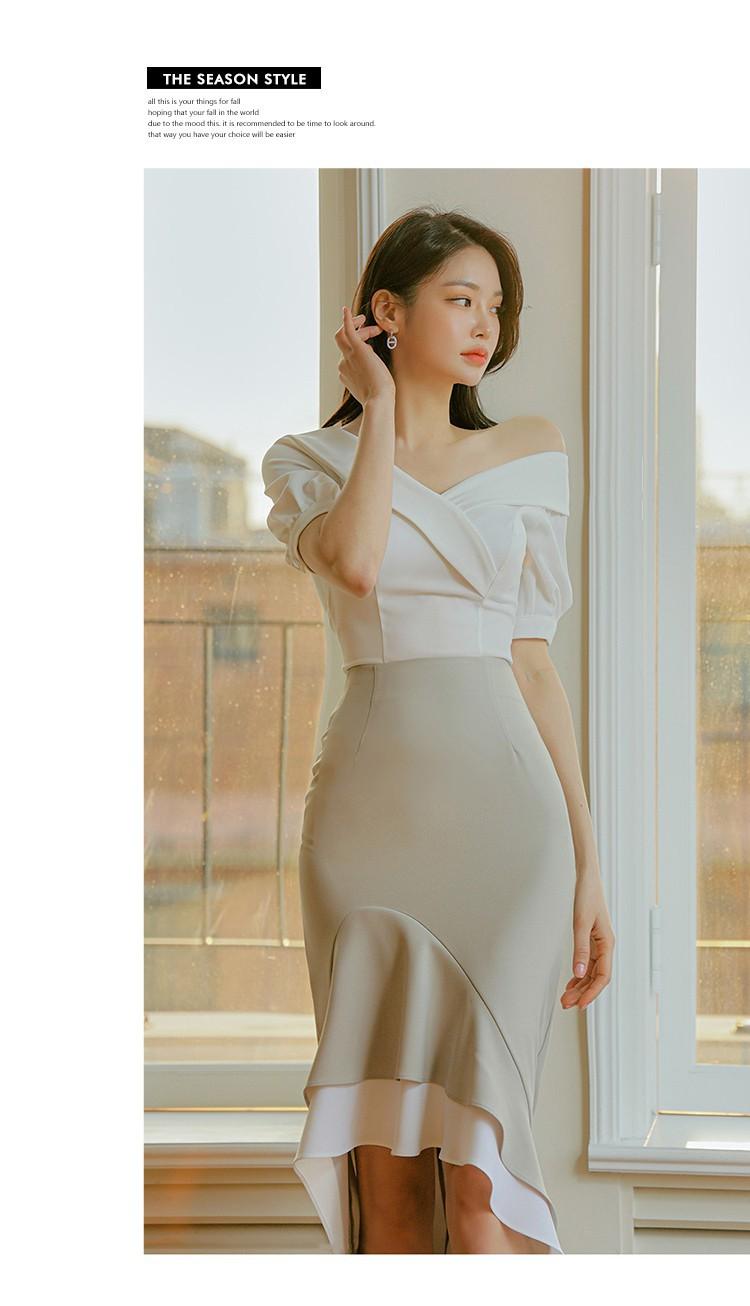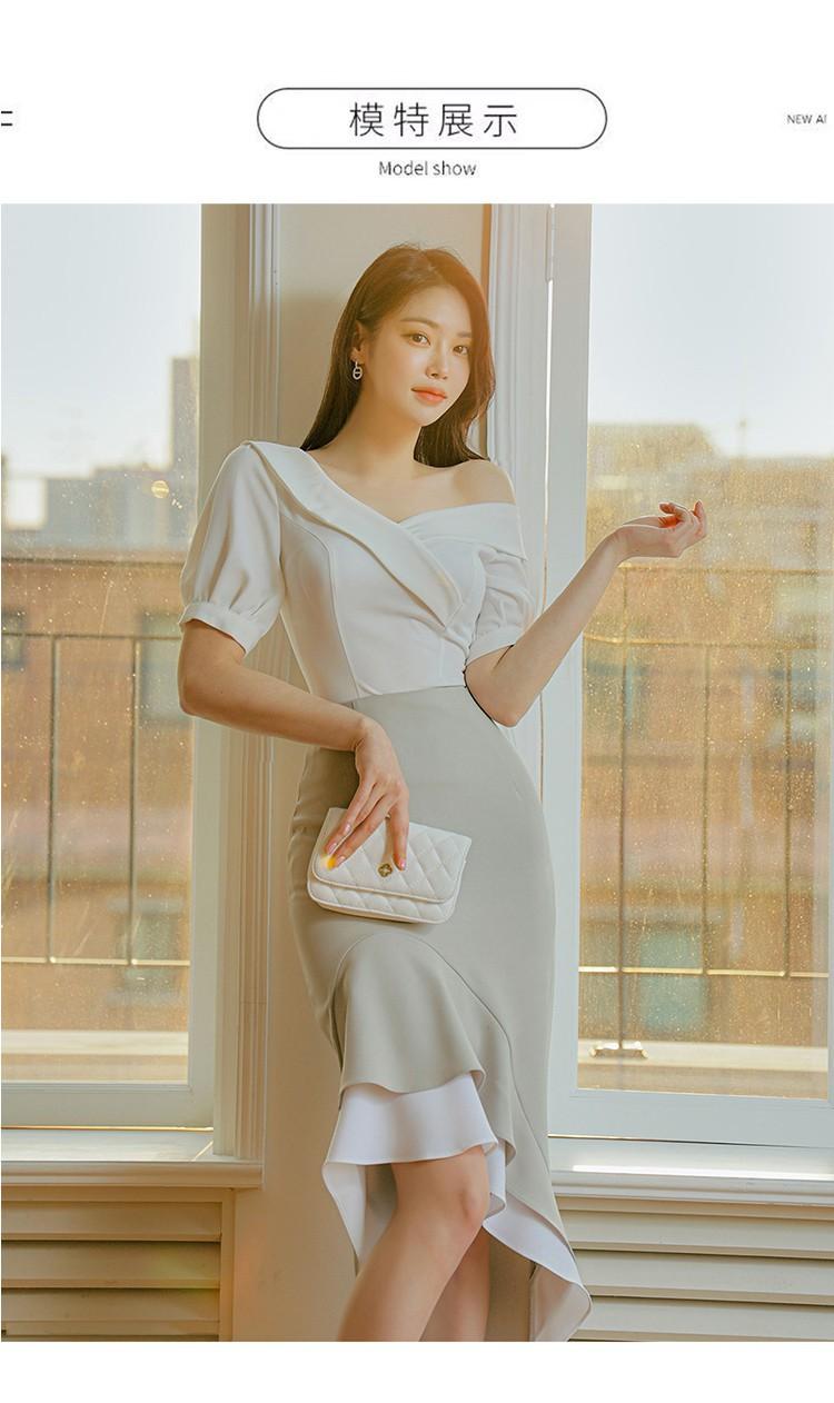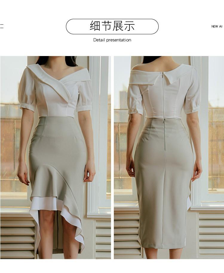 Traje profesional de falda con cuello asimétrico y manga abullonada para mujer, verano nuevo, falda de cola de pez de talle alto, conjunto de dos piezas