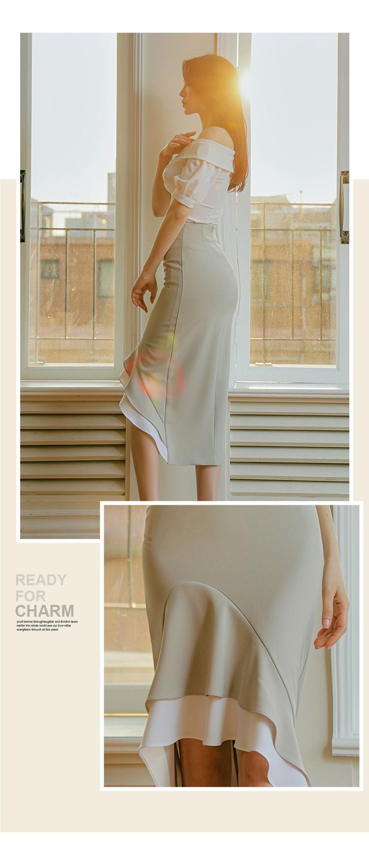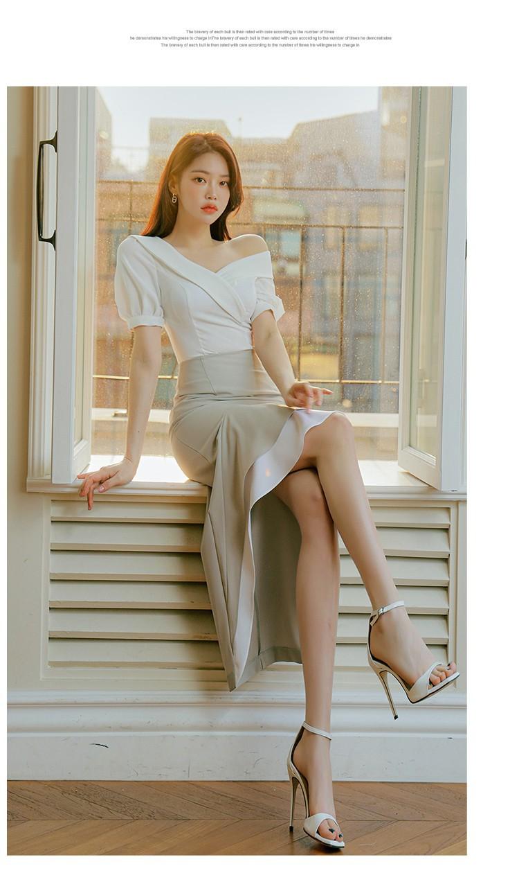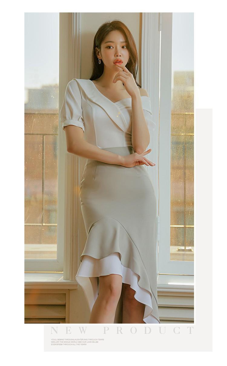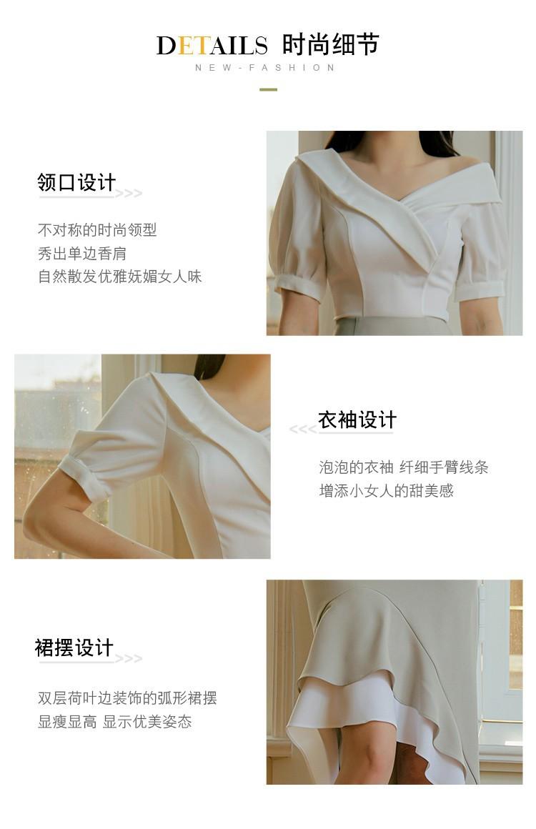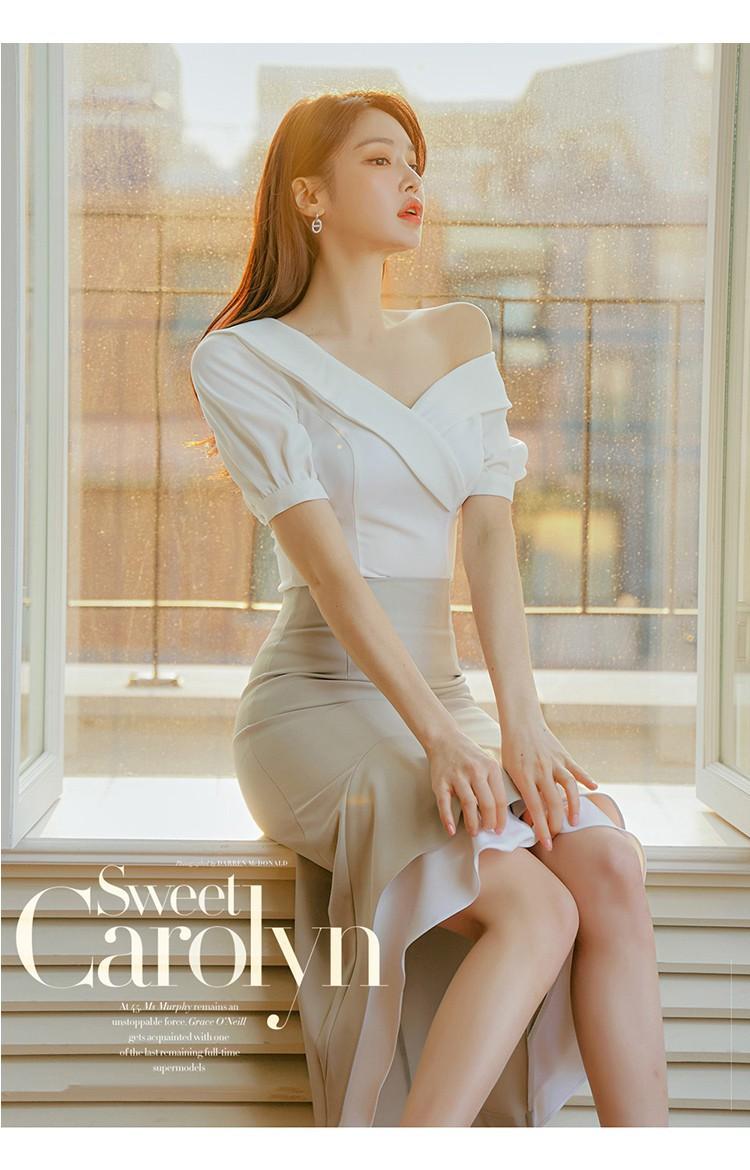 Traje profesional de falda con cuello asimétrico y manga abullonada para mujer, verano nuevo, falda de cola de pez de talle alto, conjunto de dos piezas