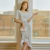Pleated ruffled puff sleeve fishtail irregular contrast color stitching zipper