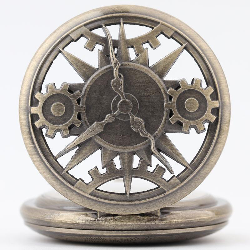 Reloj de bolsillo vintage de cuarzo con mecanismo abatible, grande, creativo, de bronce, para hombre y mujer, regalo nostálgico, venta al por mayor