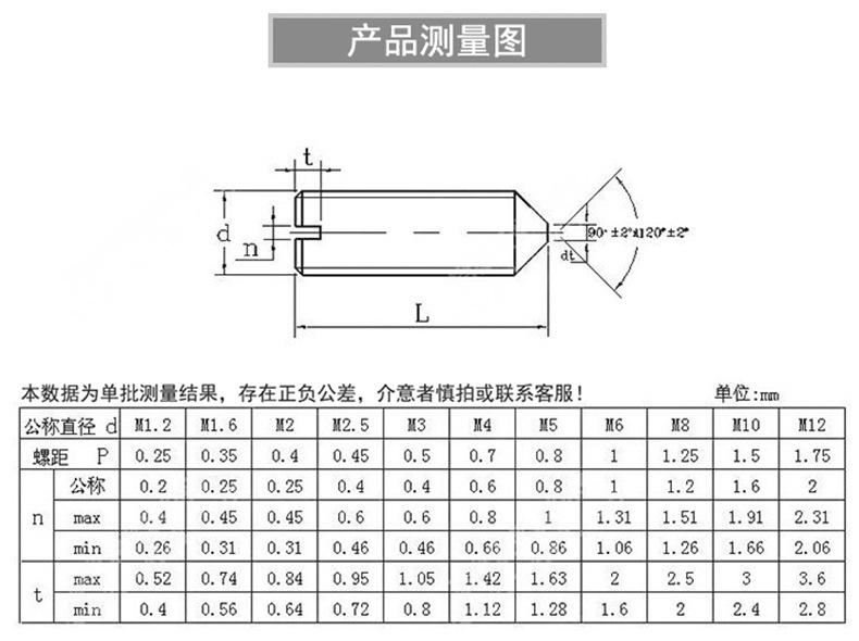 Tornillo de fijación con ranuras en la punta de acero inoxidable 304, tornillo de medición de una palabra, tope de punta, alambre superior M2M3M4M5M6