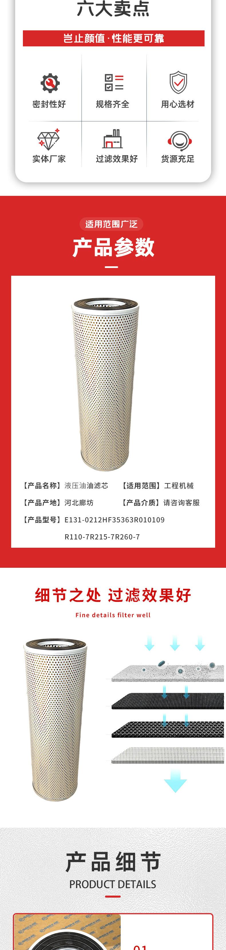 Elemento filtrante de aceite hidráulico E131-0212HF35363R010109 Filtro R110-7R215-7R260-7