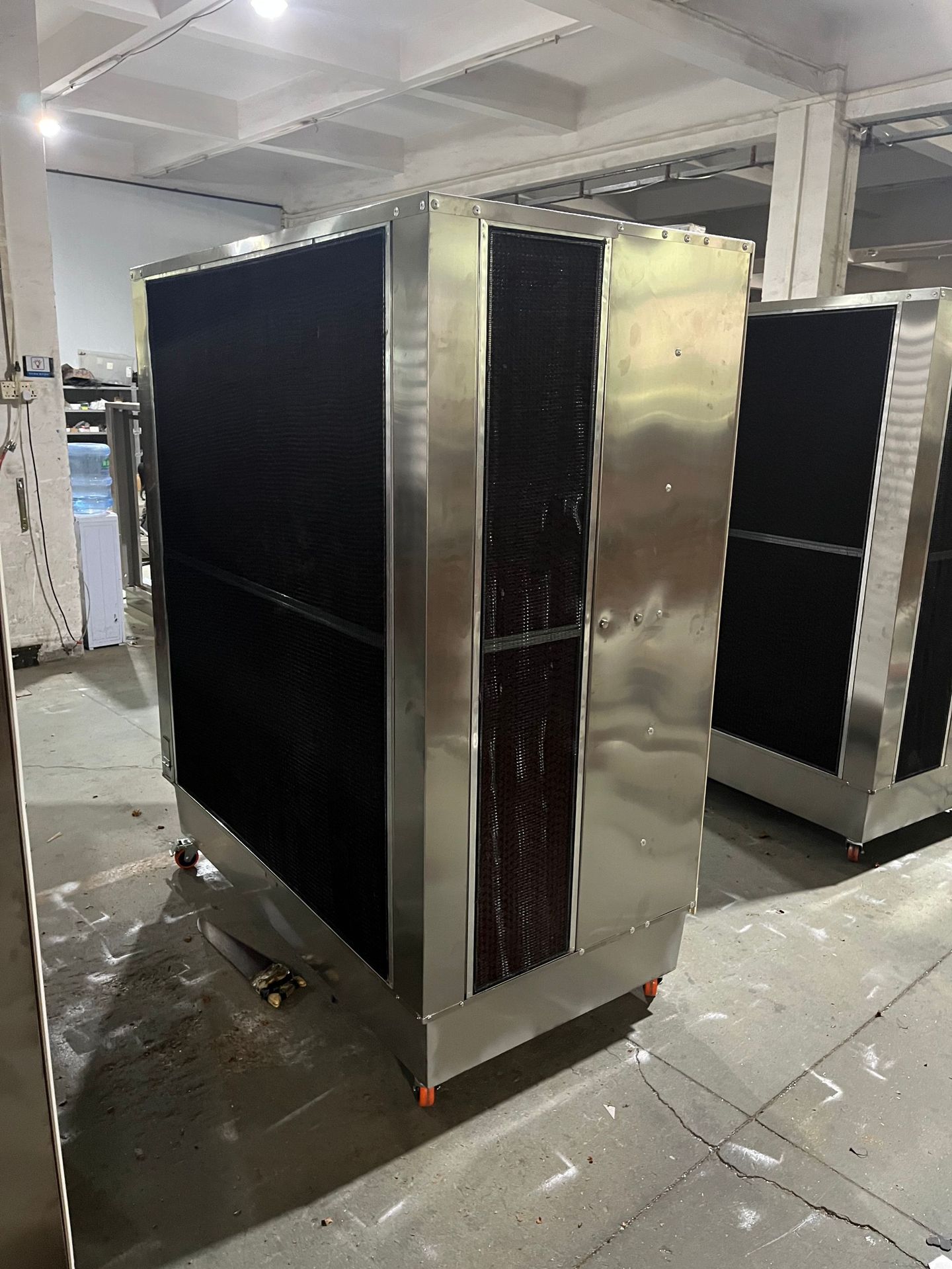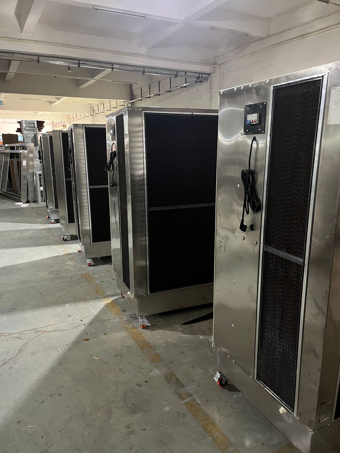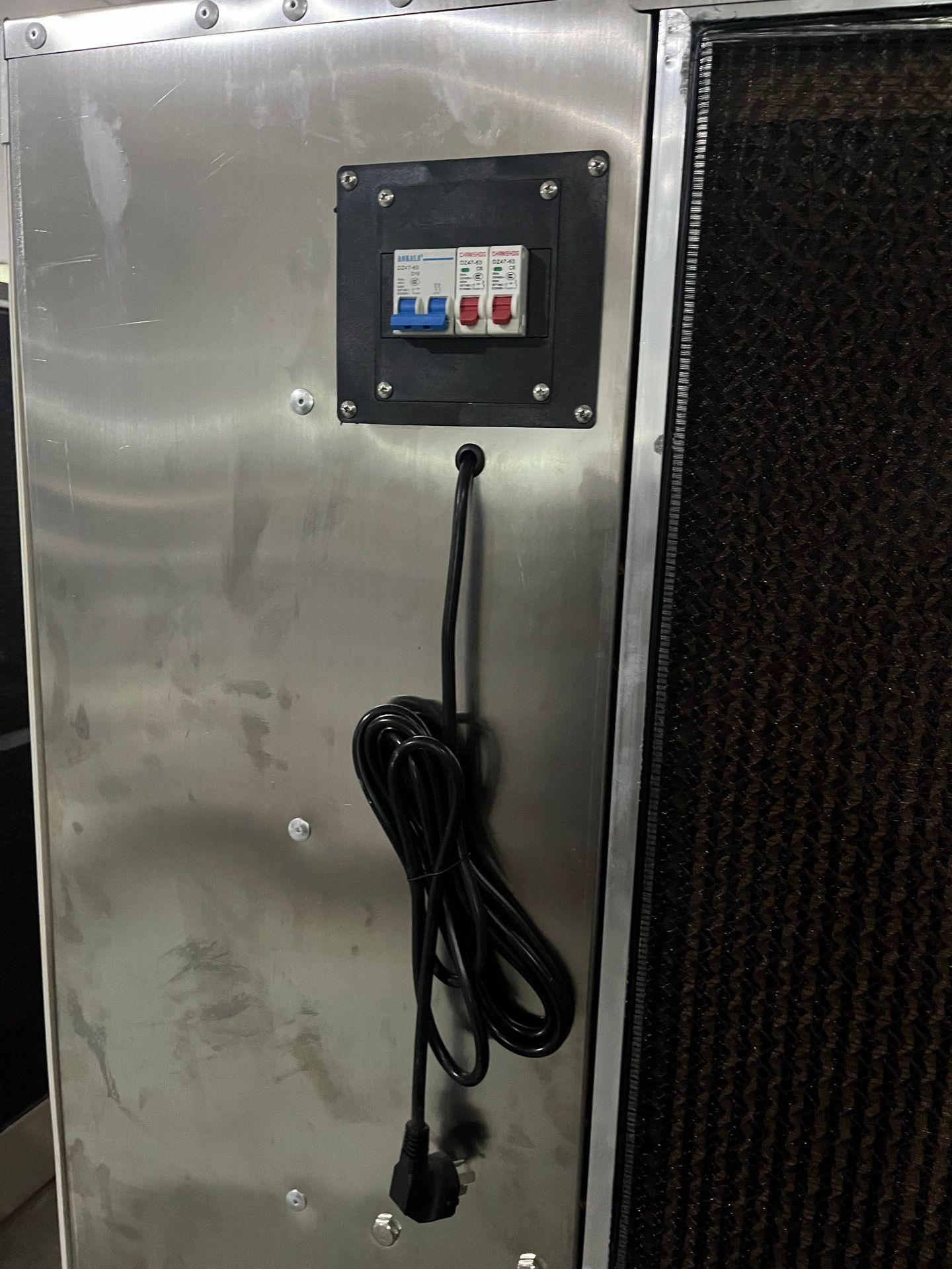 La siguiente imagen es una toma real de la máquina integrada de ventilador y cortina de agua tipo 1530 totalmente de acero inoxidable: