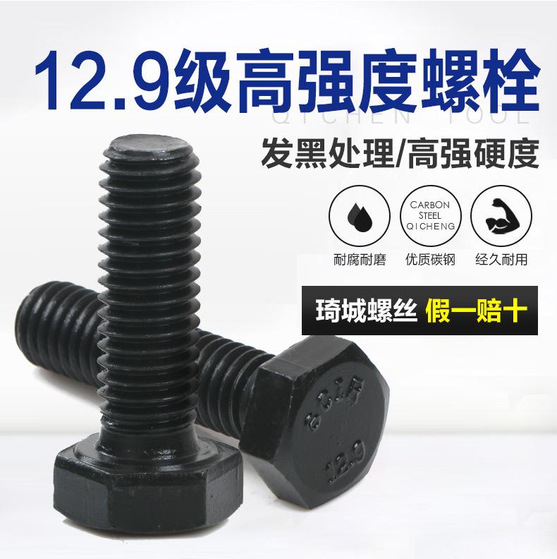 Tornillo hexagonal externo de grado 12,9 de alta resistencia, todo de acero al carbono negro, perno de acero de aleación, tornillo extendido M6M8M10M12