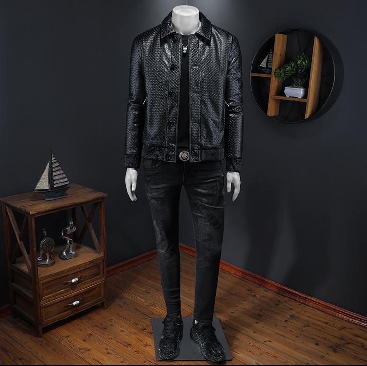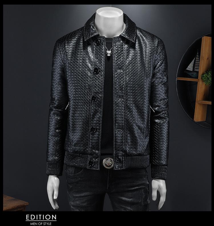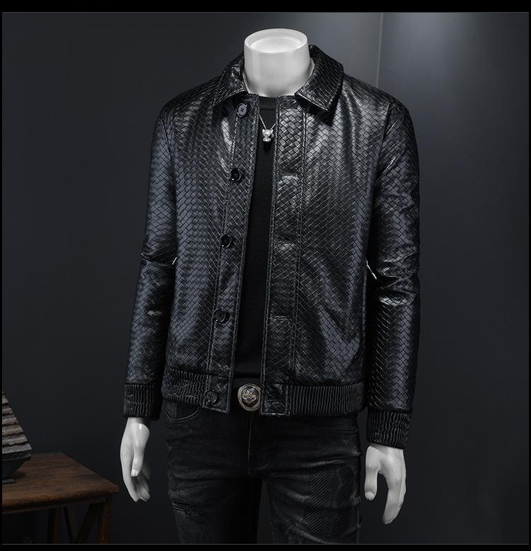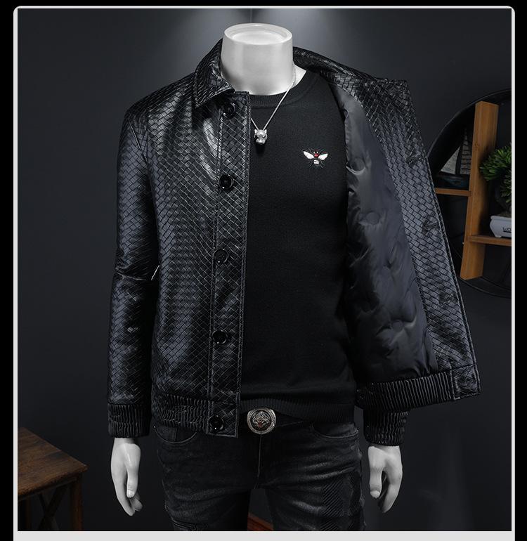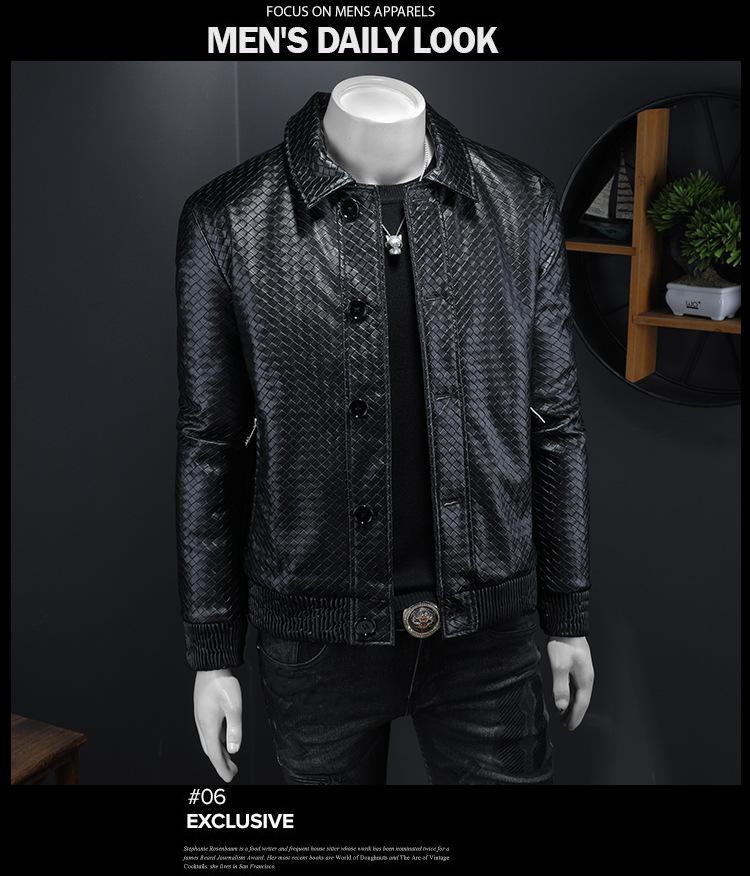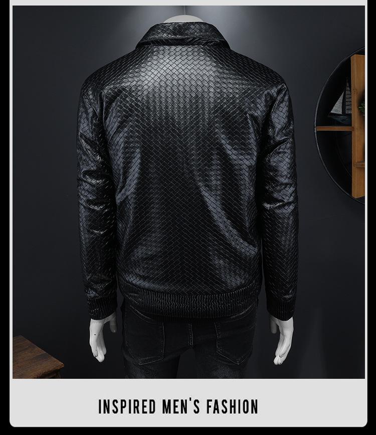 Chaqueta de plumón de cuero grueso con cuello alto para hombre, estilo europeo, cálida, de invierno, informal, de moda, estilo coreano.