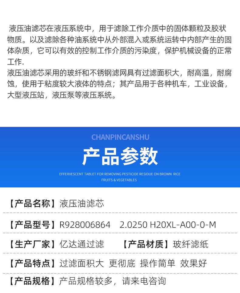 Filtro de aceite fino para estación R 928006864 2.0250H20Xl-A00-0-M Elemento de filtro hidráulico