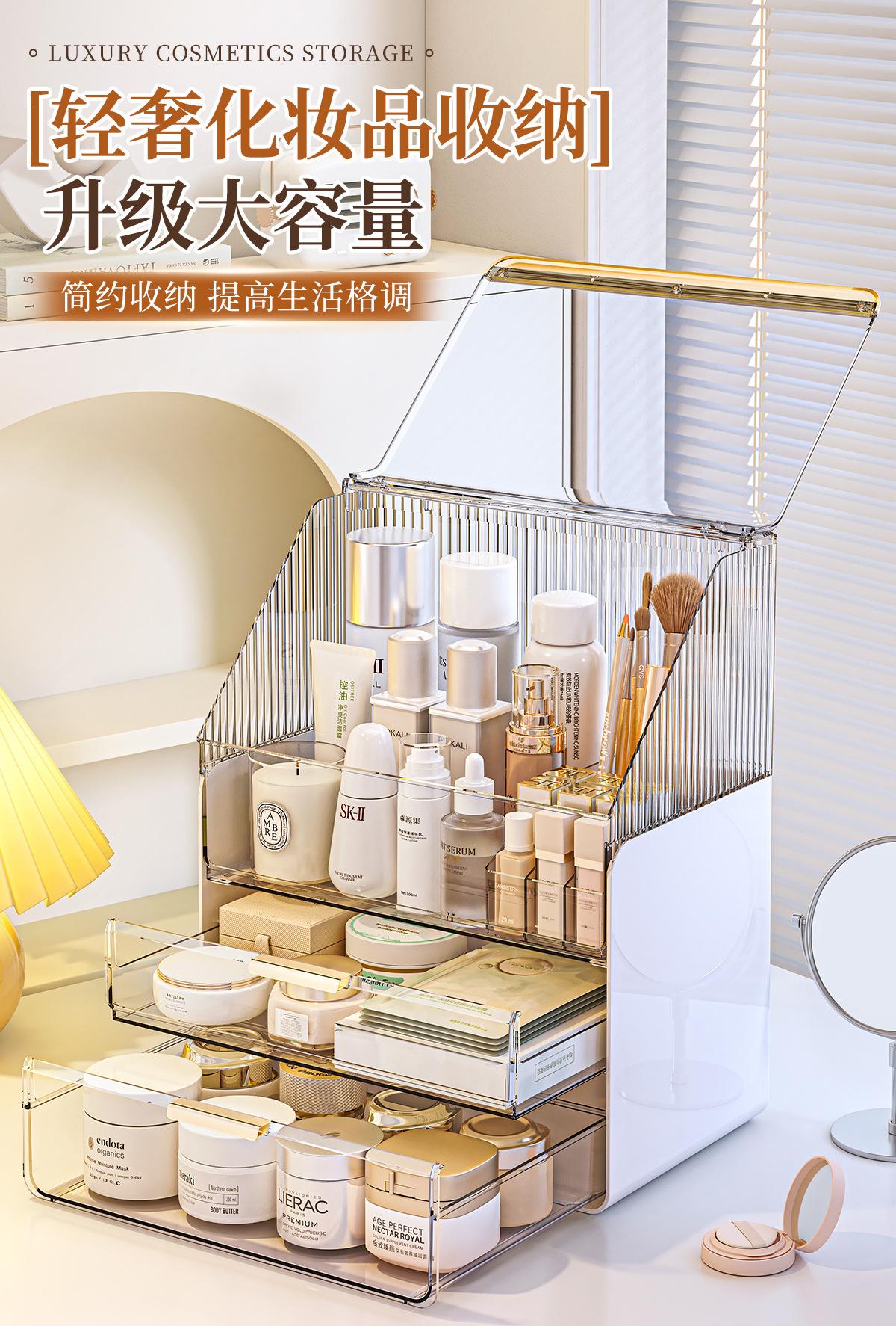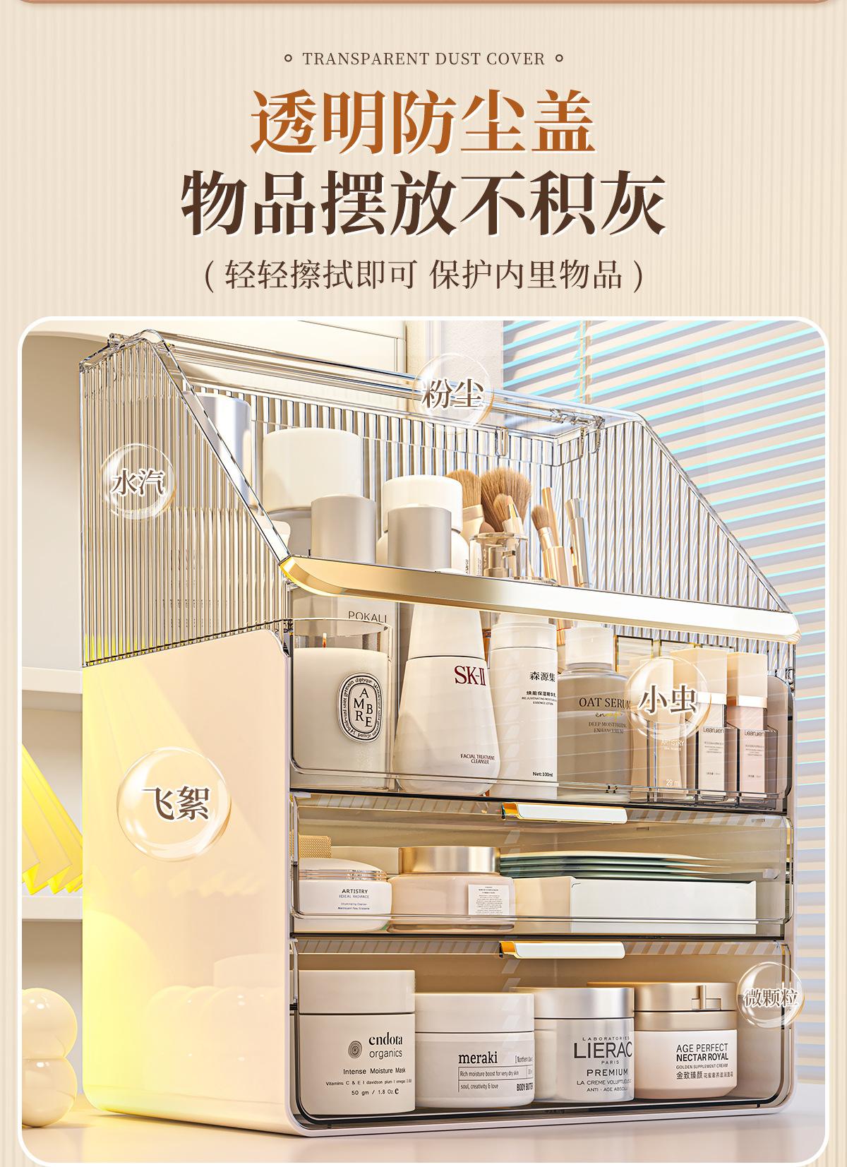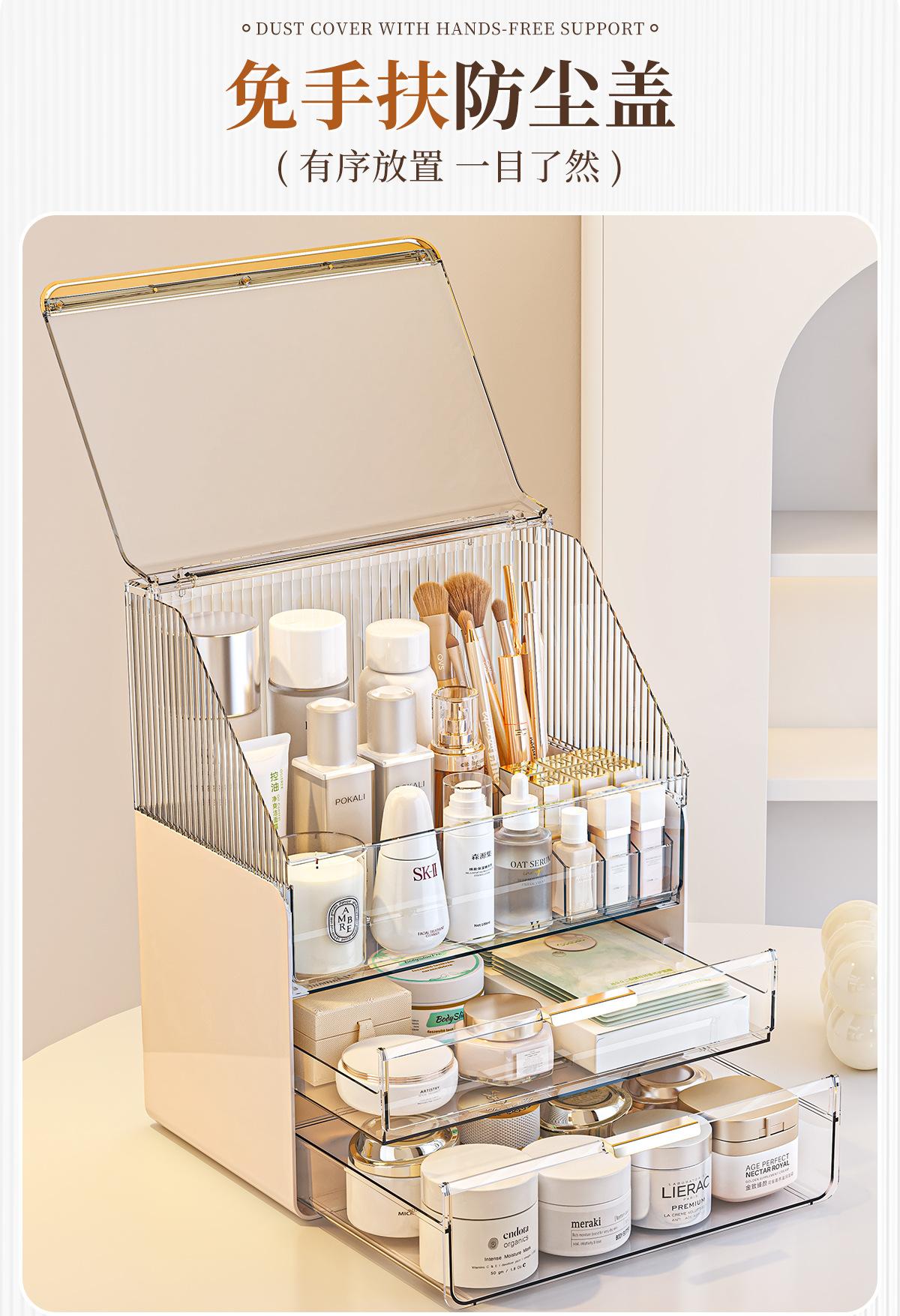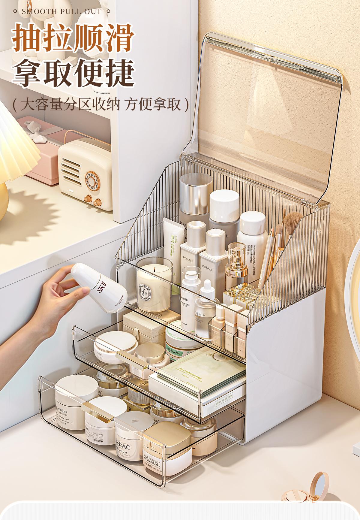 Caja de almacenamiento de cosméticos de escritorio, avanzada, a prueba de polvo, para el cuidado de la piel, tocador, cajón de acrílico, caja de cosméticos