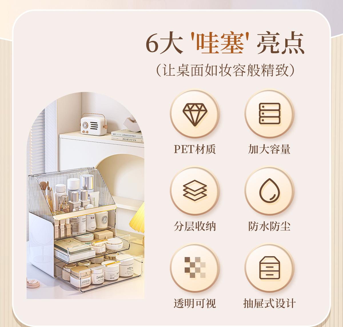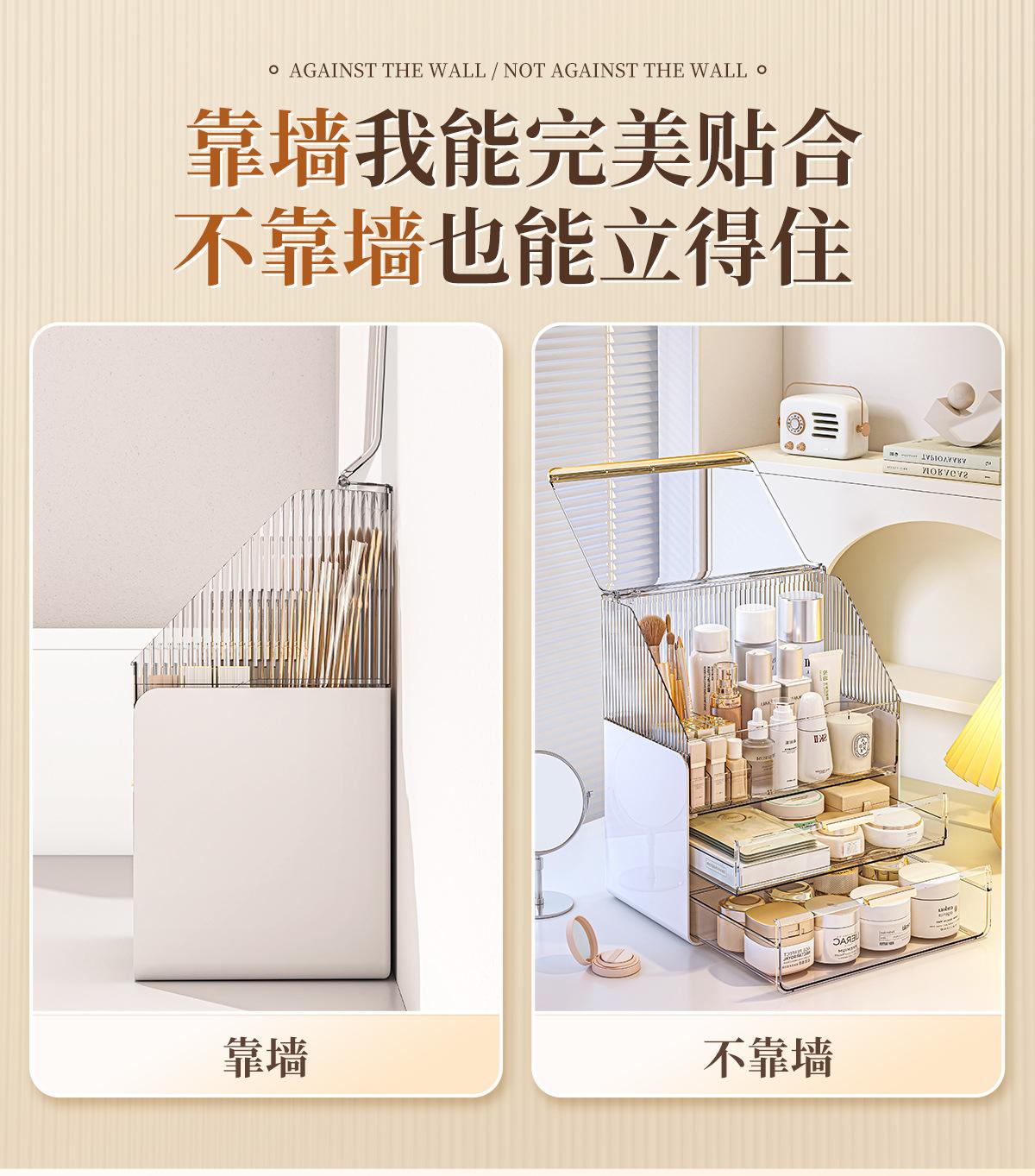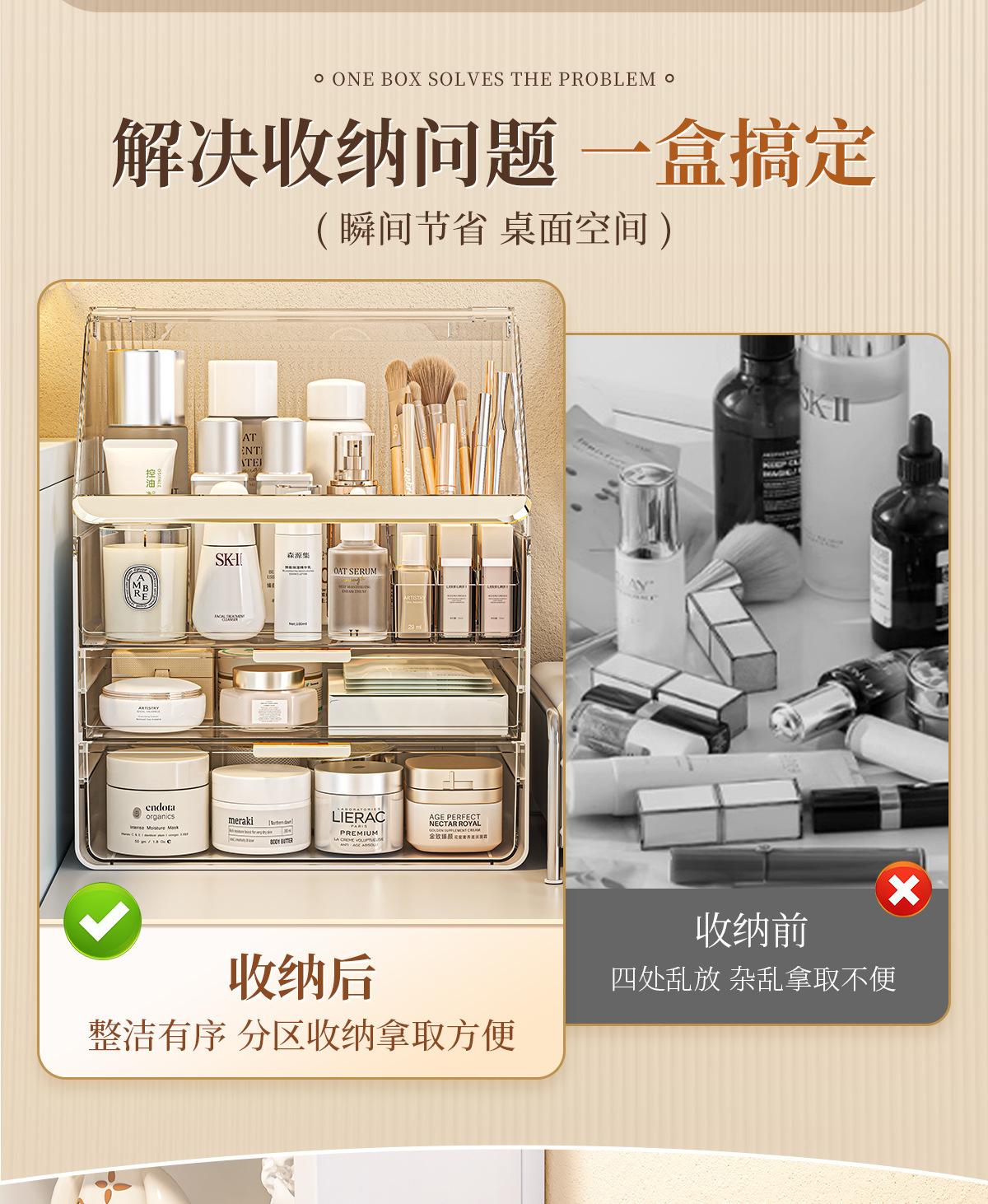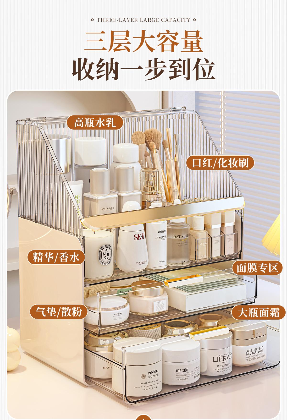 Caja de almacenamiento de cosméticos de escritorio, avanzada, a prueba de polvo, para el cuidado de la piel, tocador, cajón de acrílico, caja de cosméticos