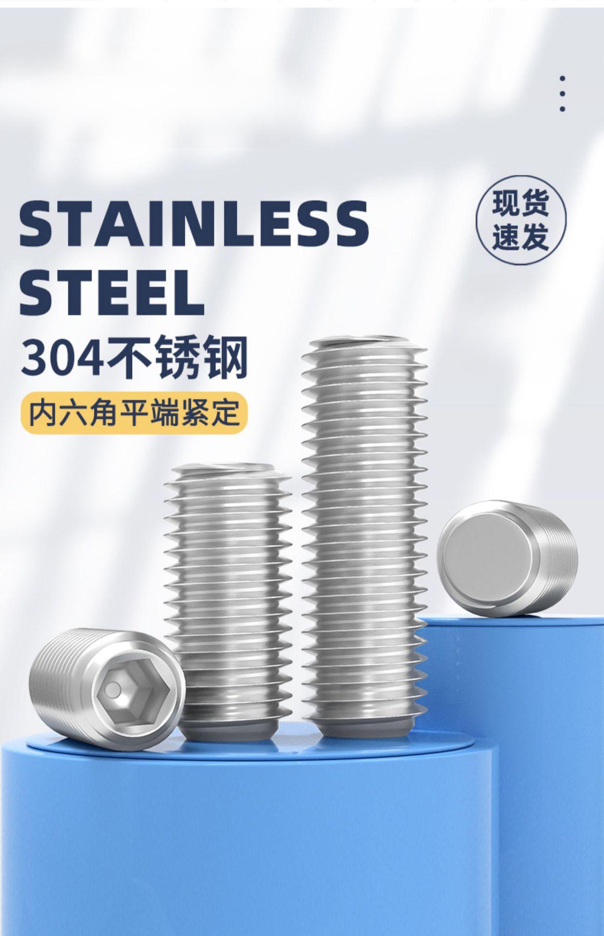 Tornillo de fijación de extremo plano de dientes finos de acero inoxidable 304, sin cabeza, con zócalo hexagonal, para máquina, con tope de alambre superior