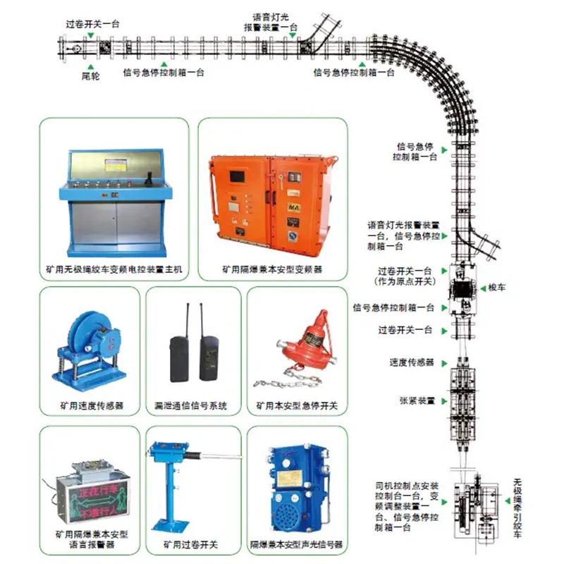 El dispositivo de protección y control para cabrestantes de cable sin fin para minería (en adelante, el dispositivo) se utiliza para proteger el transporte de estos cabrestantes en minas subterráneas de carbón. Cuenta con funciones como visualización de la velocidad de marcha, visualización de la posición de marcha de la máquina de tracción del cabrestante, visualización de la presión hidráulica, visualización de la presión de tensado, arranque en avance y retroceso, prevención de sobrebobinado en cabeza y cola, comunicación de fugas, parada de emergencia por fugas, marcado de fugas, bloqueo del marcado de comunicación y alarma de voz para horquillas y curvas.