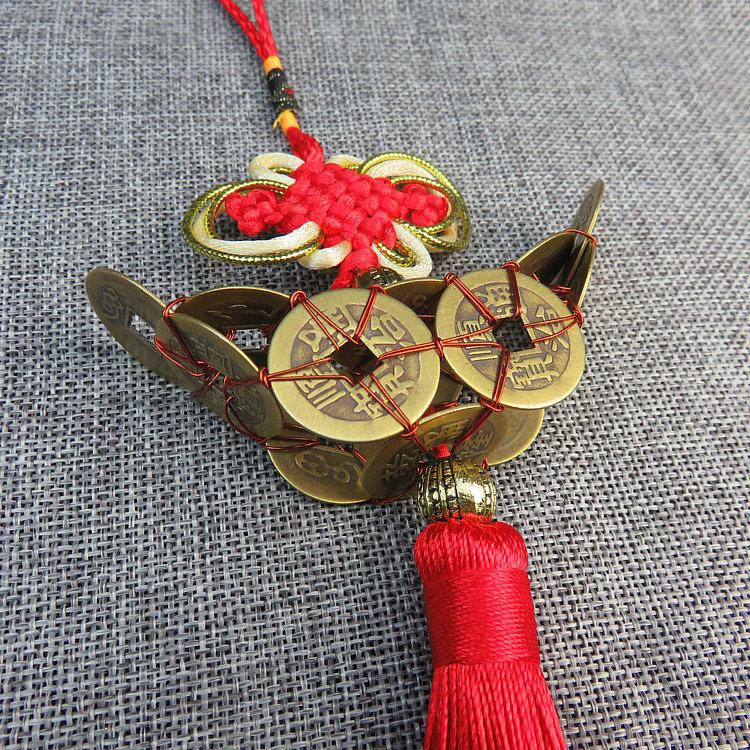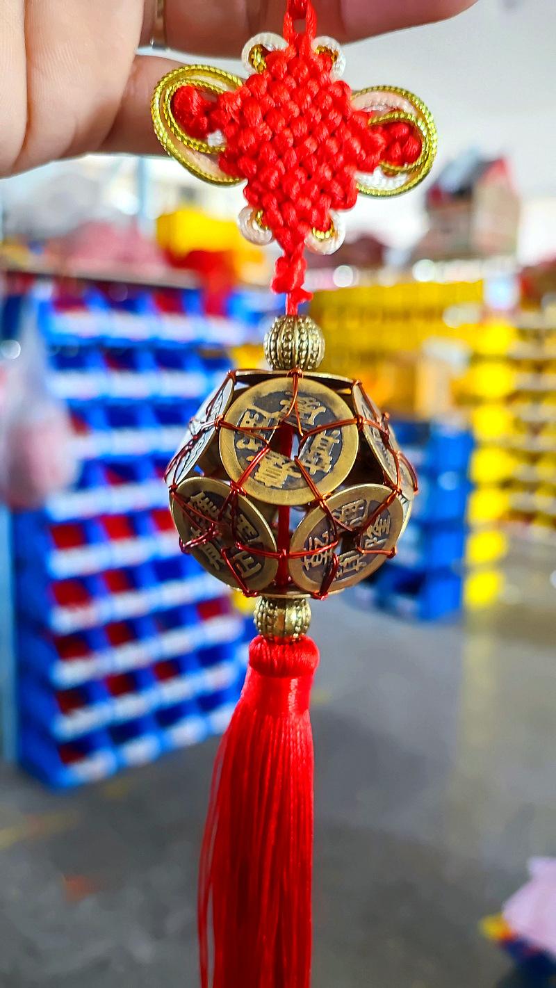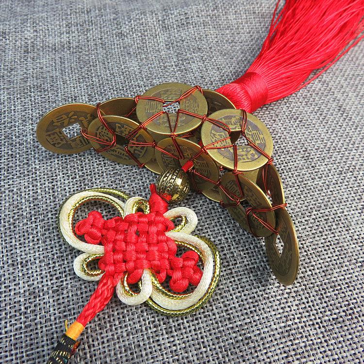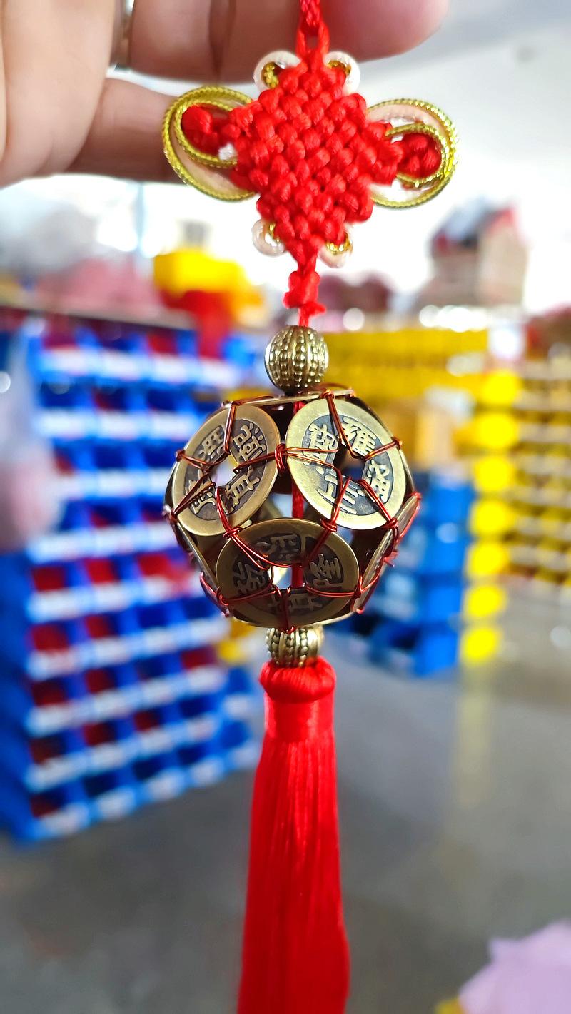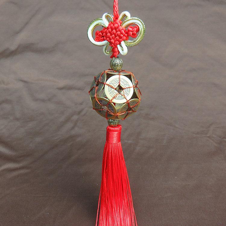 [Especificaciones]: La longitud total del colgante es de aproximadamente 33 cm, el diámetro de la bola de moneda de cobre Lulutong es de aproximadamente 5 cm, el ancho del nudo chino es de aproximadamente 4.8 cm, la borla mide aproximadamente 13 cm de largo y el diámetro de una sola moneda de cobre es de aproximadamente 2.3 cm