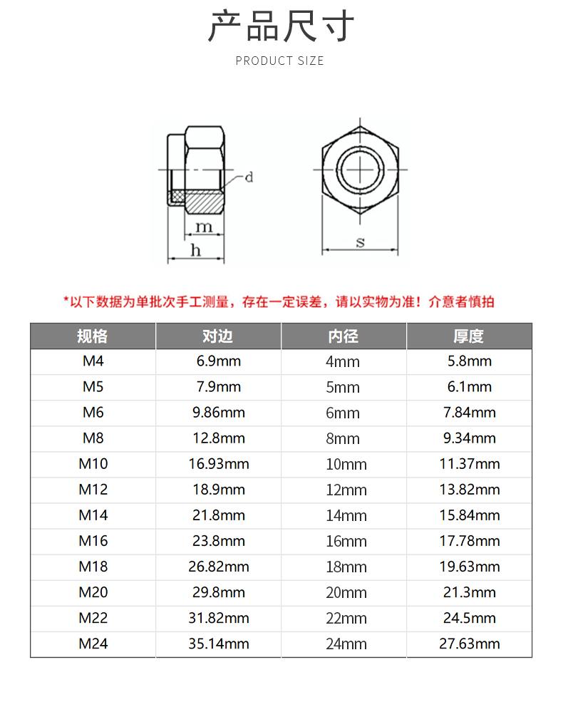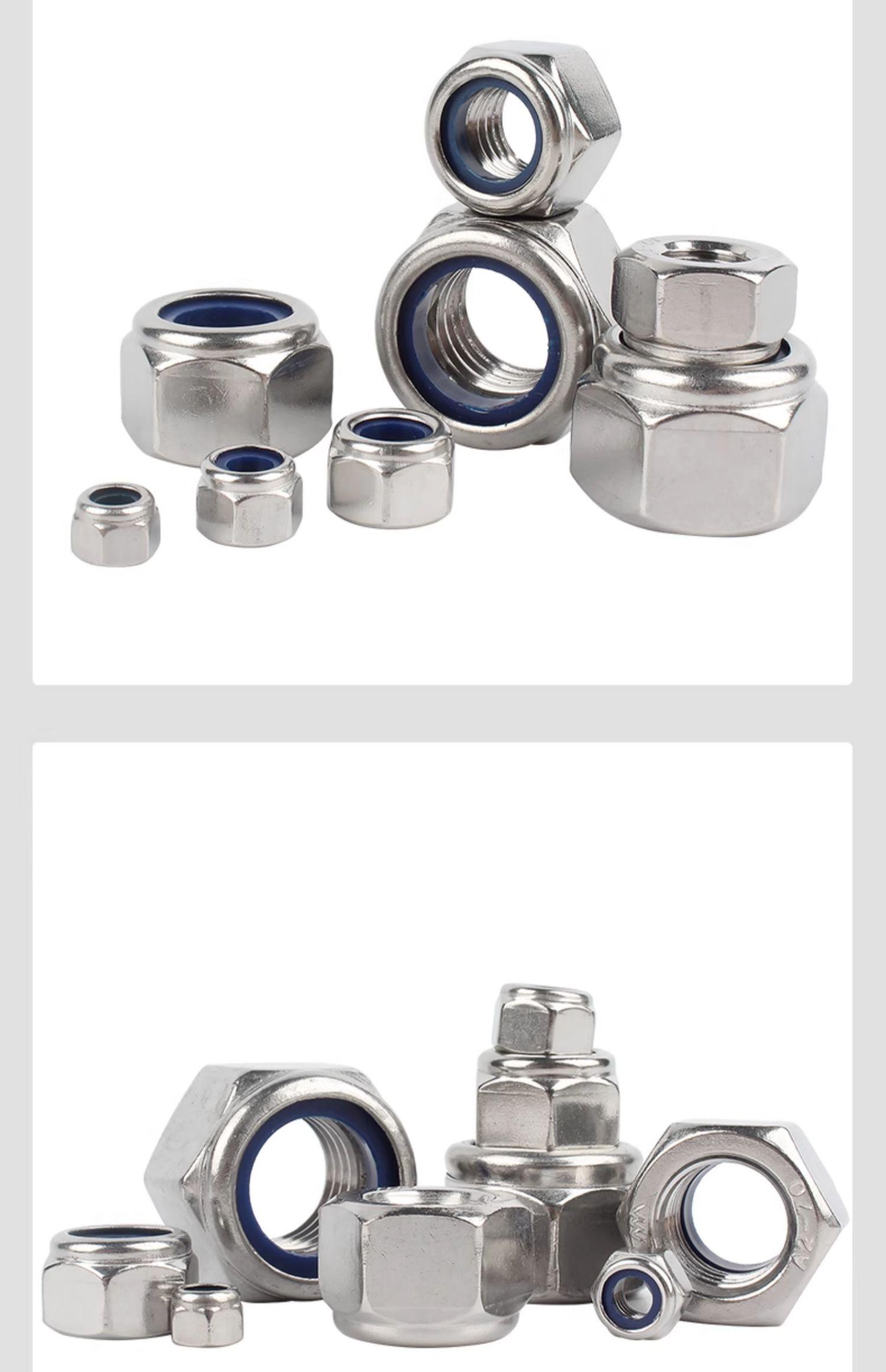 Tuerca autoblocante antiaflojamiento engrosada de acero inoxidable 304/201, tapa de tornillo de bloqueo antideslizante 316, tapa de perno hexagonal de nailon