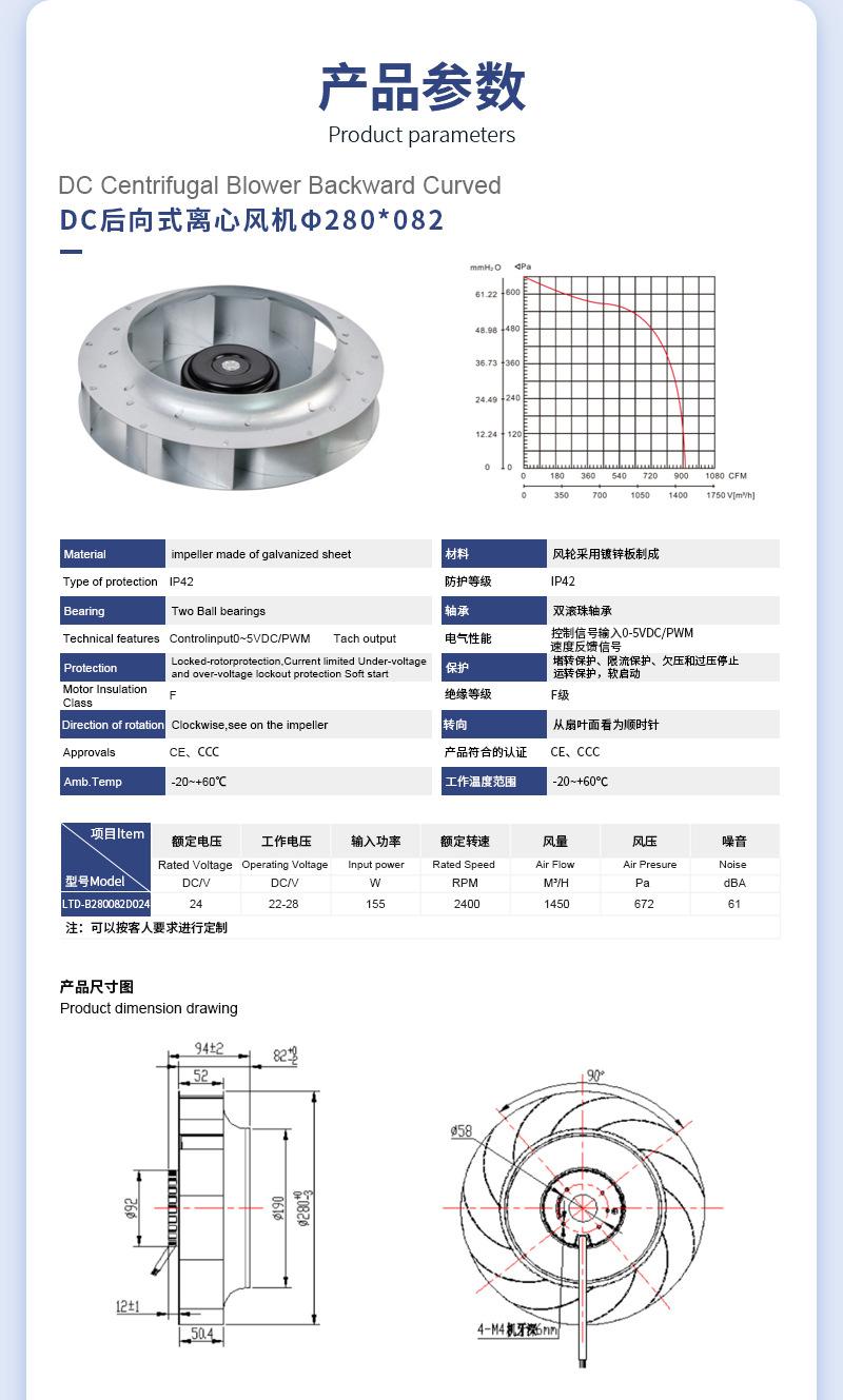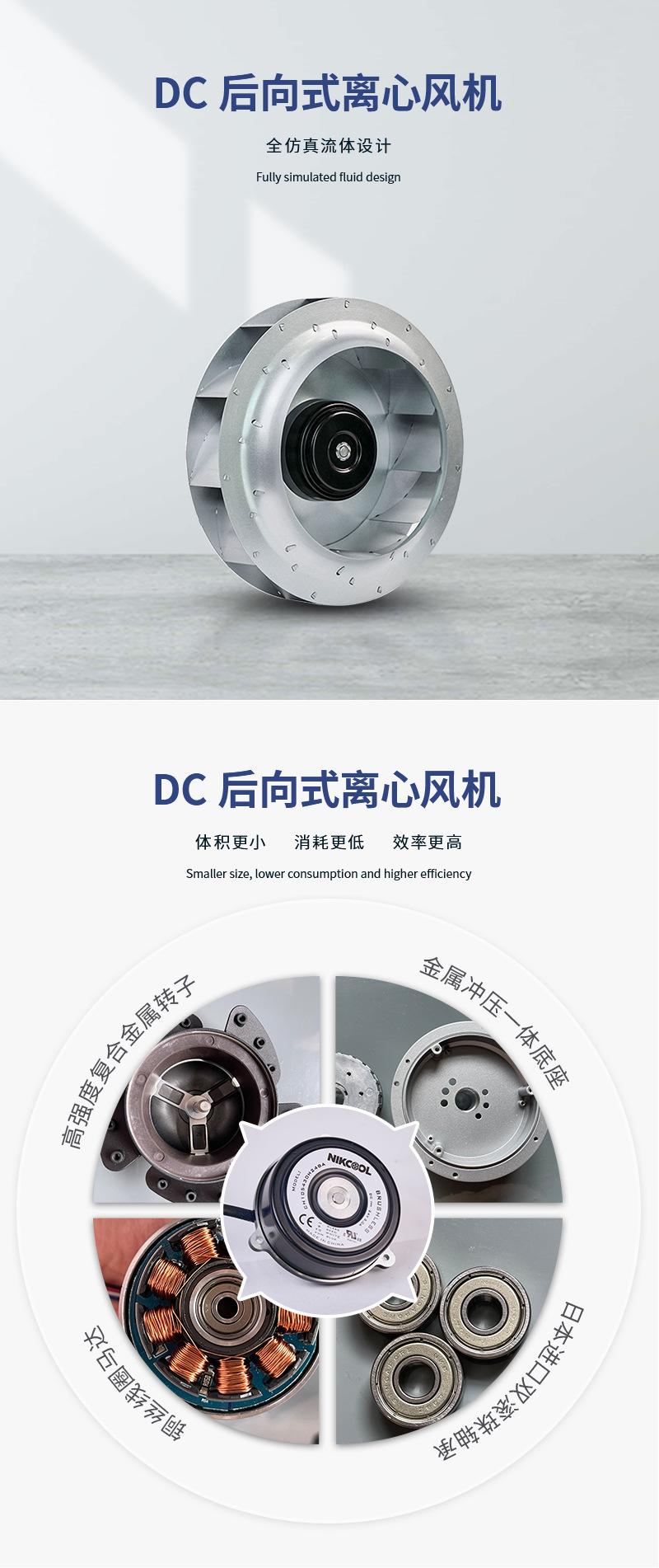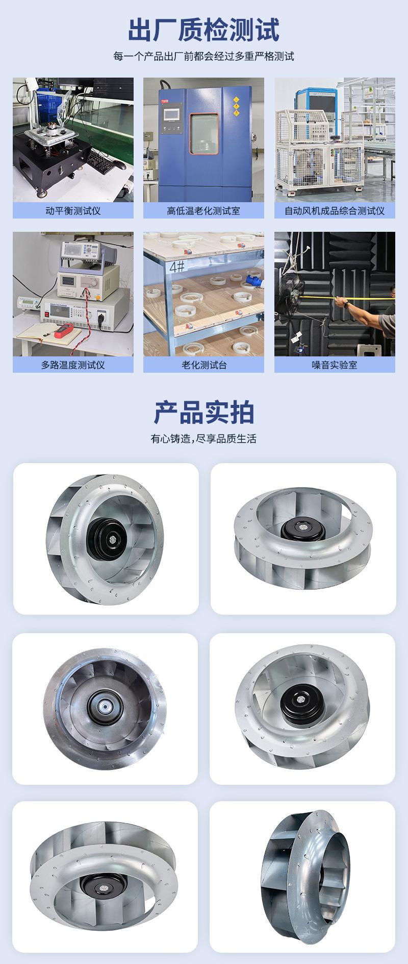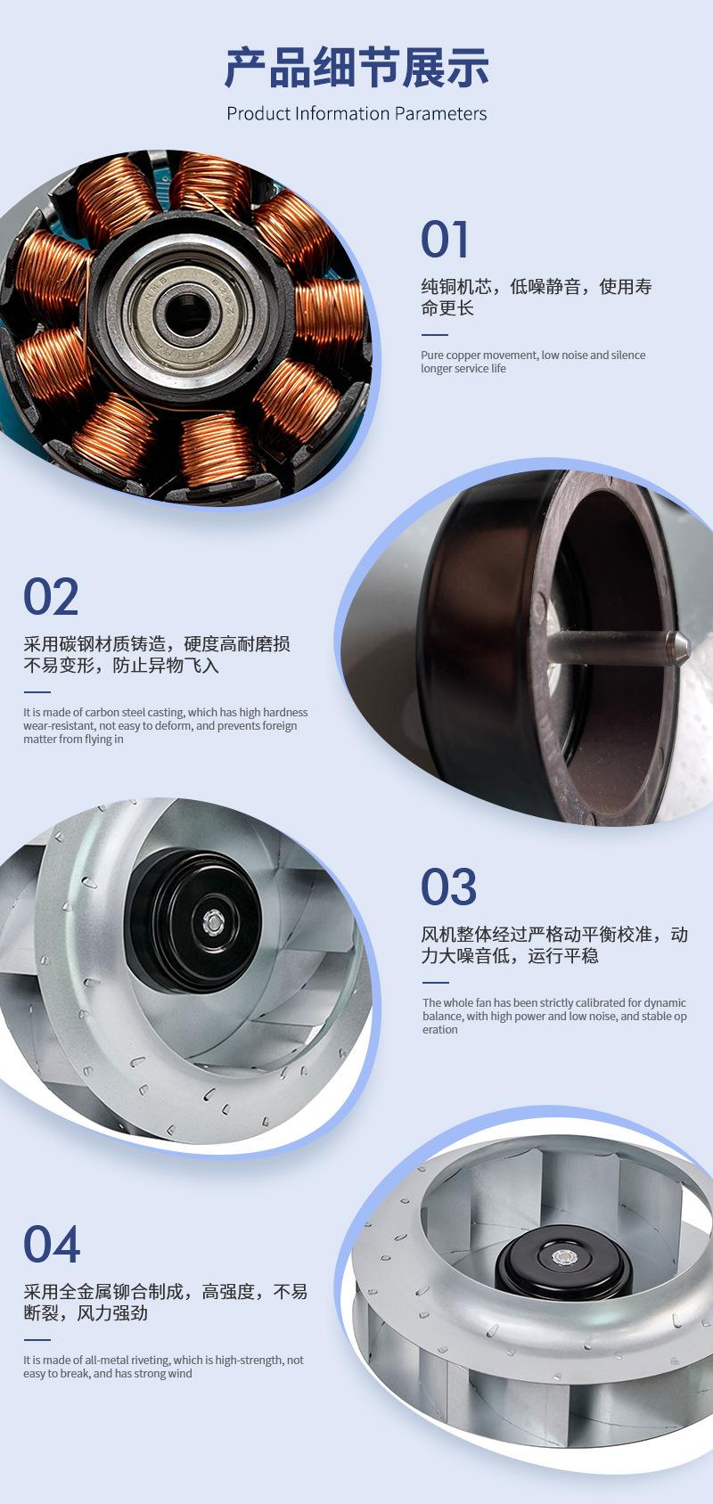 Ventilador centrífugo de rotor externo CC con inclinación trasera Sistema de gestión térmica Equipo de refrigeración Ventilador de extracción de soporte