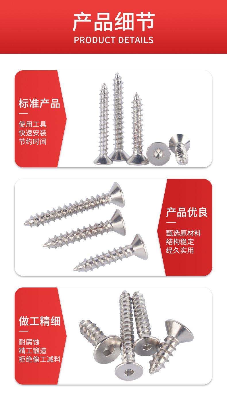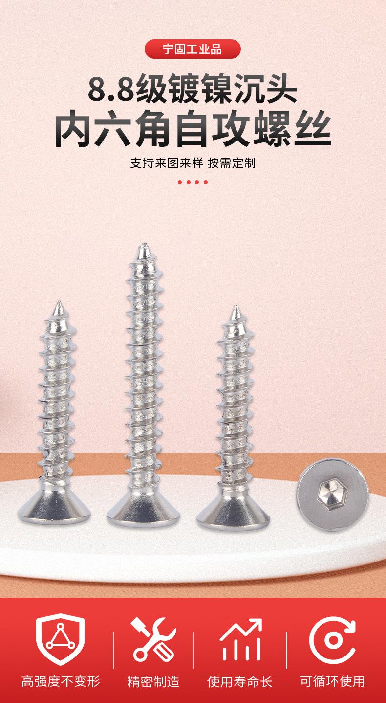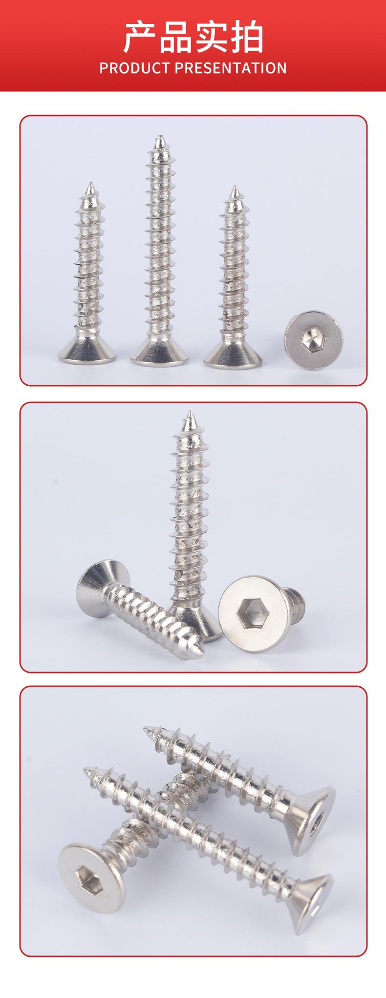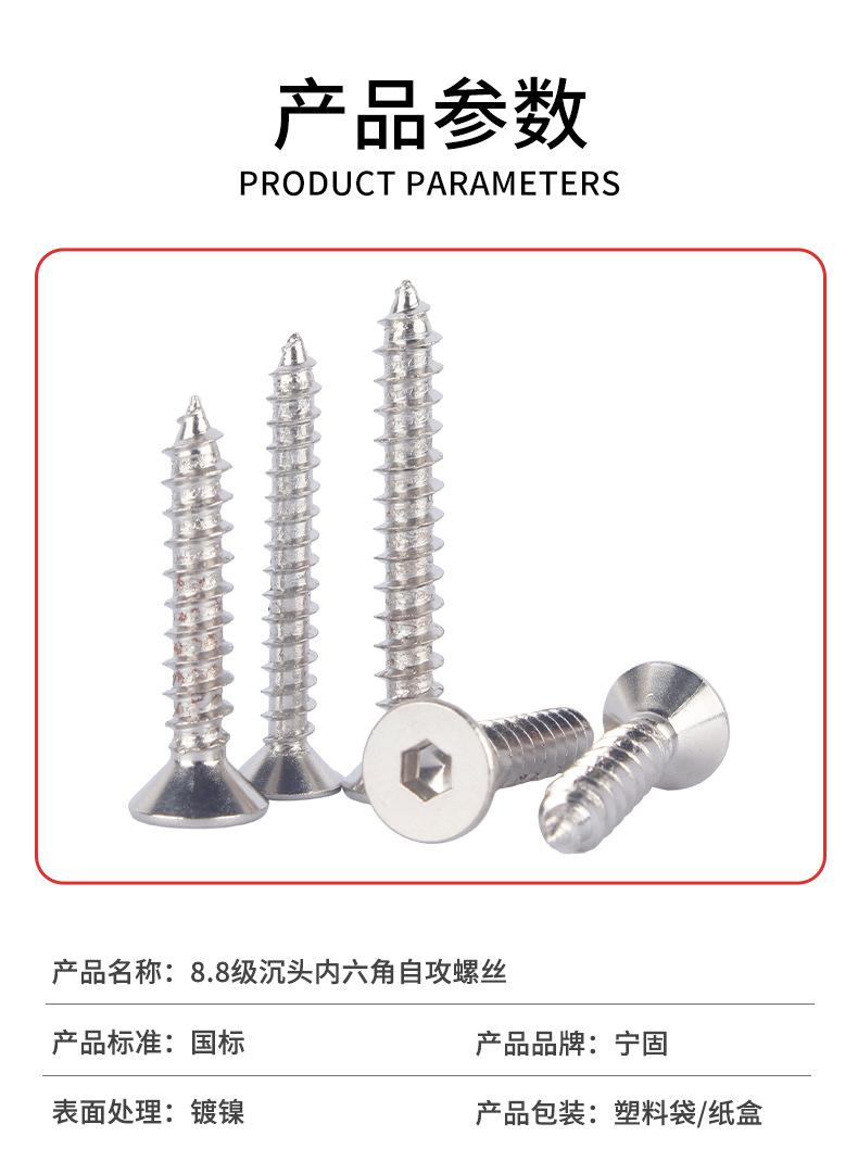 Tornillo de cabeza avellanada con cabeza hexagonal de grado 8.8 niquelado, tornillo autorroscante de cabeza avellanada, tornillo autorroscante de cabeza plana, clavo autorroscante M3/M4/M5/M6 al por mayor