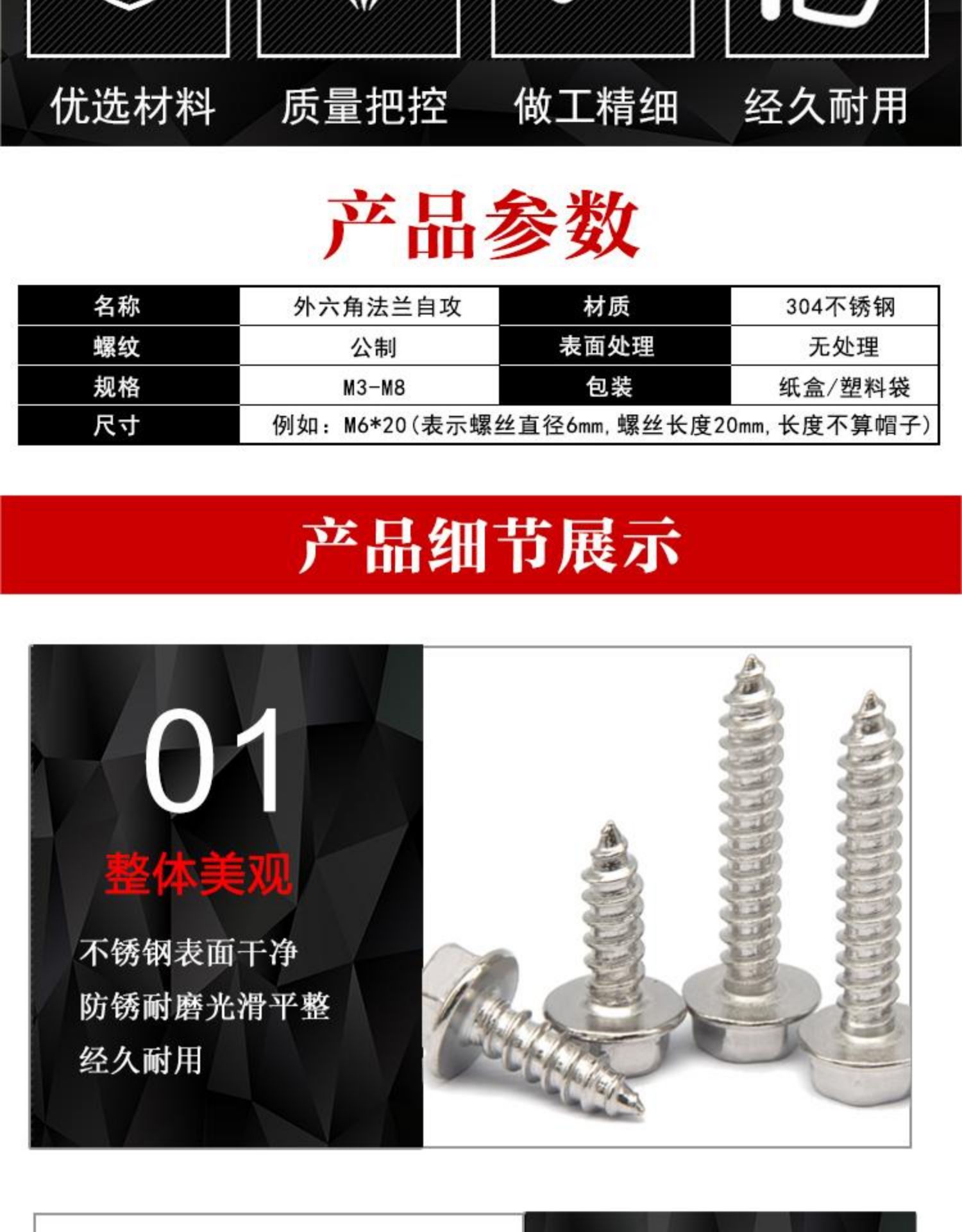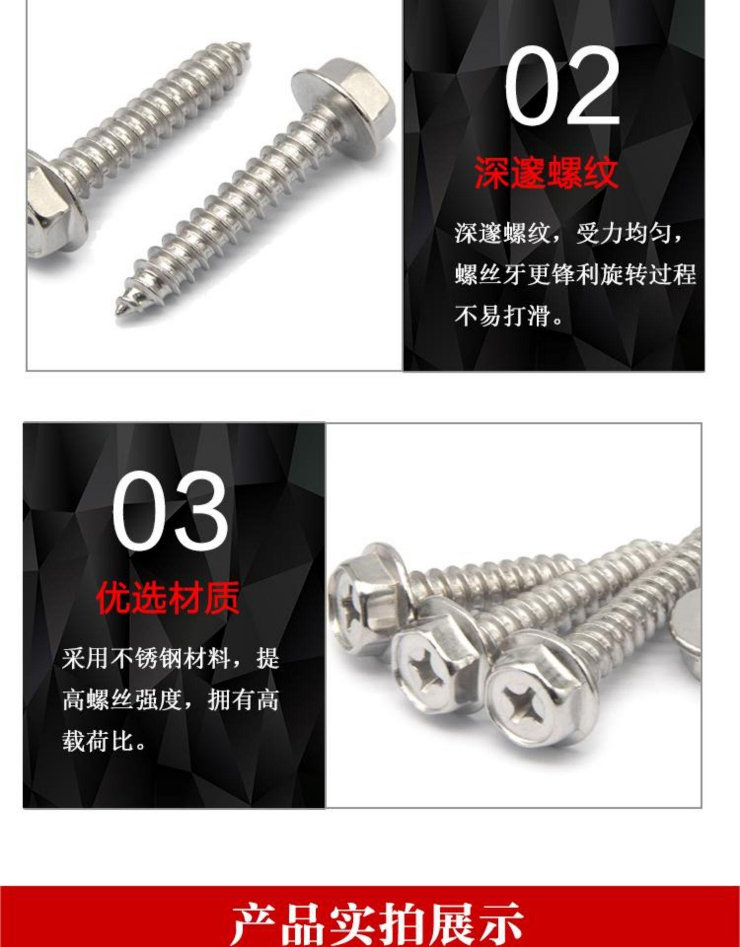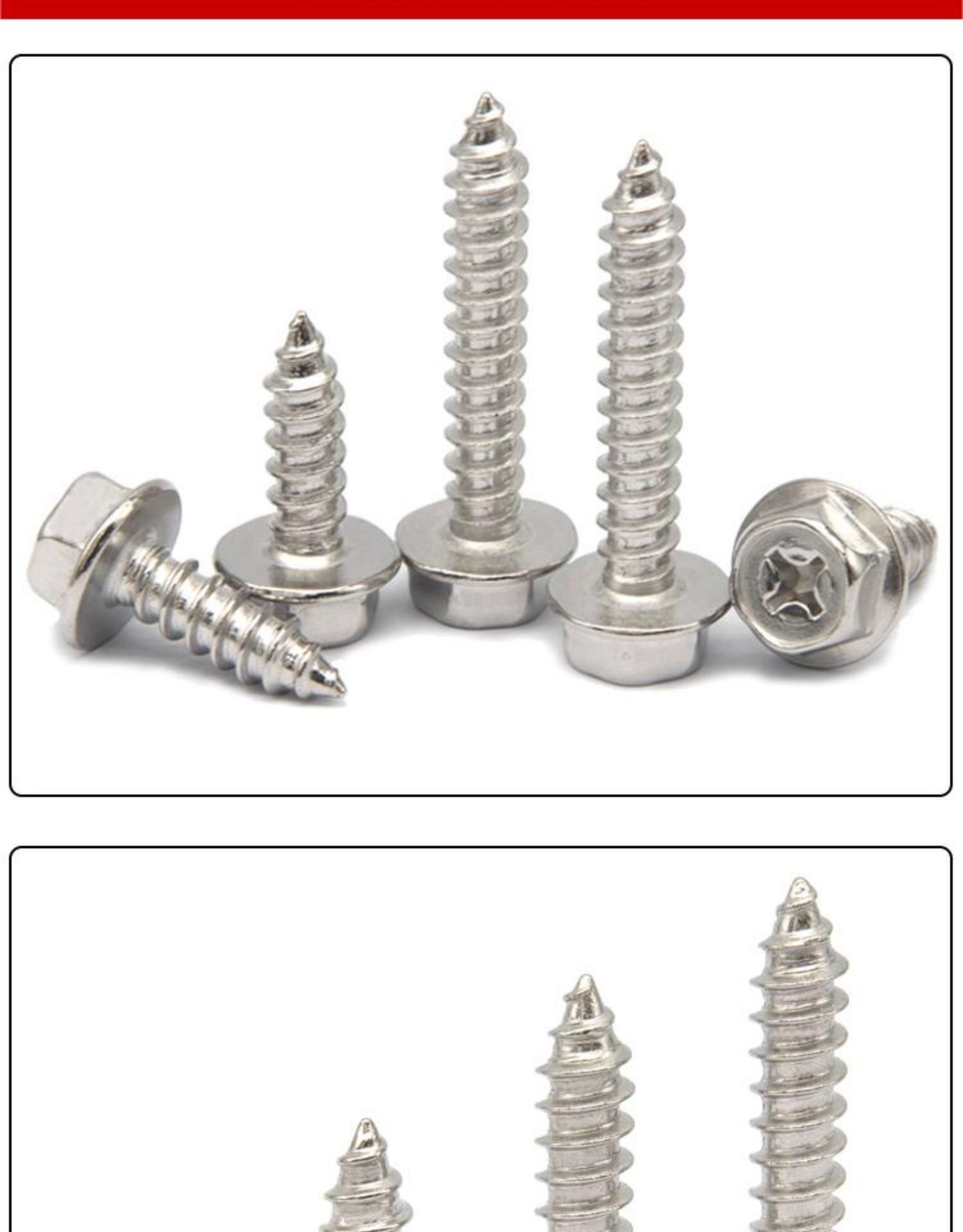 Tornillo autorroscante hexagonal externo con brida cruzada de acero inoxidable 304 y almohadilla, tornillo autorroscante para madera M3M4M5M6M8