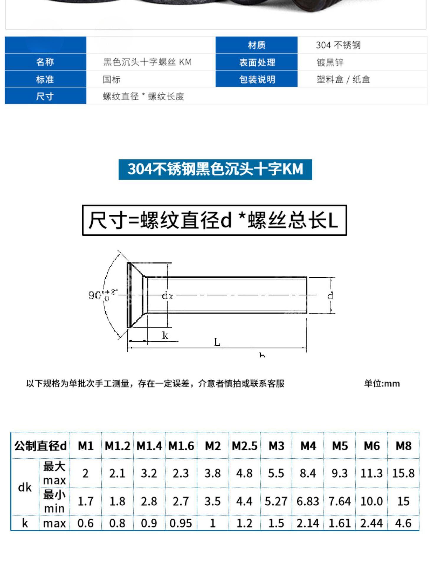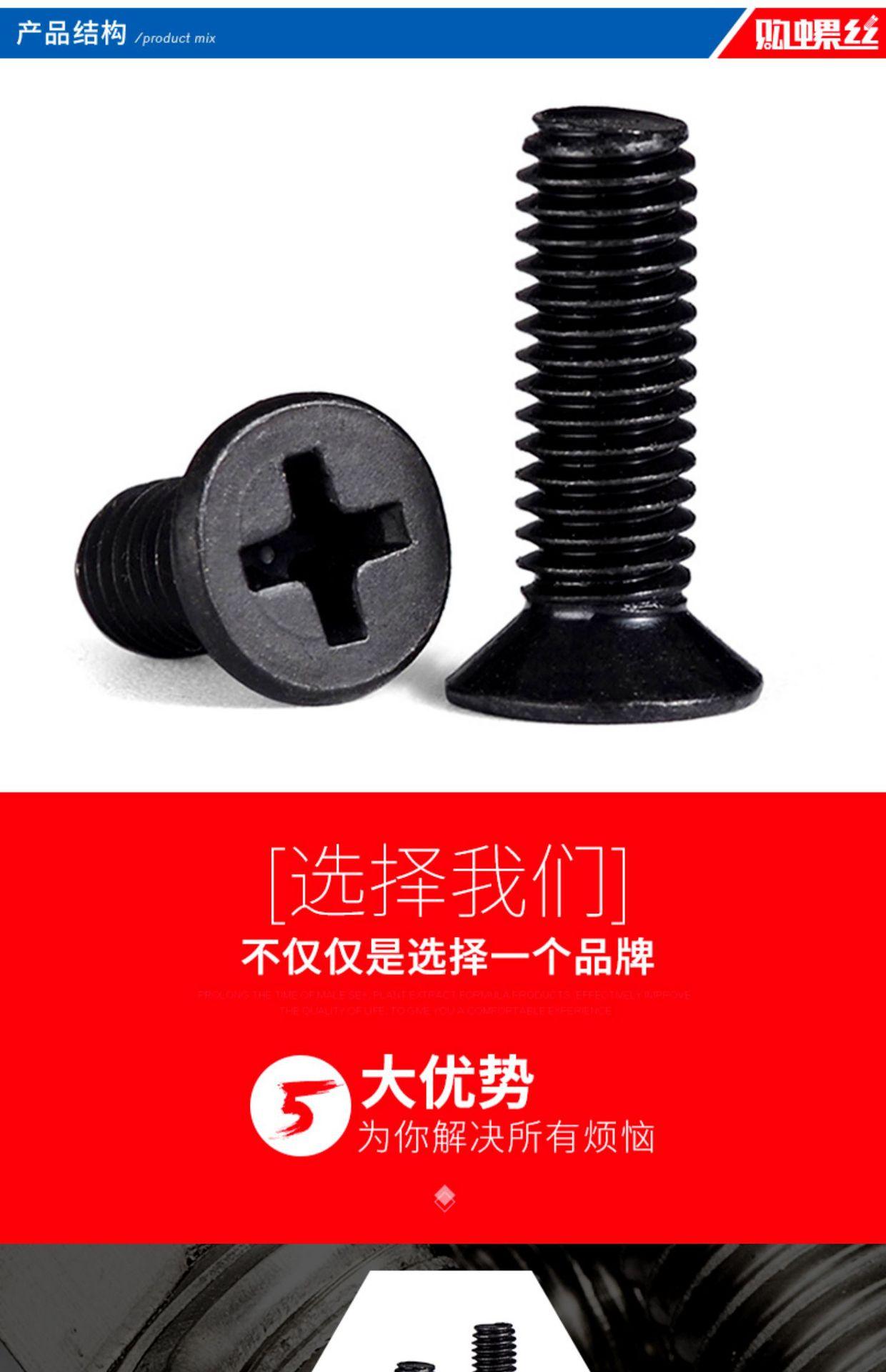 Tornillo de cabeza avellanada de acero inoxidable 304 negro, tornillo de cabeza plana Phillips, tornillo pequeño m1.6m2m2.5m3m4m5m6