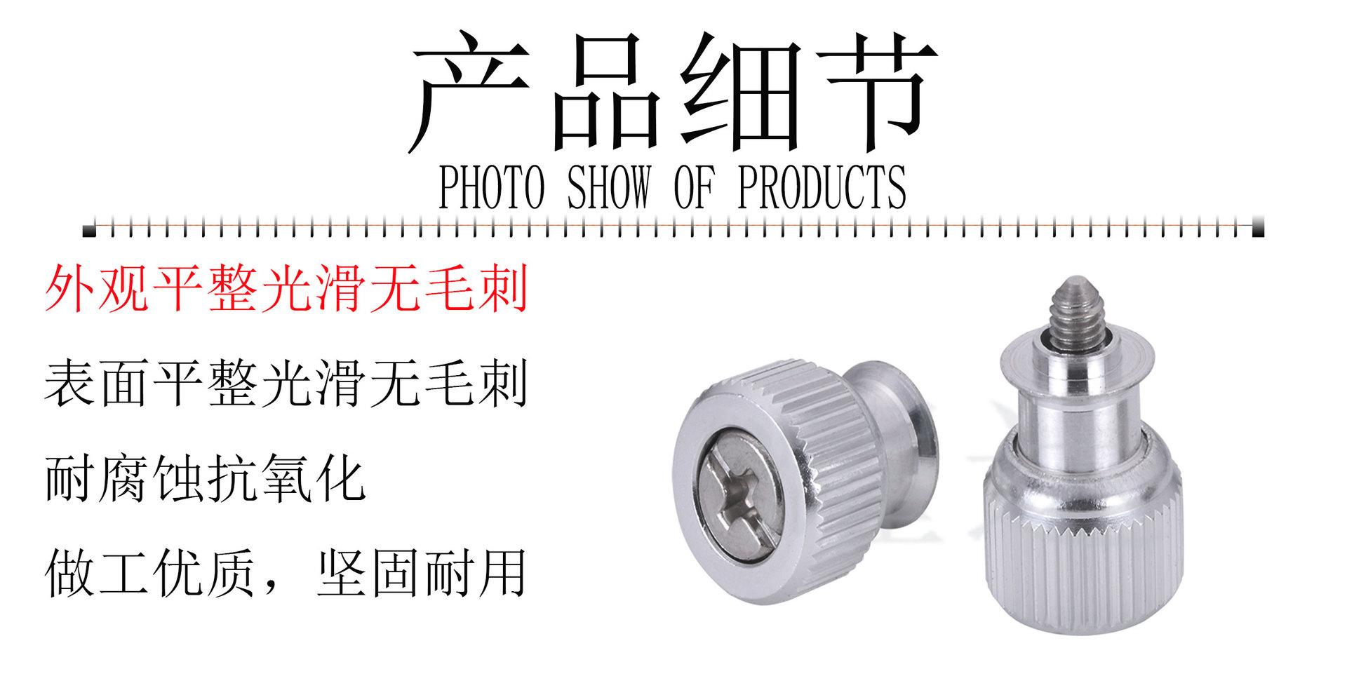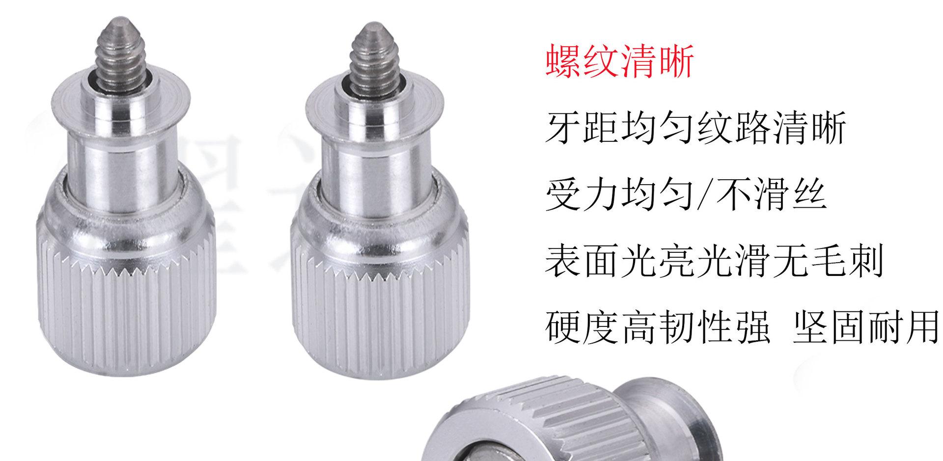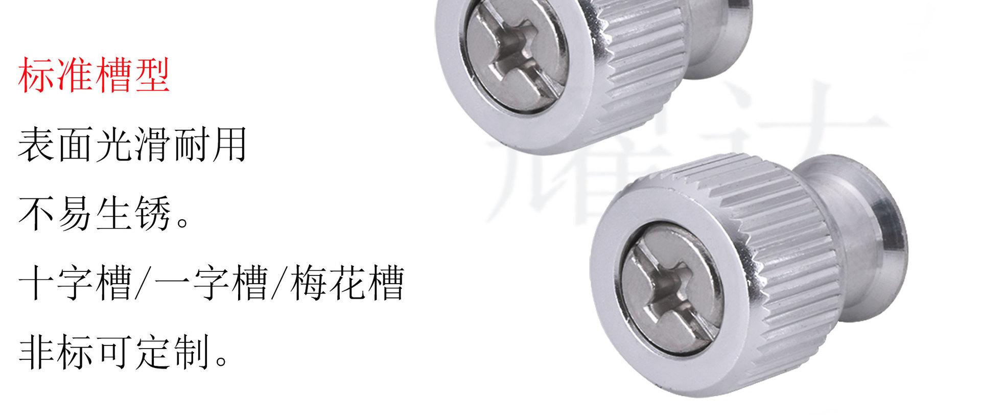 Tornillos utilizados en paneles: Tornillos cautivos, también llamados tornillos de resorte. Estos tornillos se pueden remachar en placas de hierro y se atornillan y desenroscan libremente. La pieza se integra firmemente en el panel sin desprenderse, por lo que también se denominan tornillos cautivos. El círculo exterior del manguito de apriete manual generalmente se prensa con dientes rectos para facilitar el apriete manual, por lo que también se denomina tornillo de apriete manual.