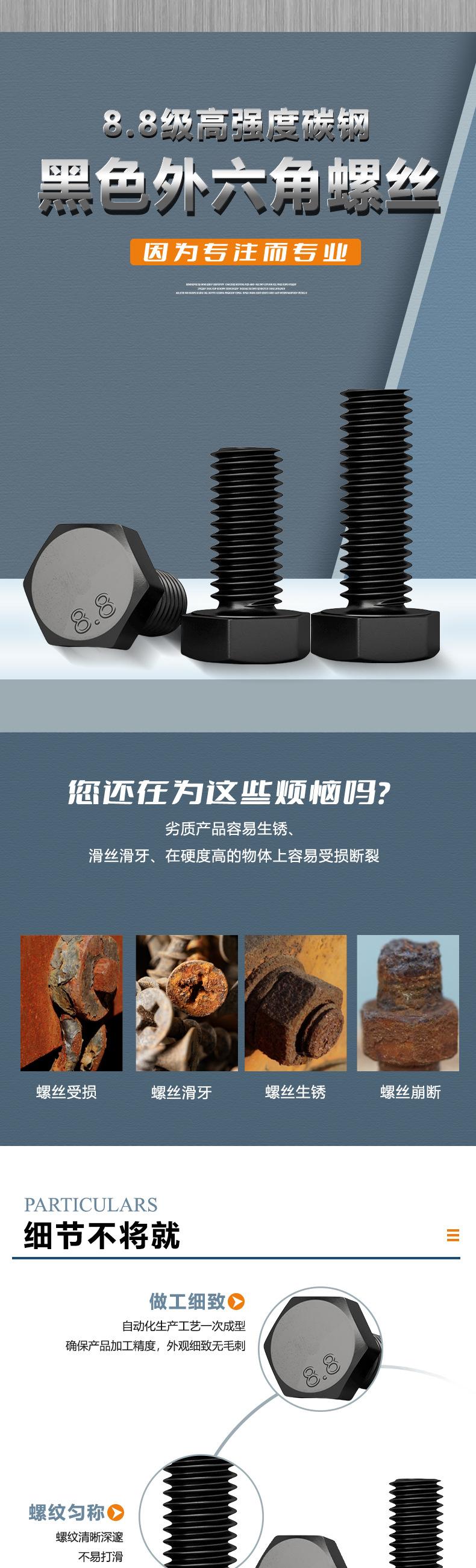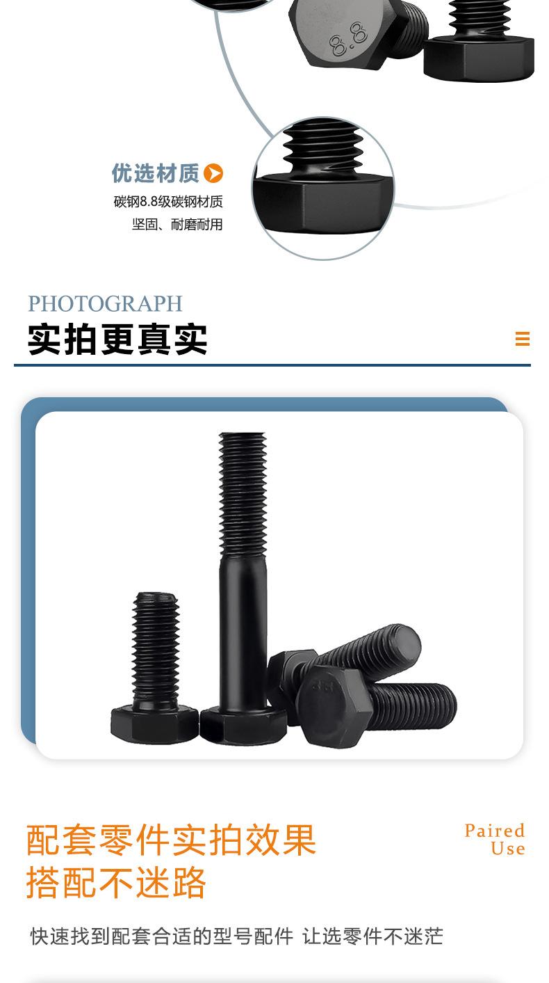 Venta directa de fábrica, tornillo hexagonal externo de alta resistencia de grado 8.8 M4M10, perno de tornillo extendido de cabeza hexagonal negra de acero al carbono