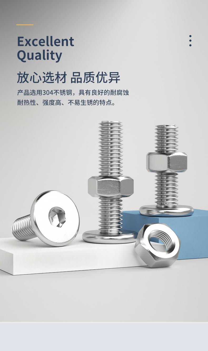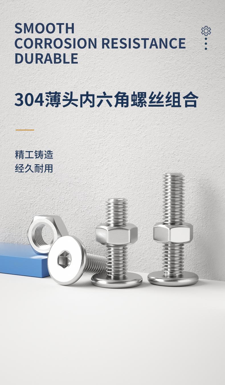 Tuerca de tornillo de cabeza hexagonal ultrafina CM de acero inoxidable 304, adecuada para perno de cabeza avellanada, tornillo de cabeza plana grande
