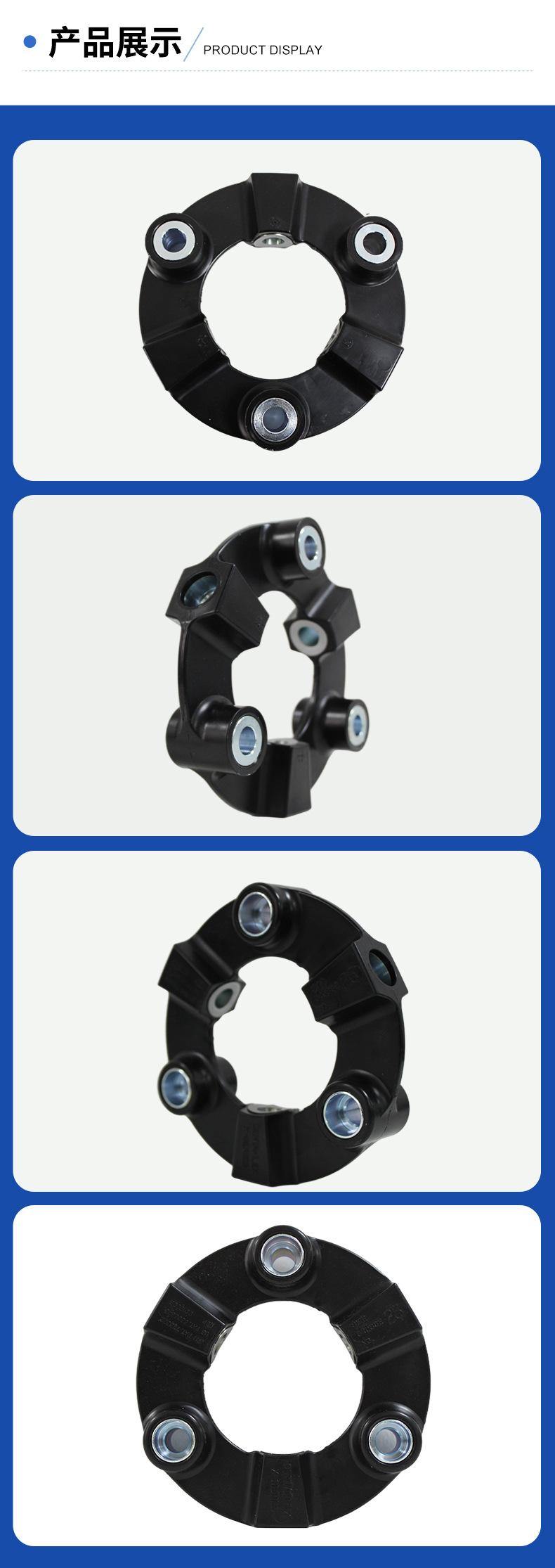 El modelo CENTA FLEX A (CF-A) se acciona mediante caucho elástico. Absorbe eficazmente las vibraciones y los impactos, y reduce el ruido de los dispositivos mecánicos. La parte de caucho del cuerpo elástico está compuesta de caucho poligonal y aluminio en sus vértices, firmemente vulcanizado y unido. El cuerpo de caucho está conectado al buje cilíndrico y al buje de brida mediante pernos en dirección radial y axial, y la transmisión se realiza a través del cuerpo de caucho. En particular, la conexión radial mediante pernos es una estructura de precompresión, ya que conecta el cuerpo de caucho predeformado con el buje cilíndrico, que ofrece una excelente flexibilidad y absorbe eficazmente las vibraciones y la transmisión de impactos.