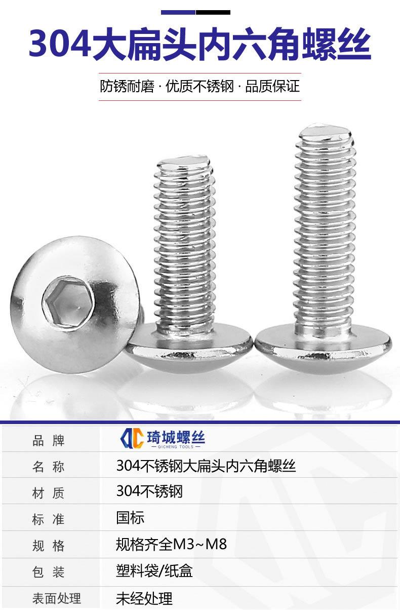 Tornillo de cabeza hueca hexagonal de acero inoxidable 304, cabeza plana grande, tornillo de cabeza semicircular, perno de cabeza de paraguas, perno de cabeza de hongo M3M4M5M6M8