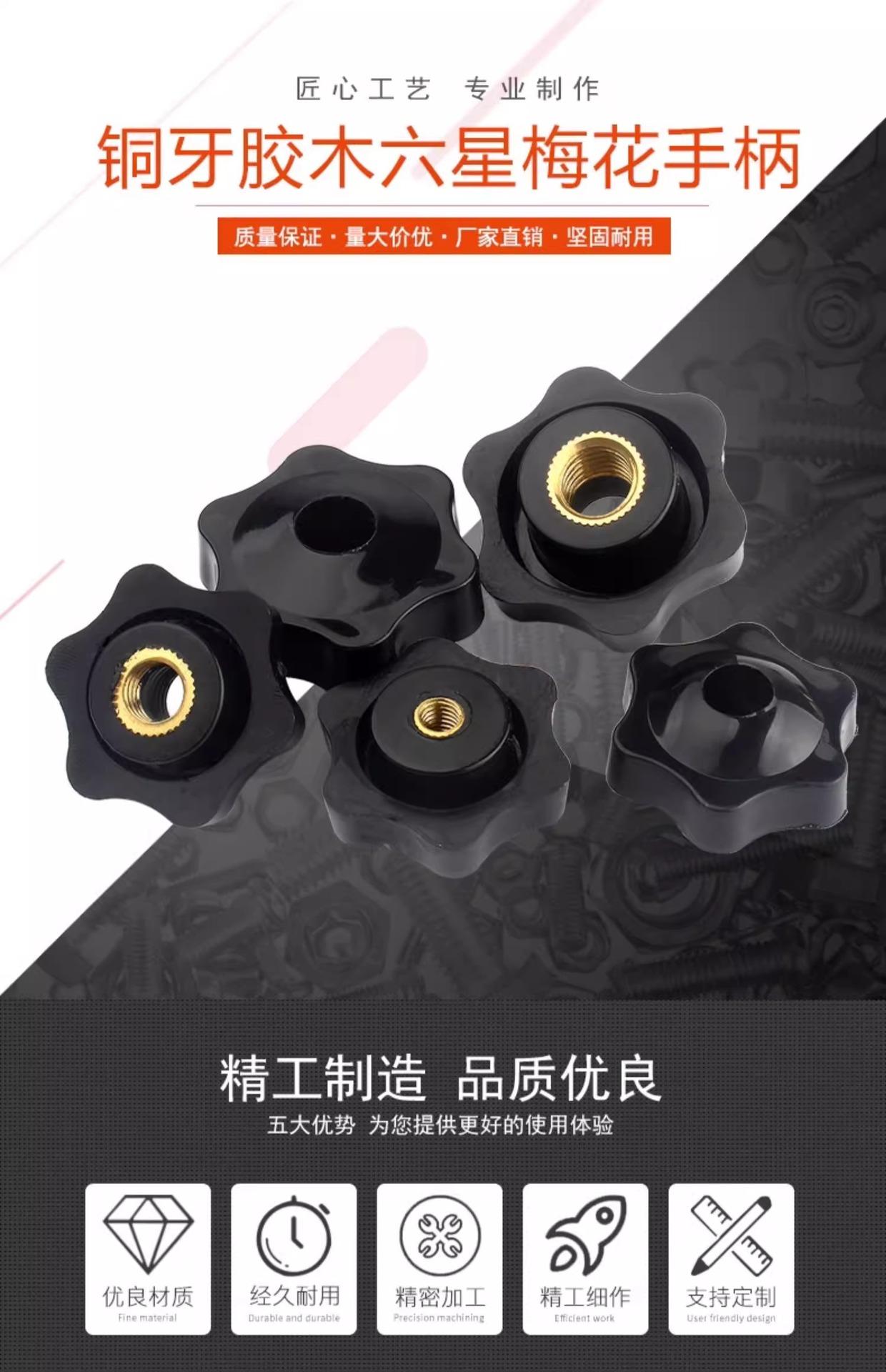 Núcleo de Cobre Agujero Pasante Tuerca de Mano de Seis Puntas Hexagonal Tapa de Tornillo Torx Tuerca con Mango de Baquelita en Forma de Estrella Tuerca con Mango