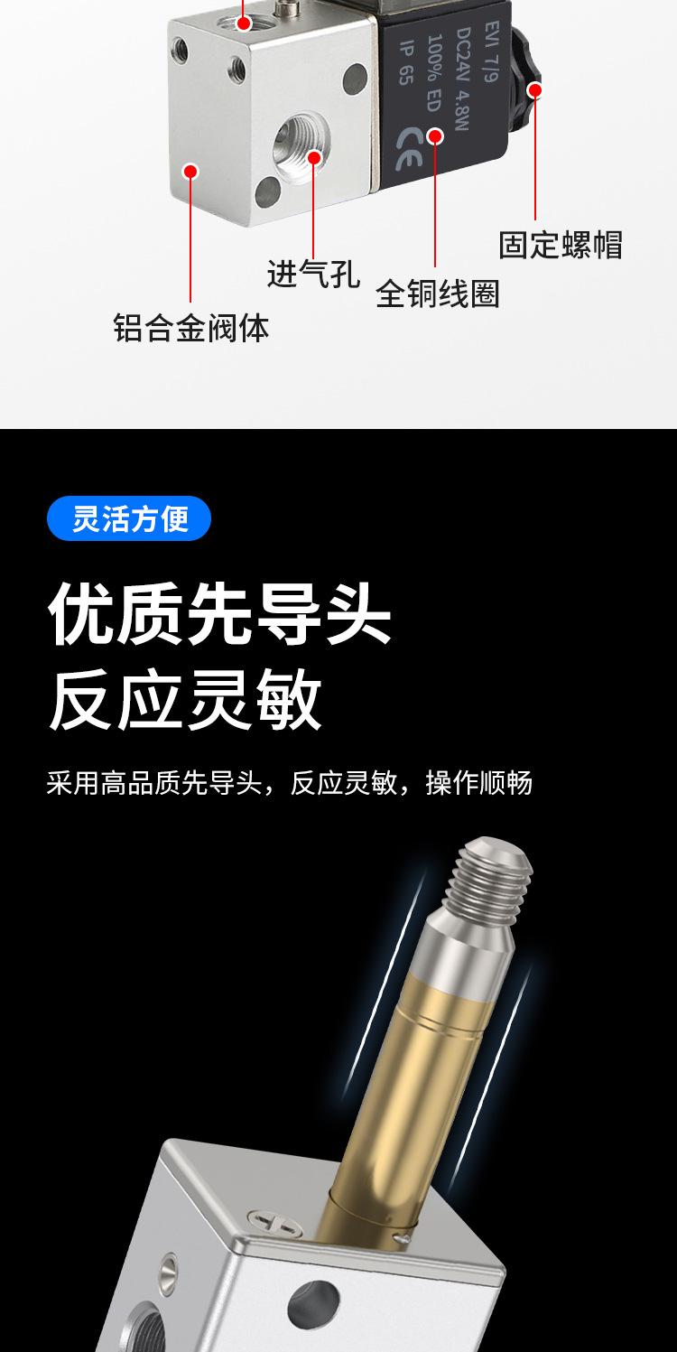 Electroválvula 3V1-06, válvula de control de solenoide neumática, grupo de válvulas electrónicas de dos posiciones y tres vías, CA 220 V/CC 24 V