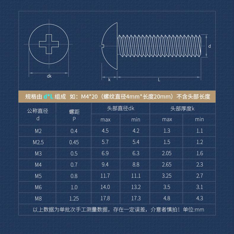 Tuerca de tornillo de cabeza plana grande en cruz de acero inoxidable 304, compatible con junta de cabeza semicircular M2M3M4M6.