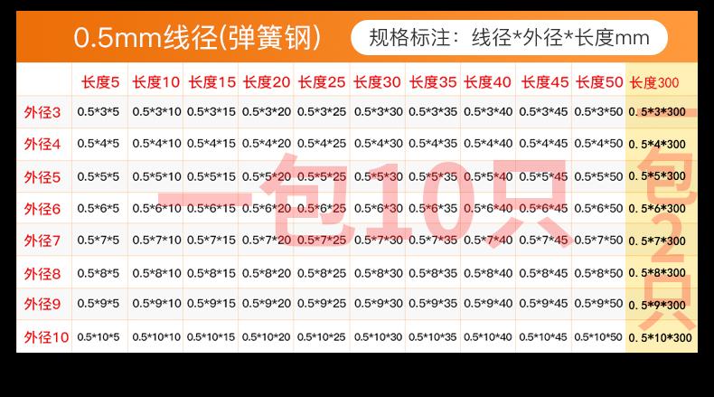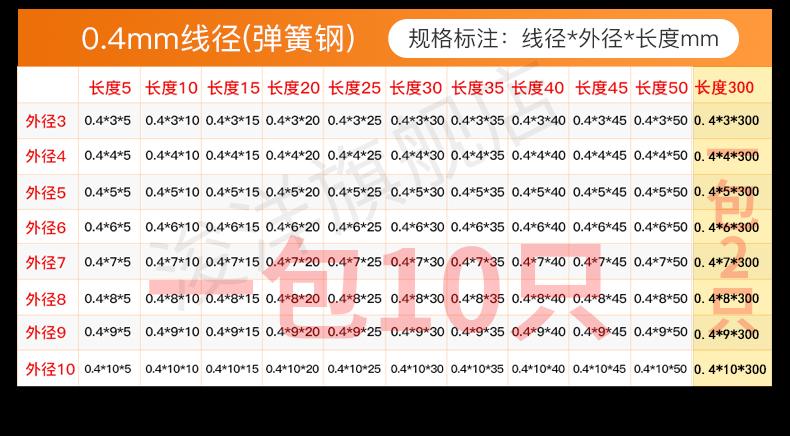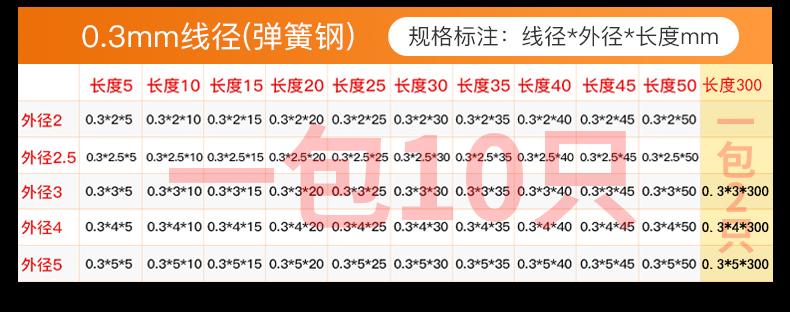 0.45*4*5 ten pieces, Spring steel wire diameter 0.2mm (10 pieces per pack), 0.3mm (10 pieces for 5-50 long or ...