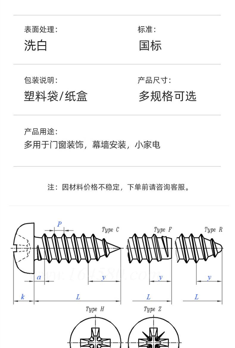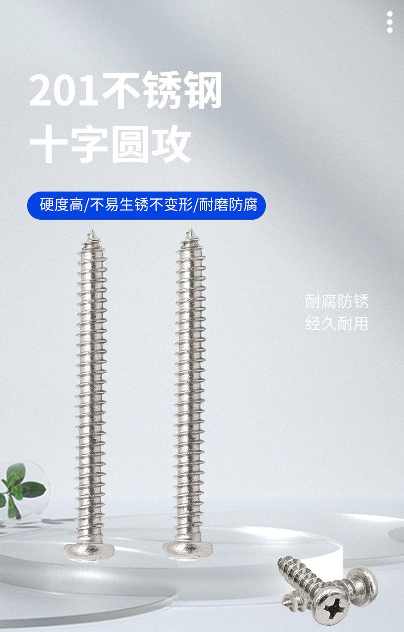 Tornillos autorroscantes de acero inoxidable de cabeza redonda cruzada, tornillos autorroscantes PA de punta, tornillos autorroscantes de cabeza plana, tornillos para madera al por mayor