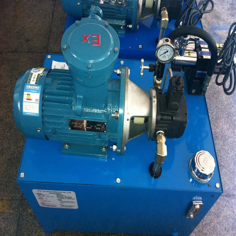 La estación hidráulica a prueba de explosiones es un dispositivo especialmente diseñado para el control de transmisiones hidráulicas en entornos potencialmente explosivos, como minas de carbón, industrias petroleras y químicas. Un motor a prueba de explosiones impulsa la bomba de aceite para que gire, succione aceite del tanque y lo bombee, convirtiendo la energía mecánica en energía de presión de aceite hidráulico. El aceite hidráulico se ajusta en dirección, presión y caudal a través de un bloque integrado (o conjunto de válvulas) y luego se transmite al cilindro o motor de aceite de la maquinaria hidráulica a través de una tubería externa, controlando así el cambio de dirección, fuerza y velocidad del motor hidráulico, e impulsando diversas máquinas hidráulicas.