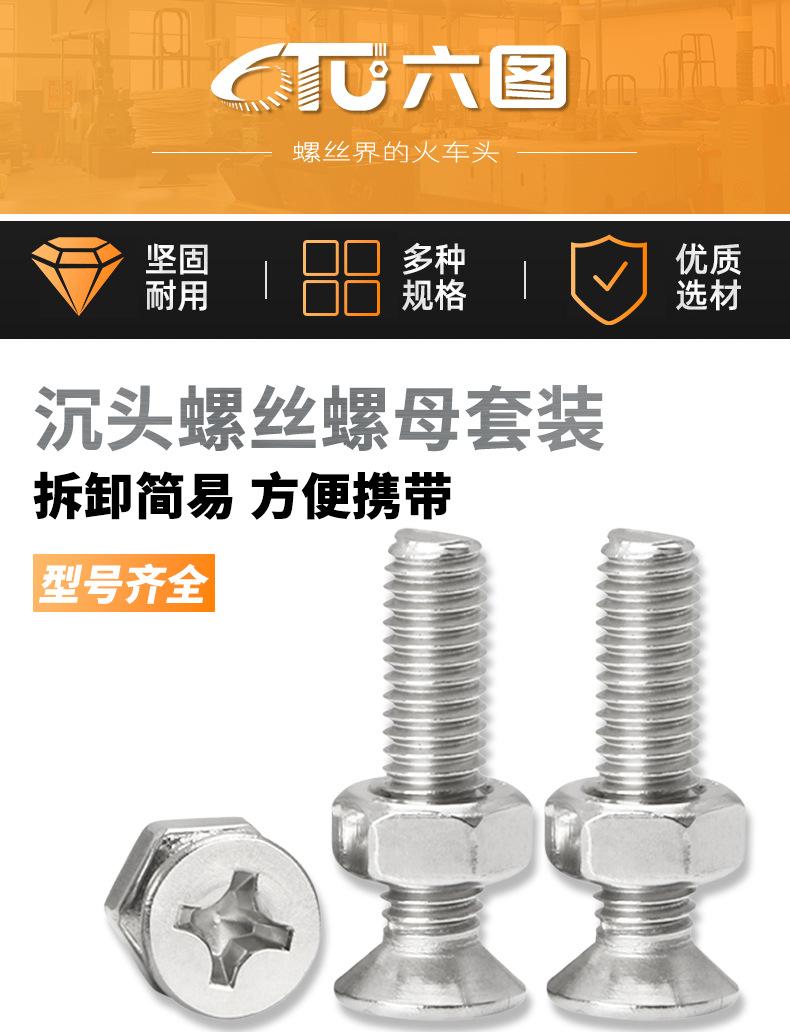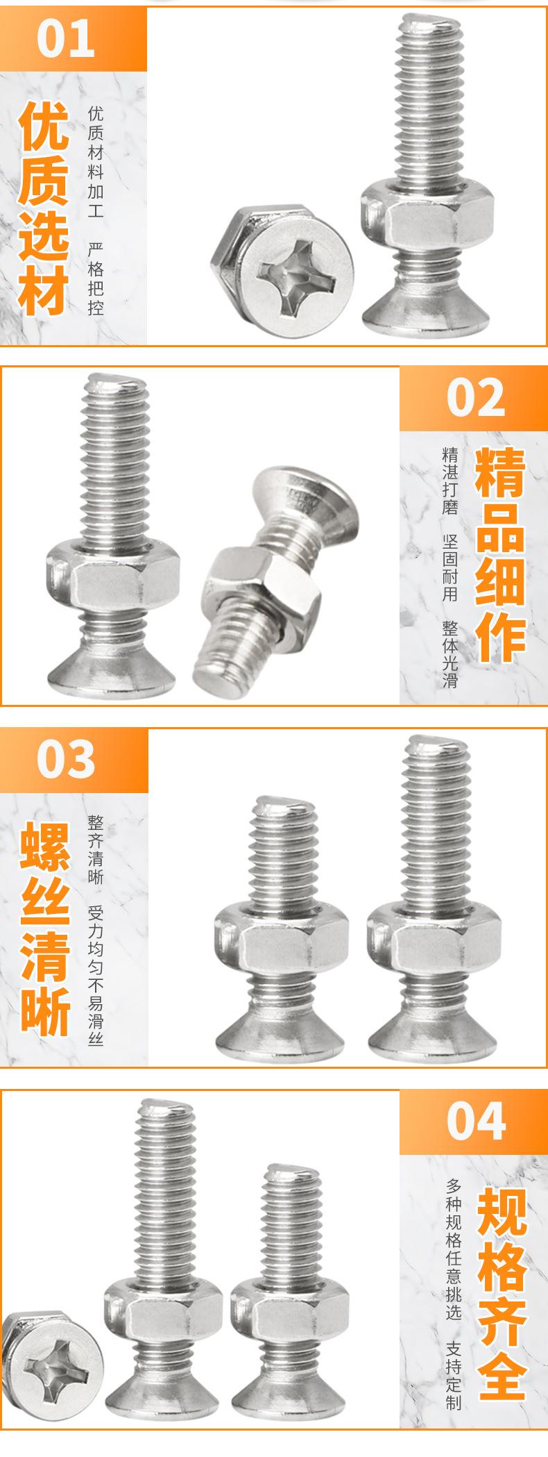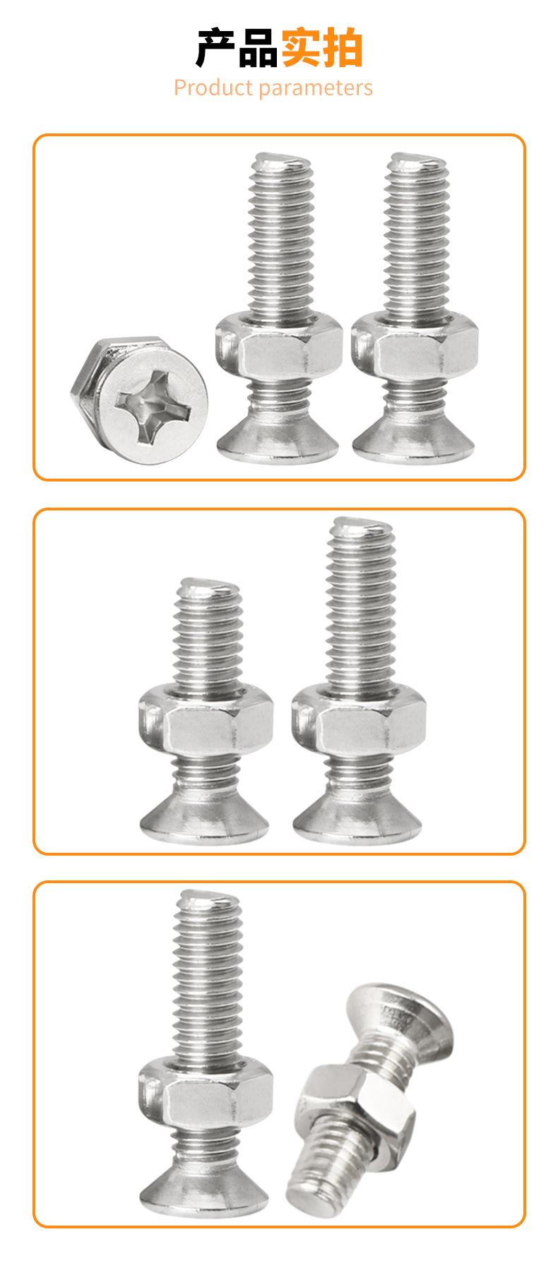 Tuerca de tornillo de cabeza avellanada con ranura en cruz de acero inoxidable 304, adecuada para combinación de tuerca de tornillo de cabeza plana M3M4M5M6M8M10