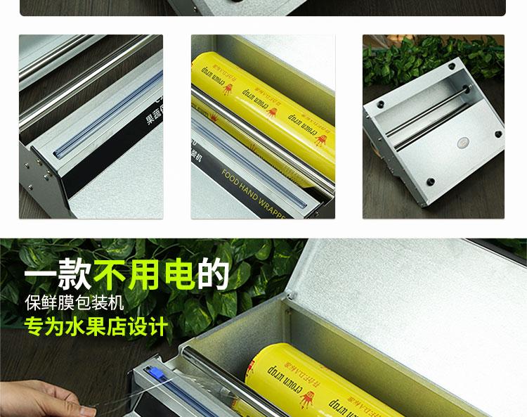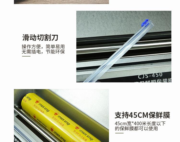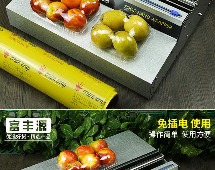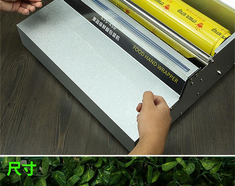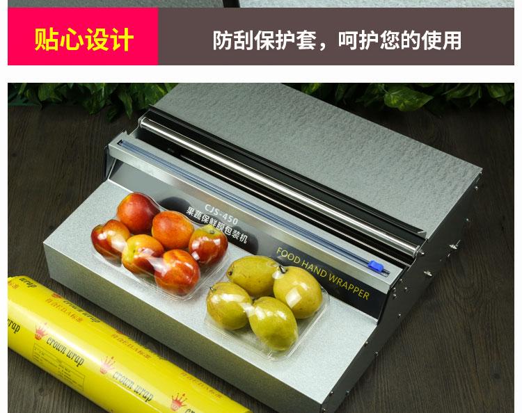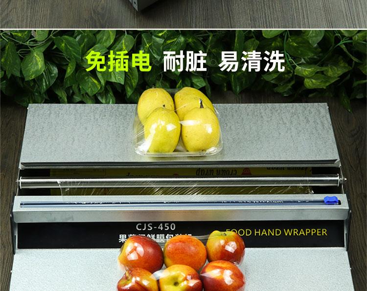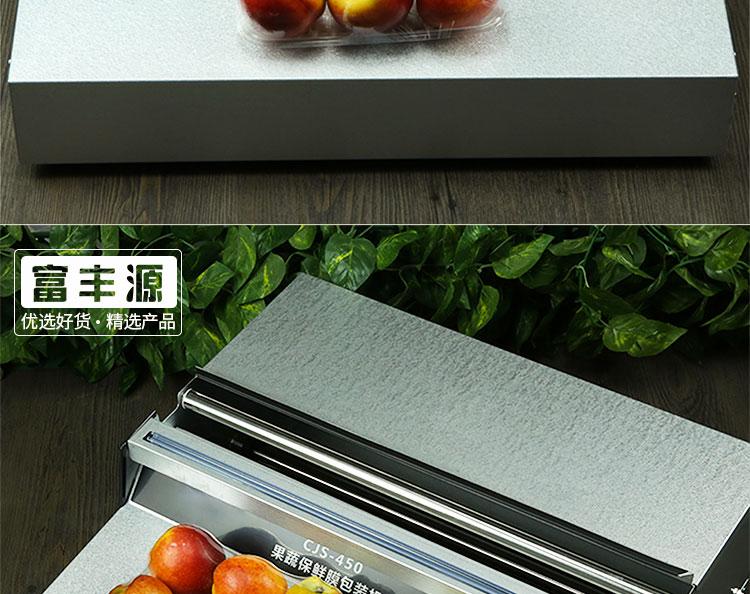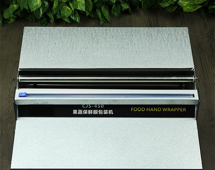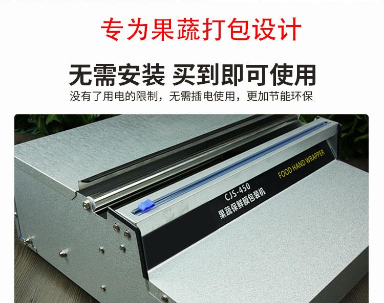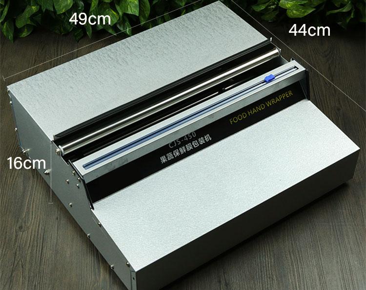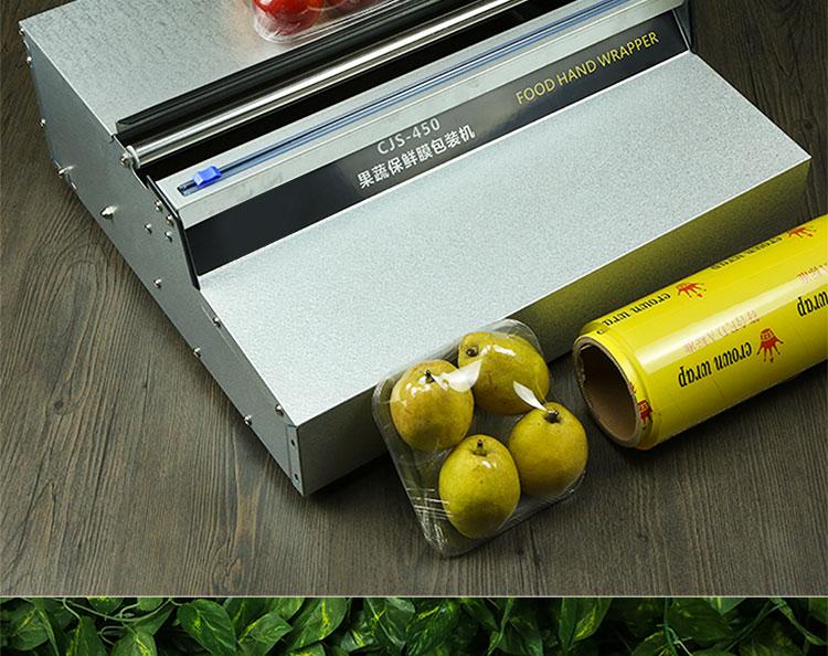 Máquina envasadora de film transparente marca 450, con recubrimiento antipresión y espesamiento sin enchufes, para frutas y verduras.